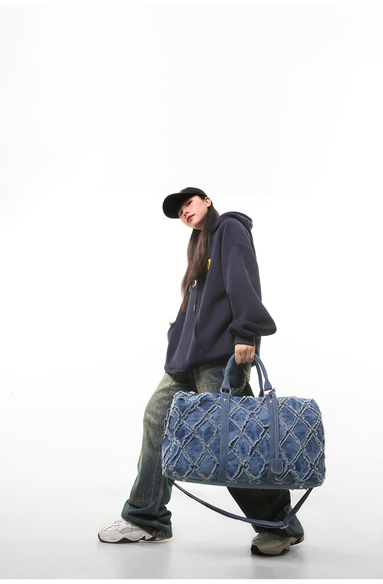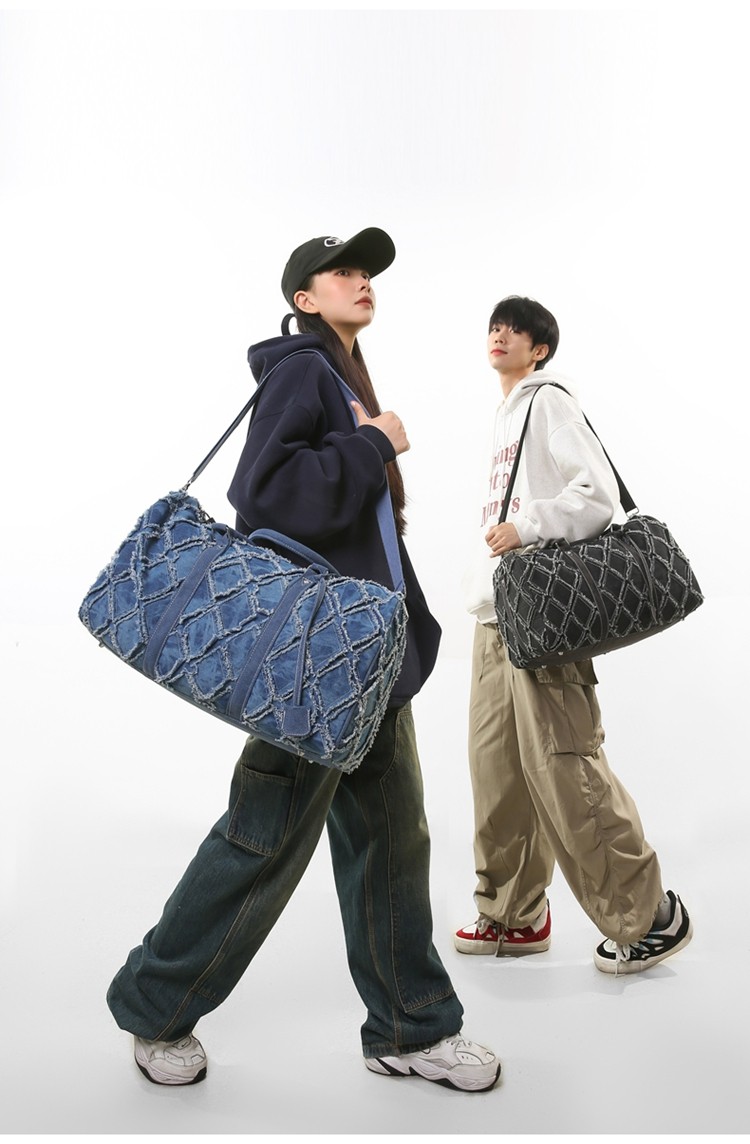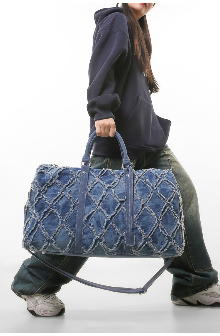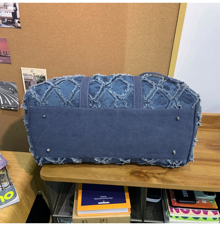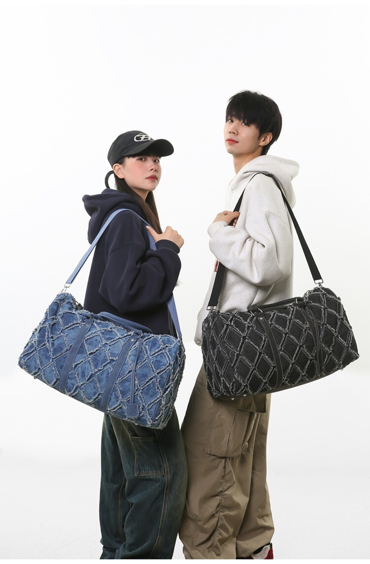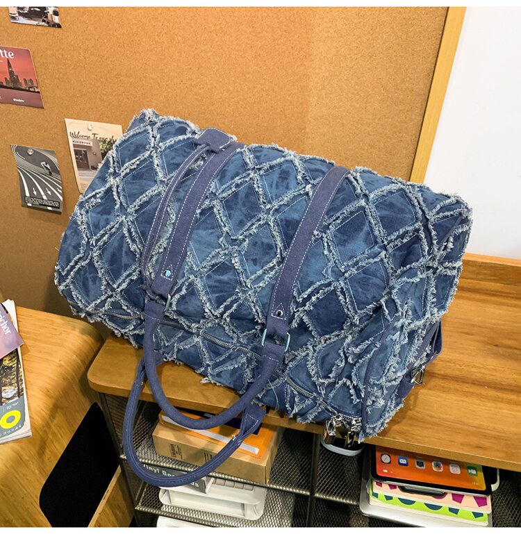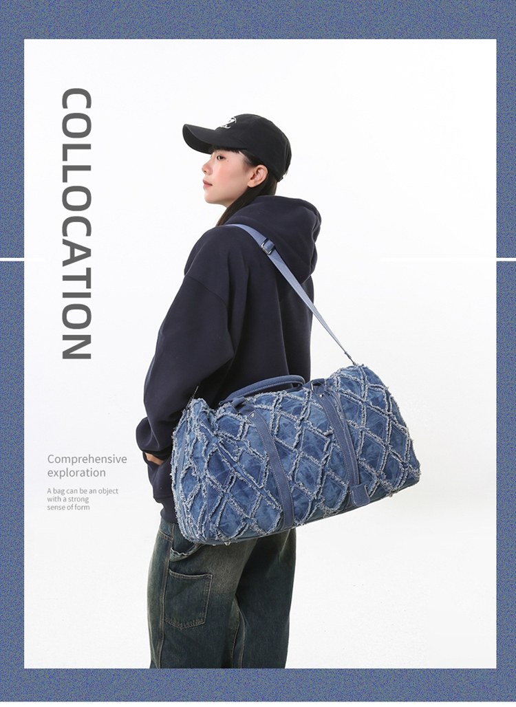 旅行包行李袋男女休閒帆布大容量短途包水洗牛仔布斜背手提健身包