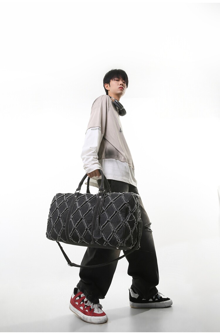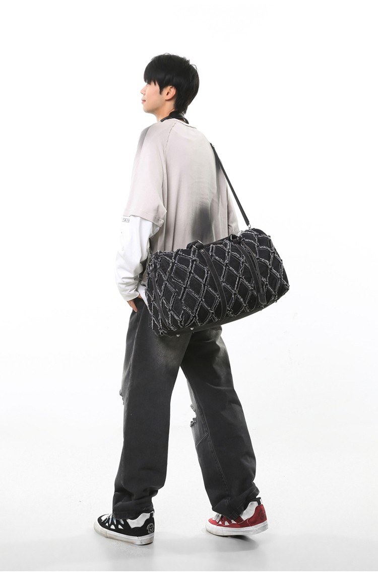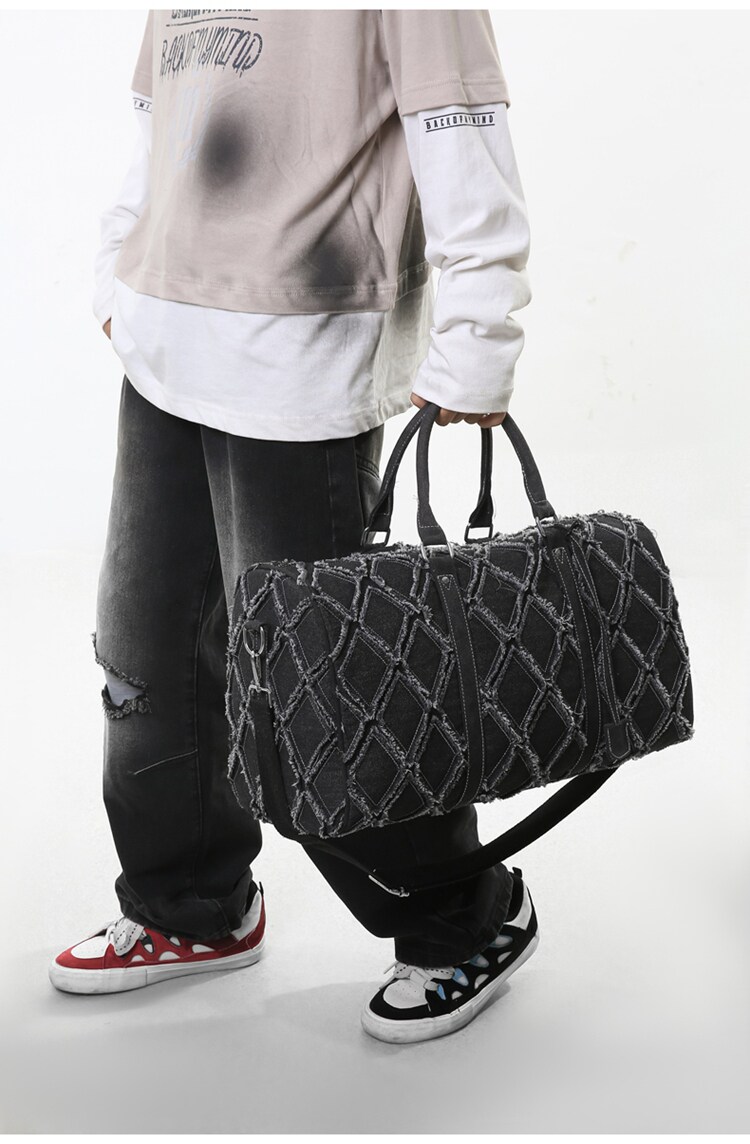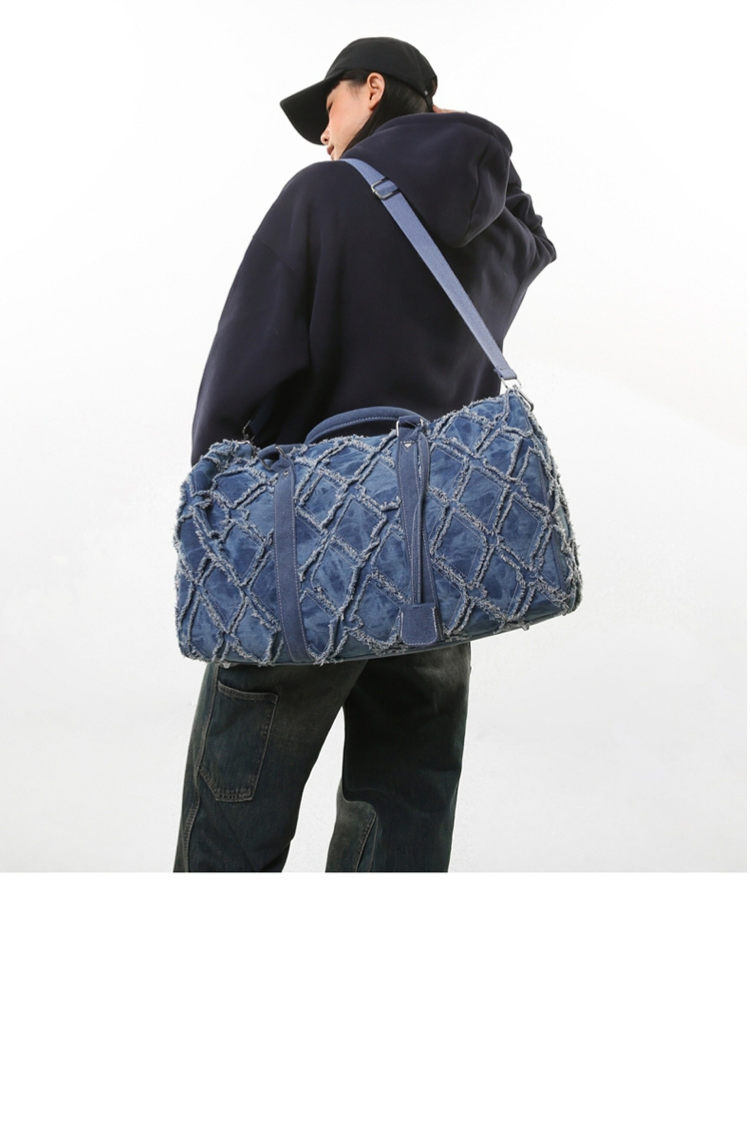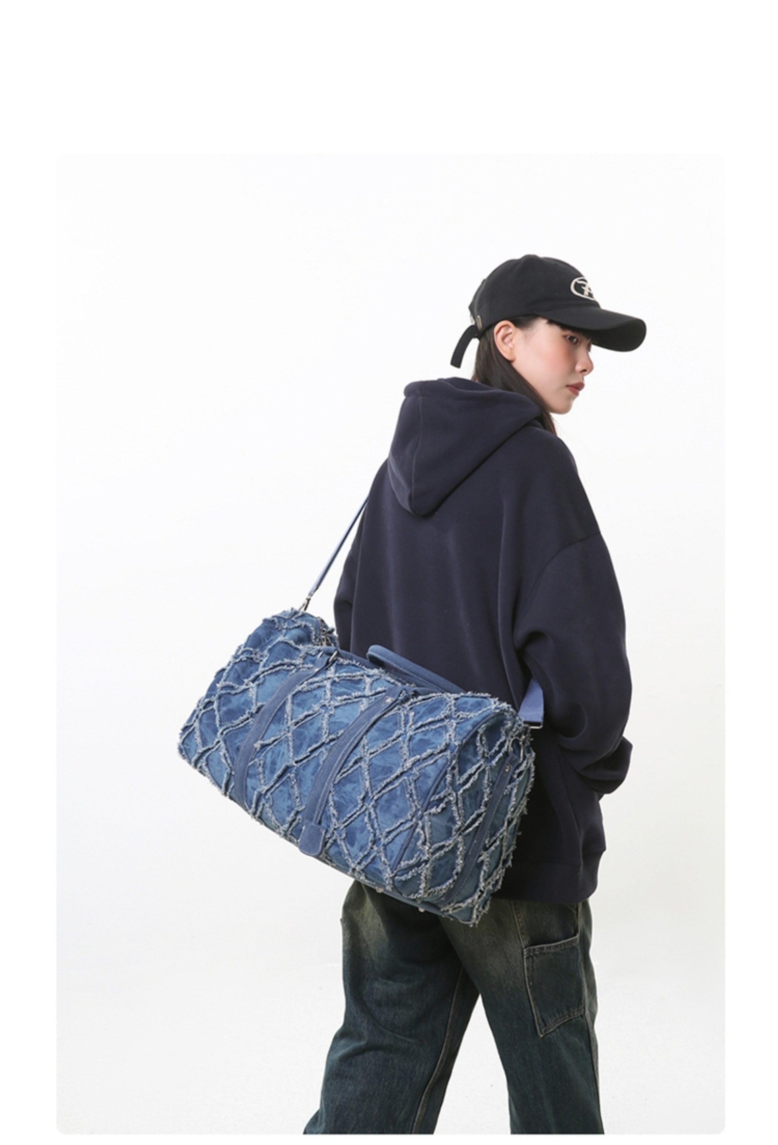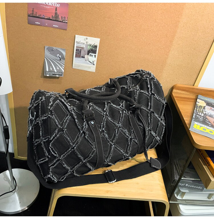 旅行包行李袋男女休閒帆布大容量短途包水洗牛仔布斜背手提健身包