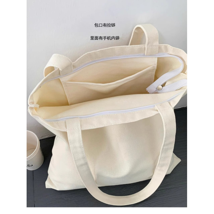 秋冬帆布包女單肩簡約百搭學生上課裝書包拉鍊布袋大容量書包