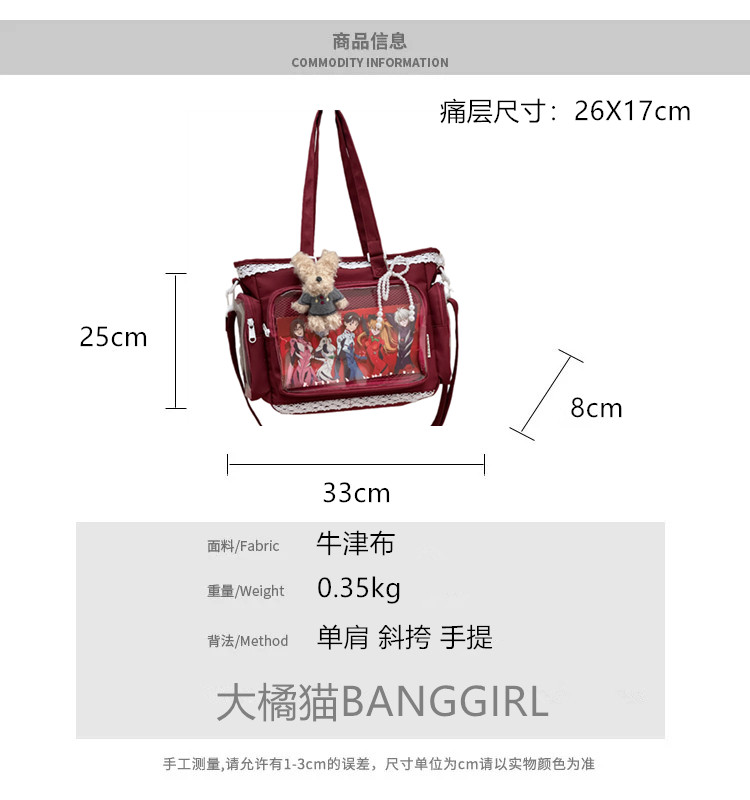 2026新款二次元痛包斜後後背包大容量托特包娃包單肩包透明吧唧痛包女