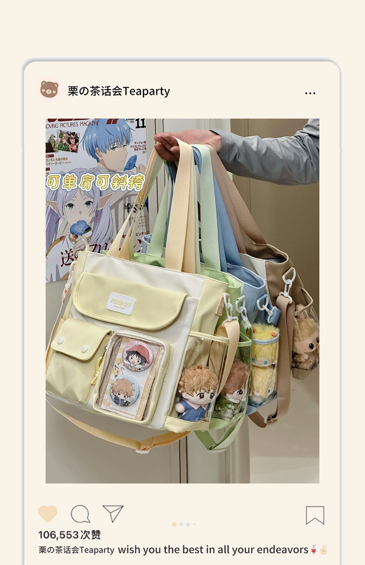 日系ins漫展小食量痛包日常 學生上課包單肩包女大容量斜後後背包娃包