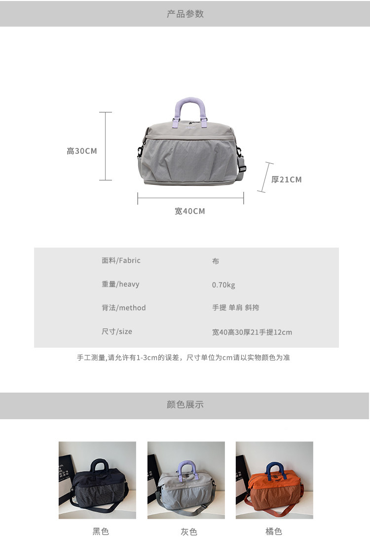 大容量旅行包女短途出差行李包旅遊收納輕便手提包時尚運動健身包