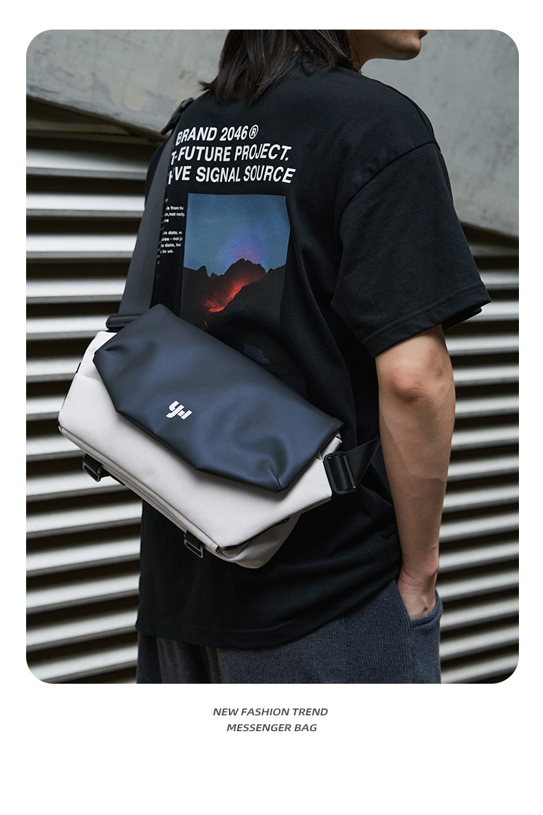 男士斜後後背包休閒機能斜後後背包潮牌單肩包多功能郵差包通勤挎包騎行包