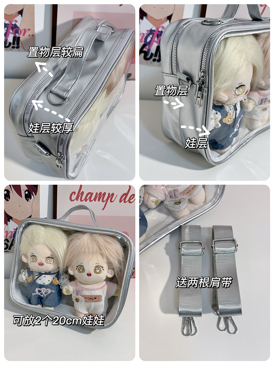 原創百搭簡約3way痛包二次元洛麗塔20cm娃包透明單肩斜背雙肩包JK