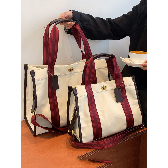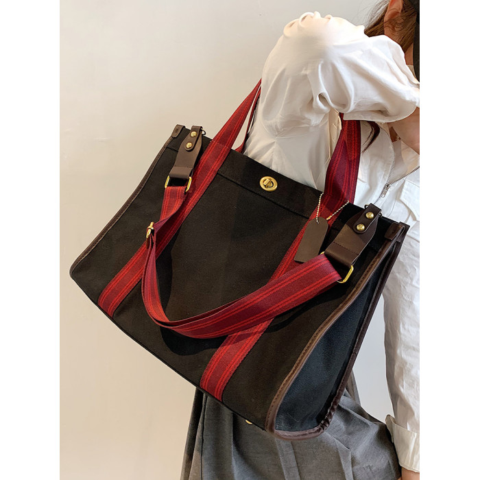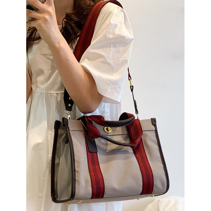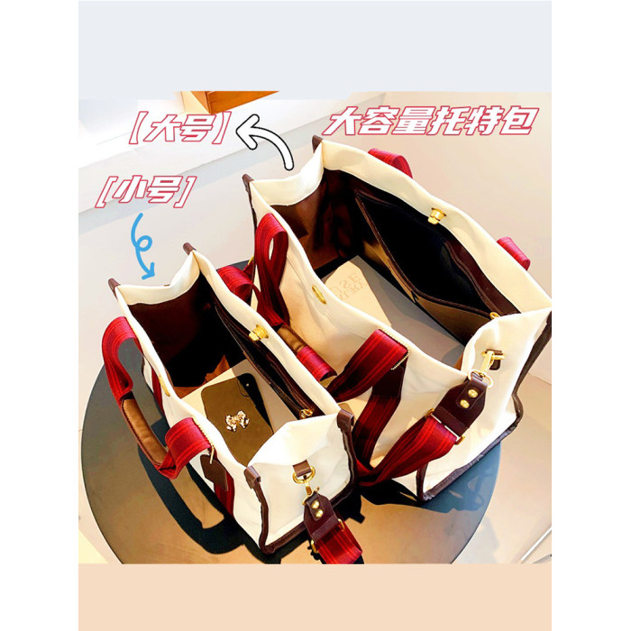 紅色帆布包托特包女大容量2025新款潮大學生上課手提袋單肩斜後後背包