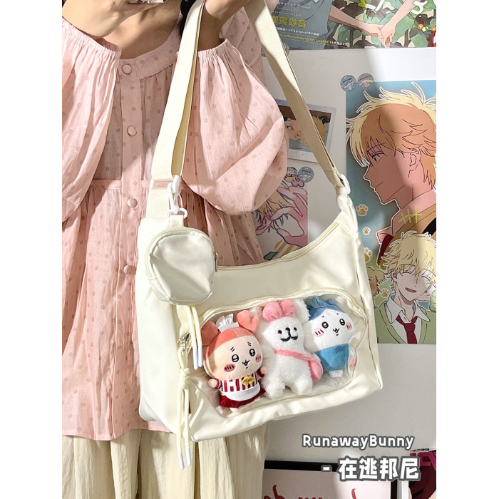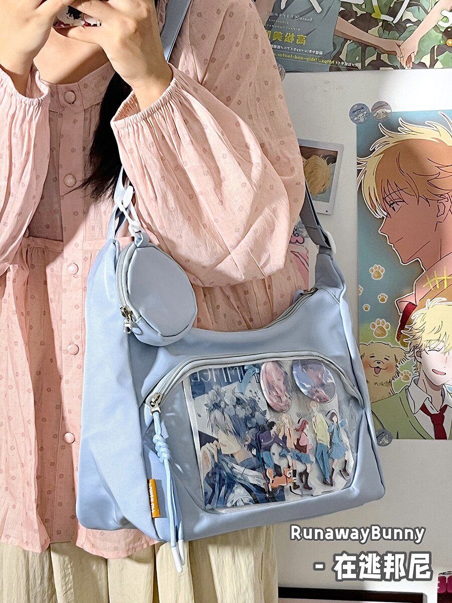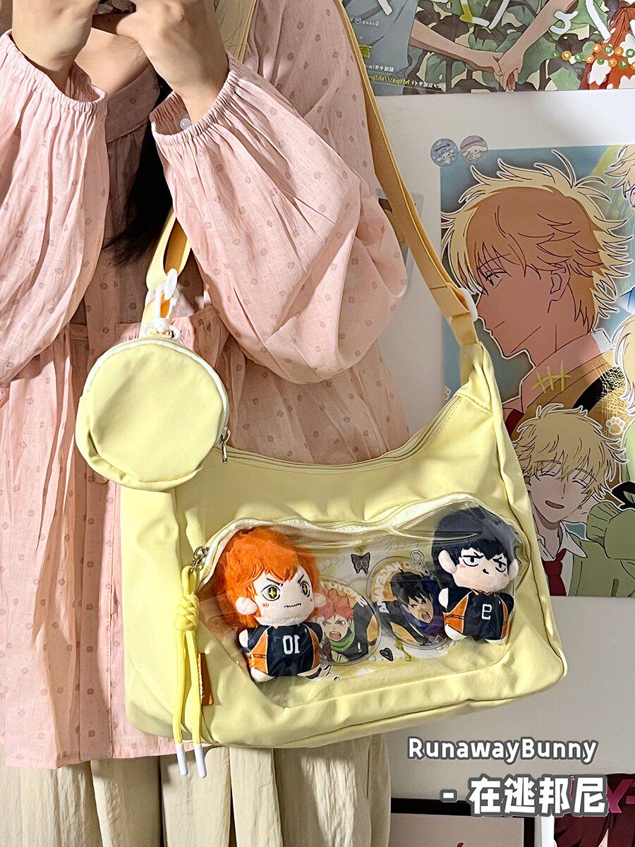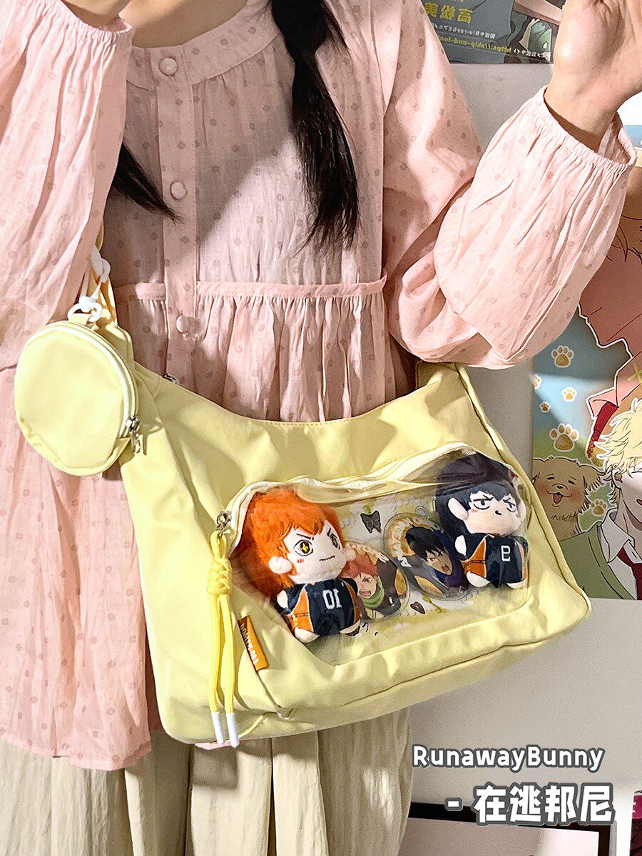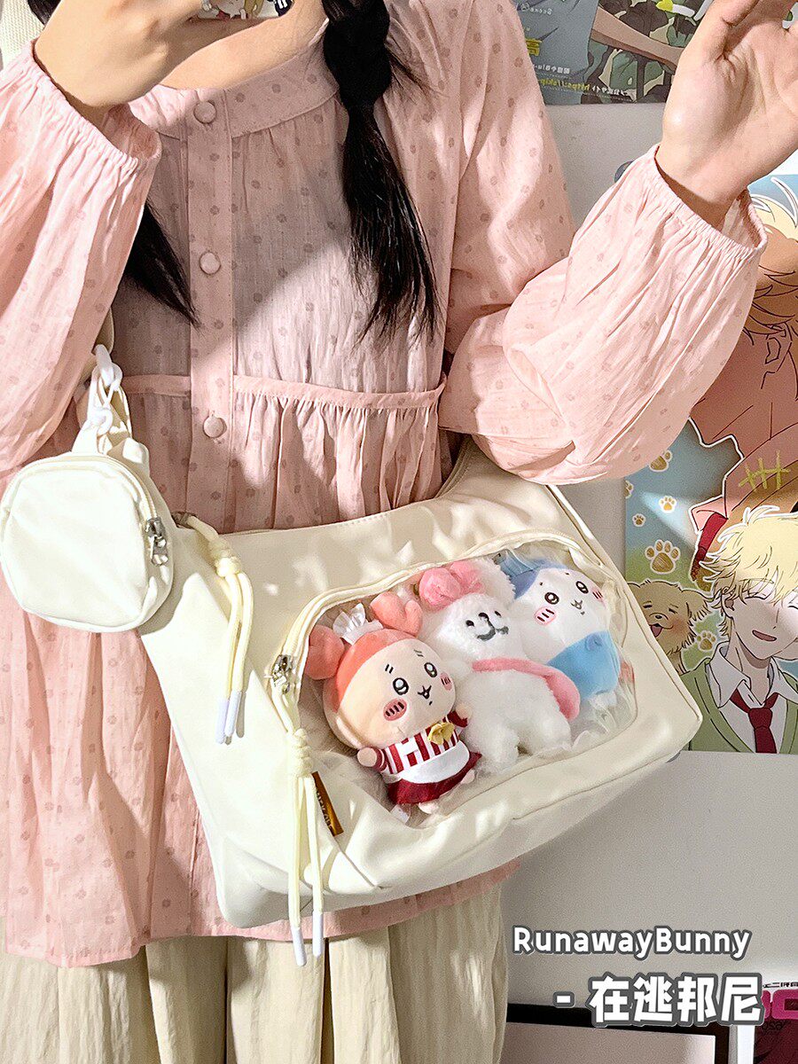 校園百搭大容量單肩斜後後背包二次元洛麗塔漫展透明吧唧痛包10cm娃包