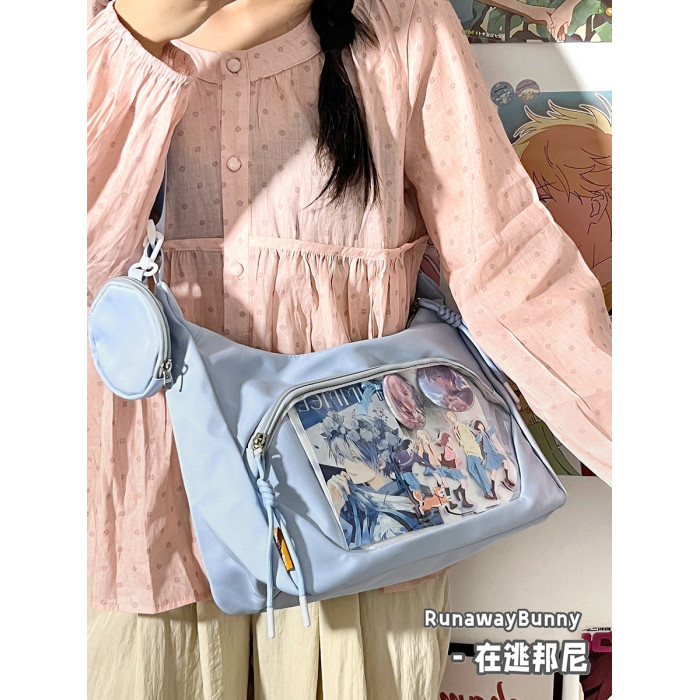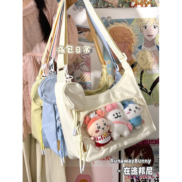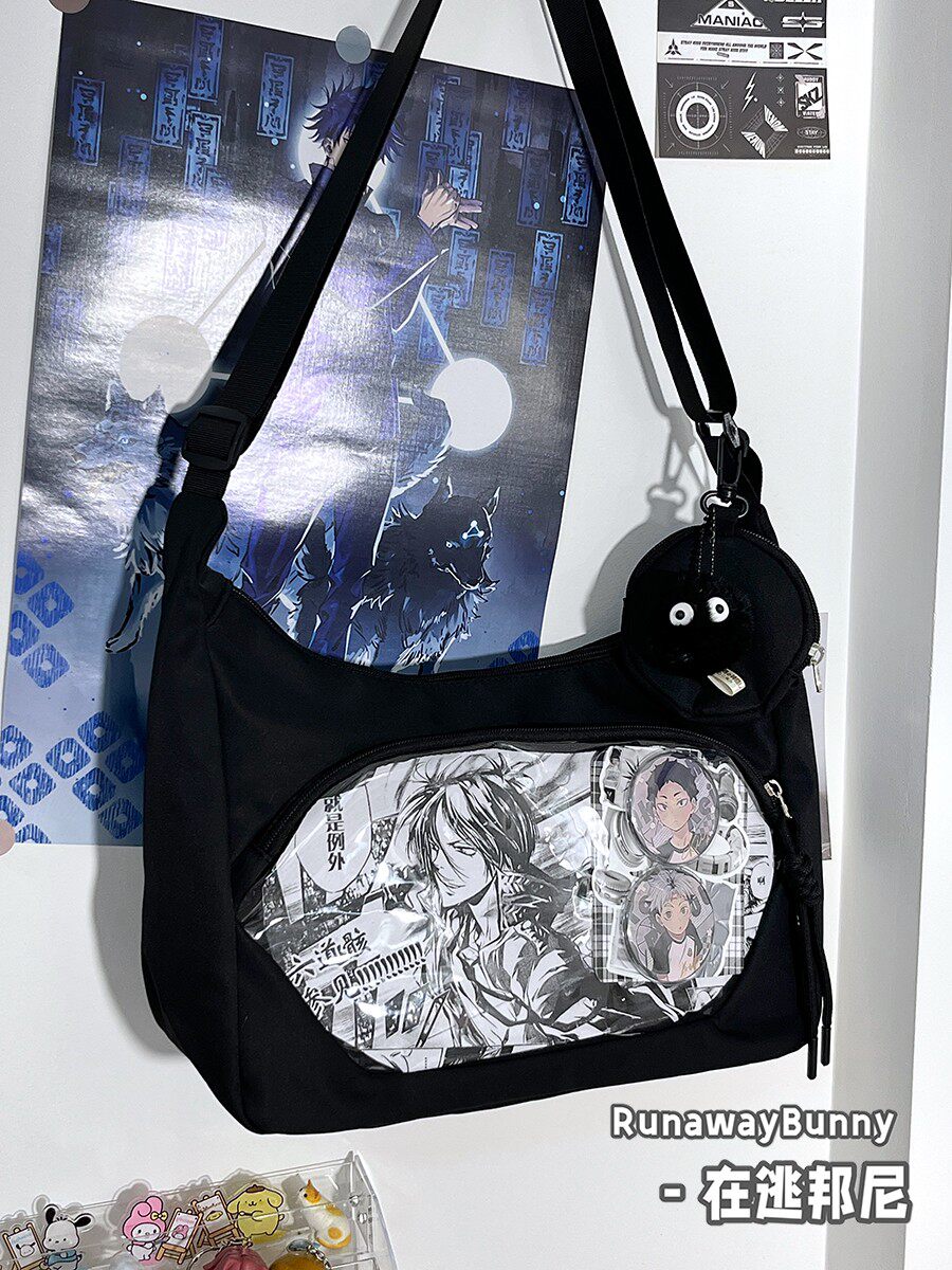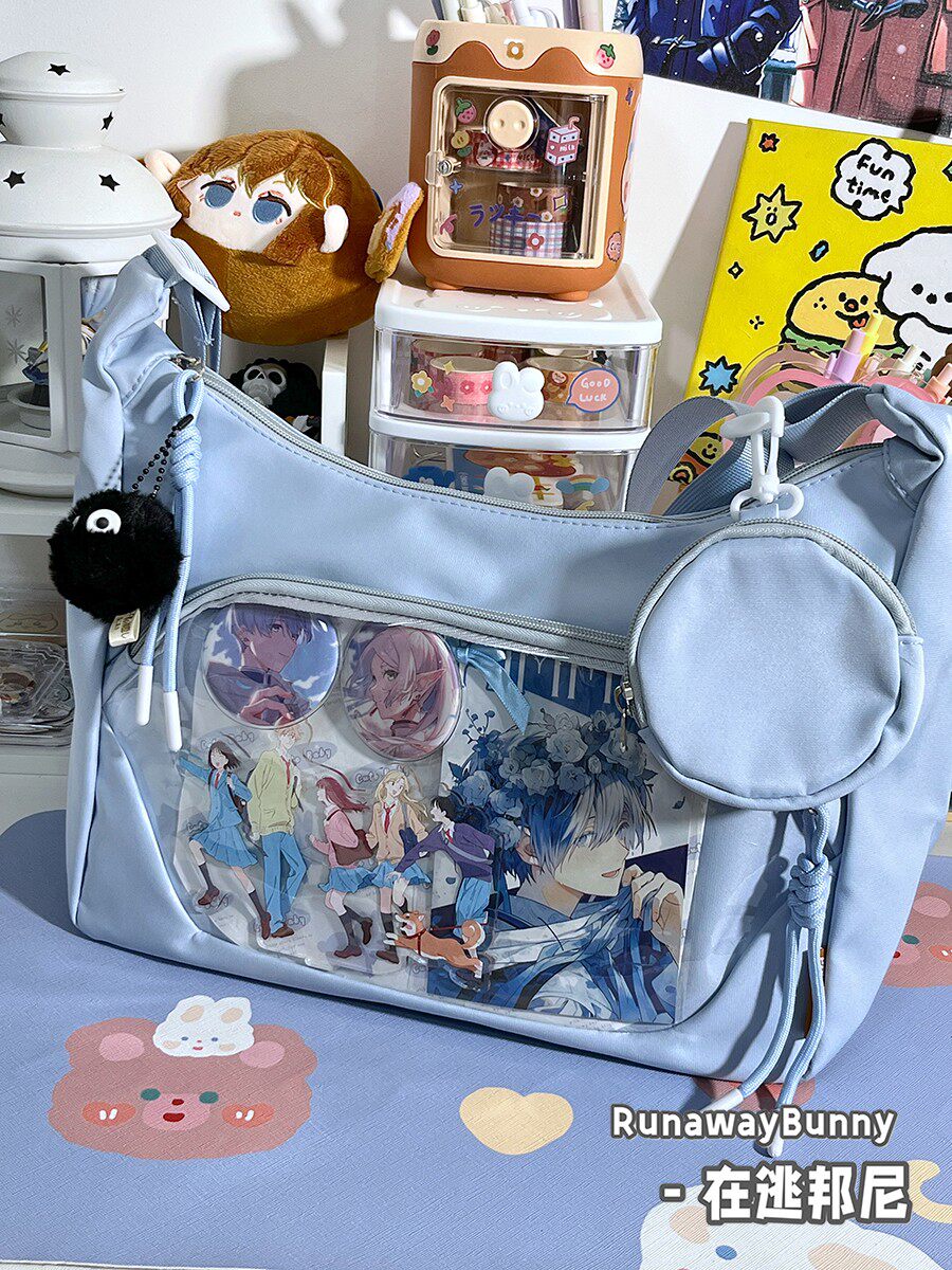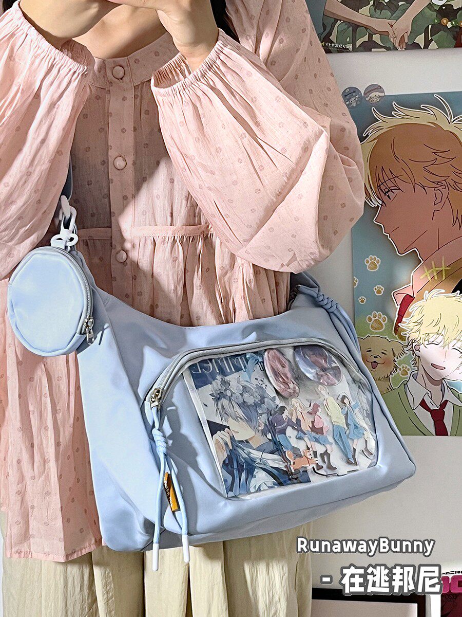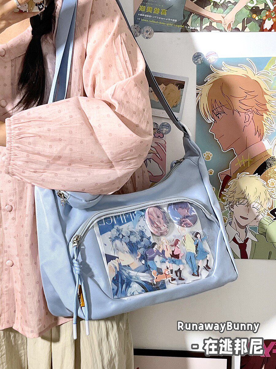 校園百搭大容量單肩斜後後背包二次元洛麗塔漫展透明吧唧痛包10cm娃包