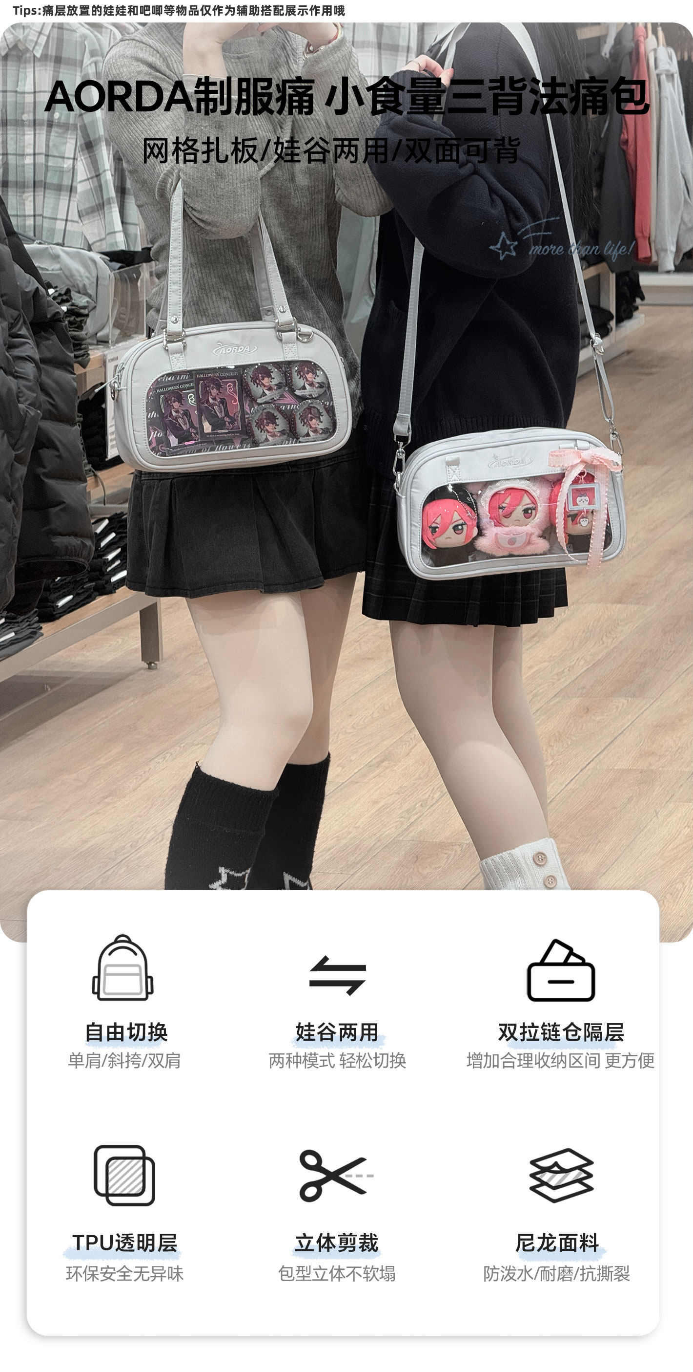 AORDA 二次元日常學生黨追星穀子痛包小食量單肩斜背10cm娃包吧唧