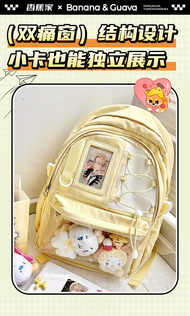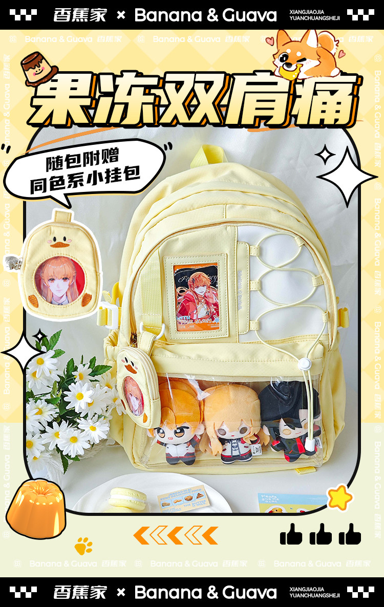 香蕉家原創設計果凍雙肩痛包初中學生書包大容量後後背包雙窗漫展娃包