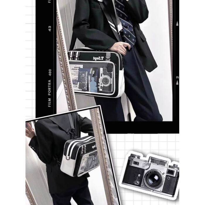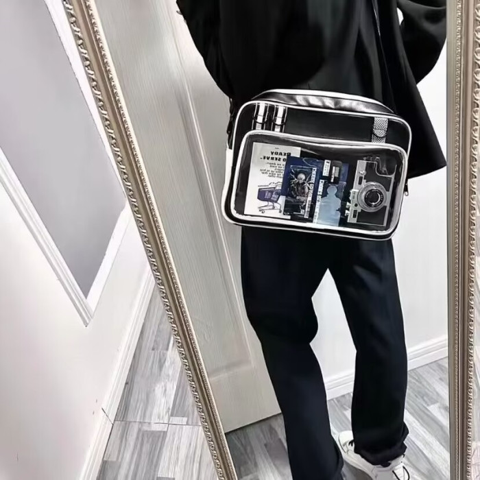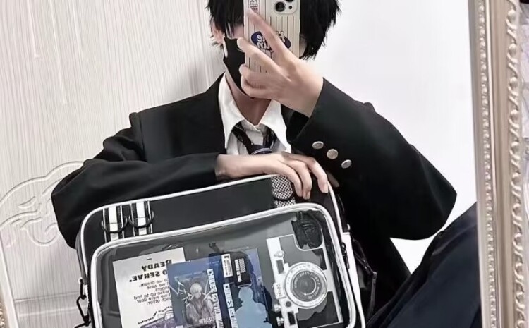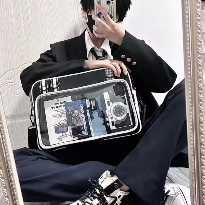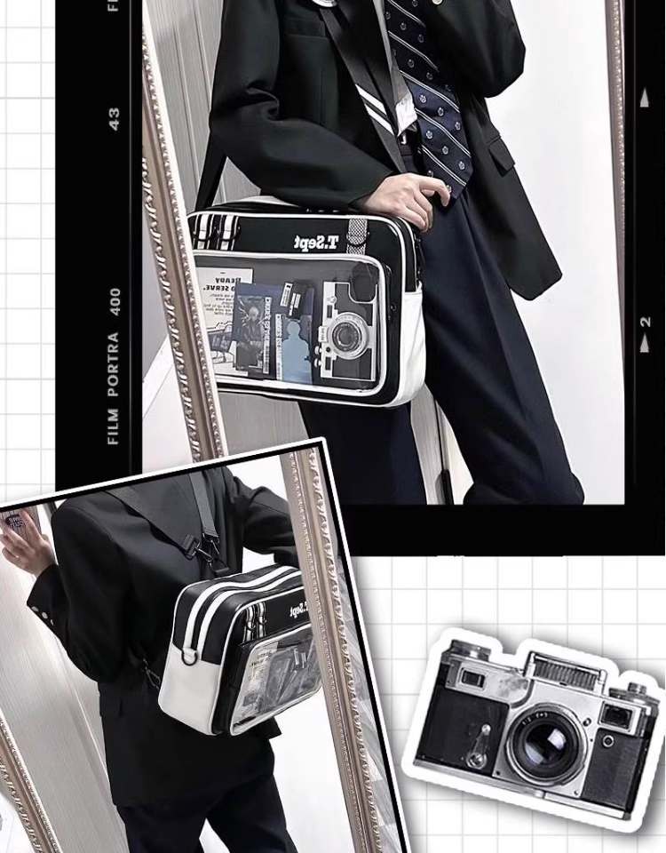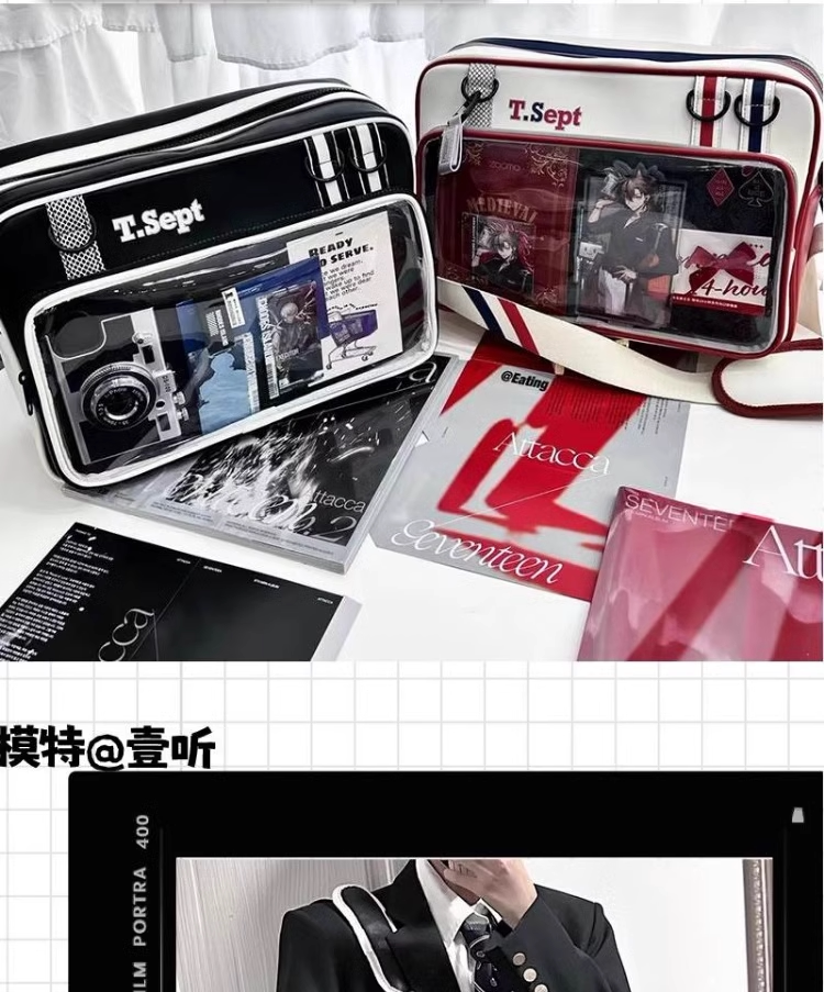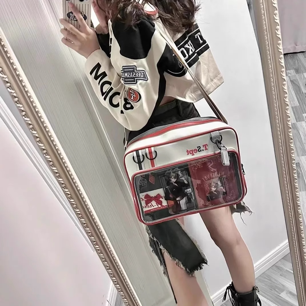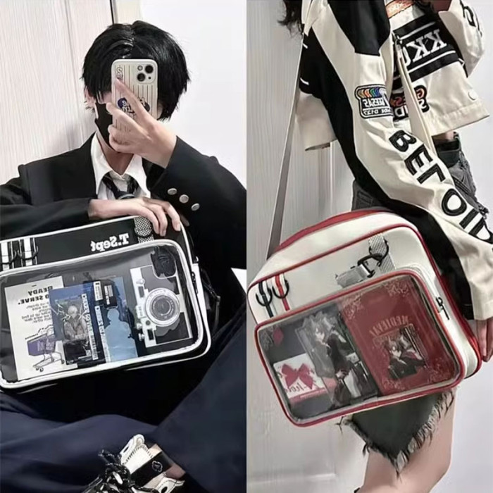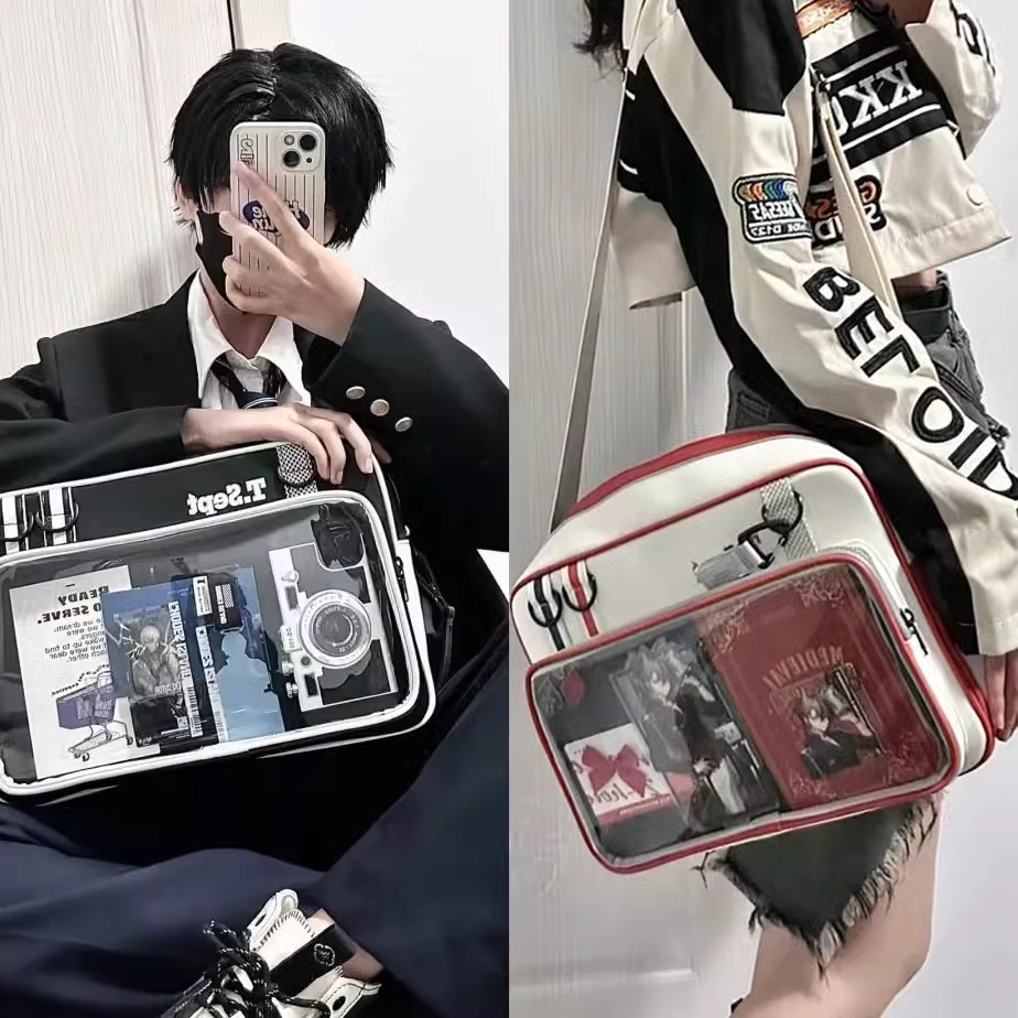紅色痛包大斜背大食量二次元通勤皮質痛包男生女生雙肩書包帶痛層