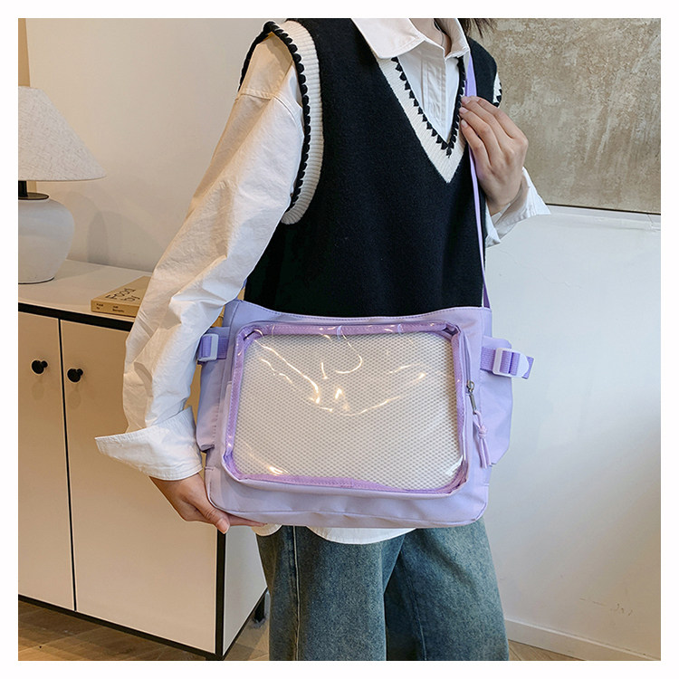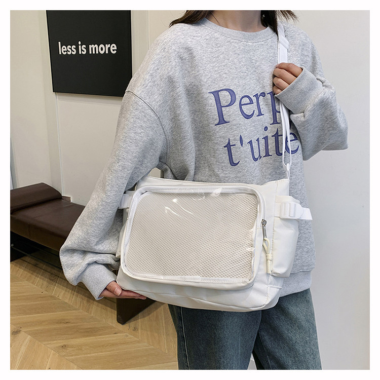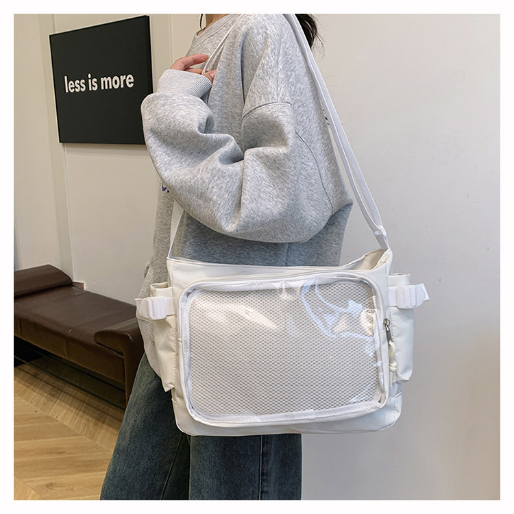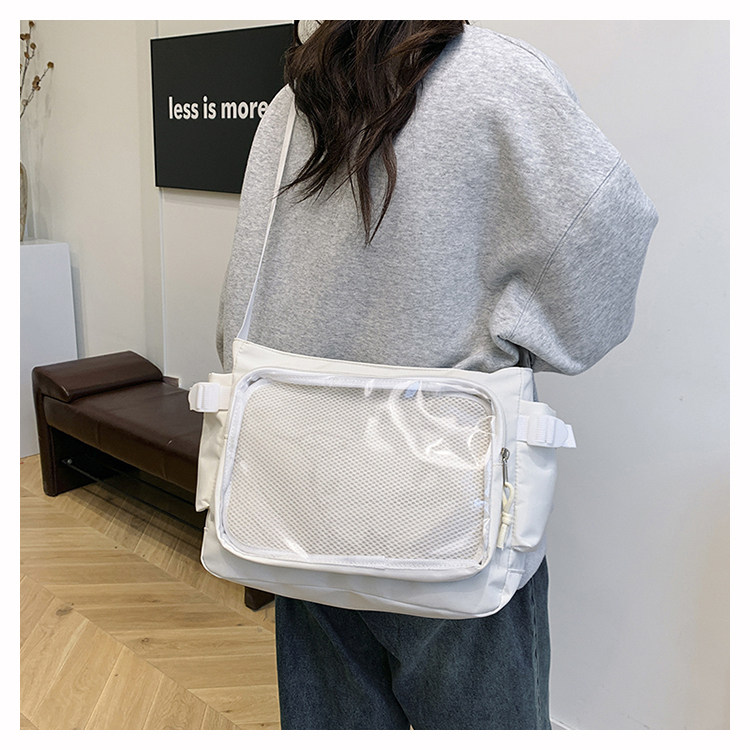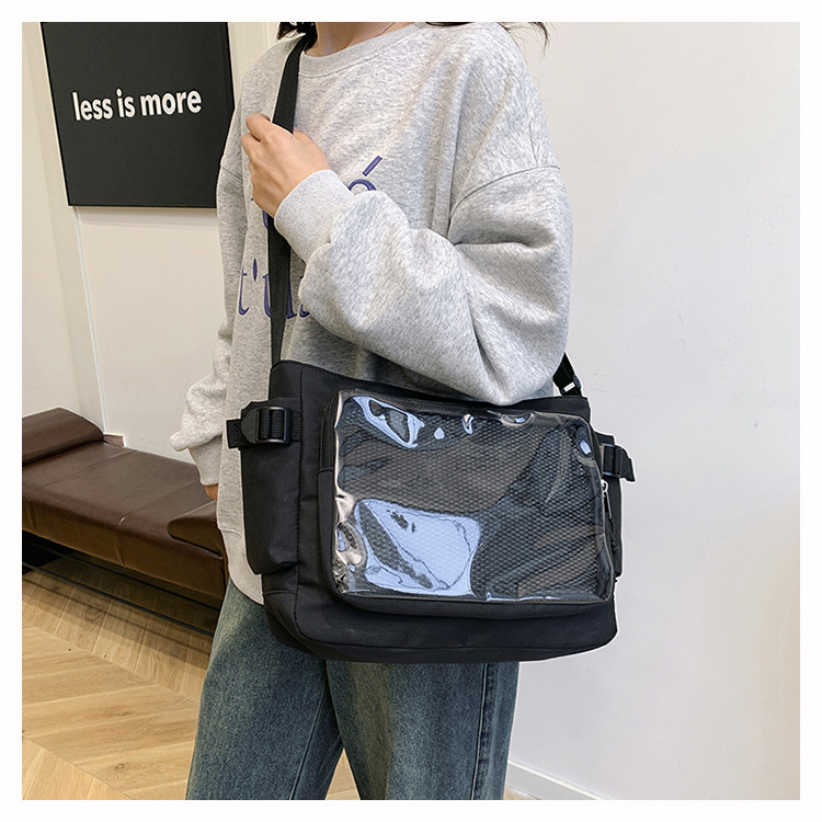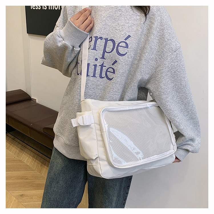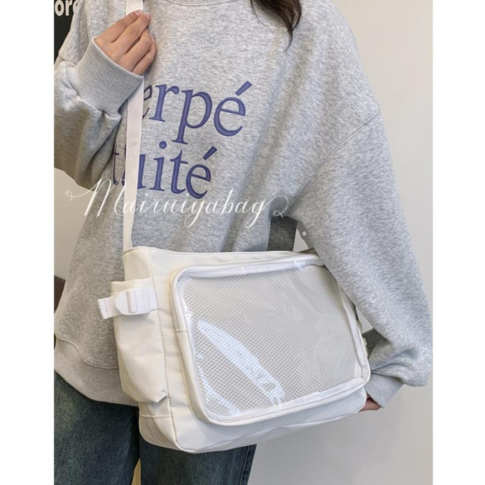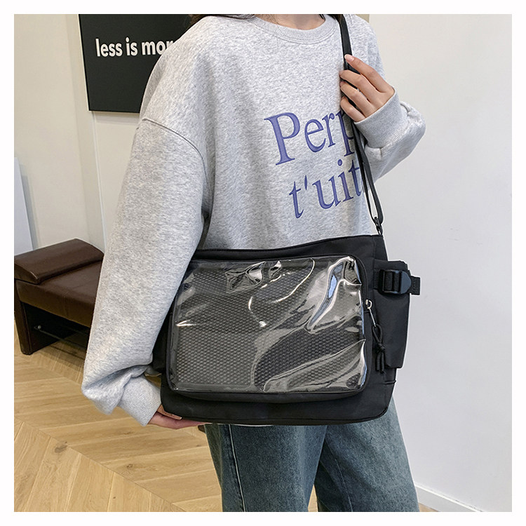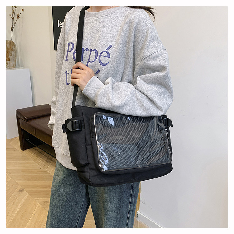 少女學生大容量上課郵差包女可愛吧唧透明痛包簡約百搭單肩斜後後背包