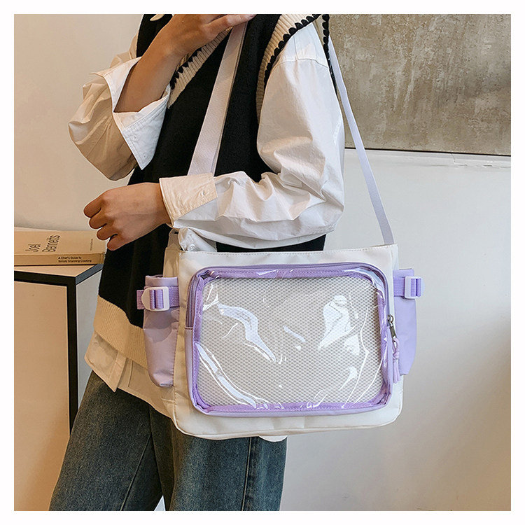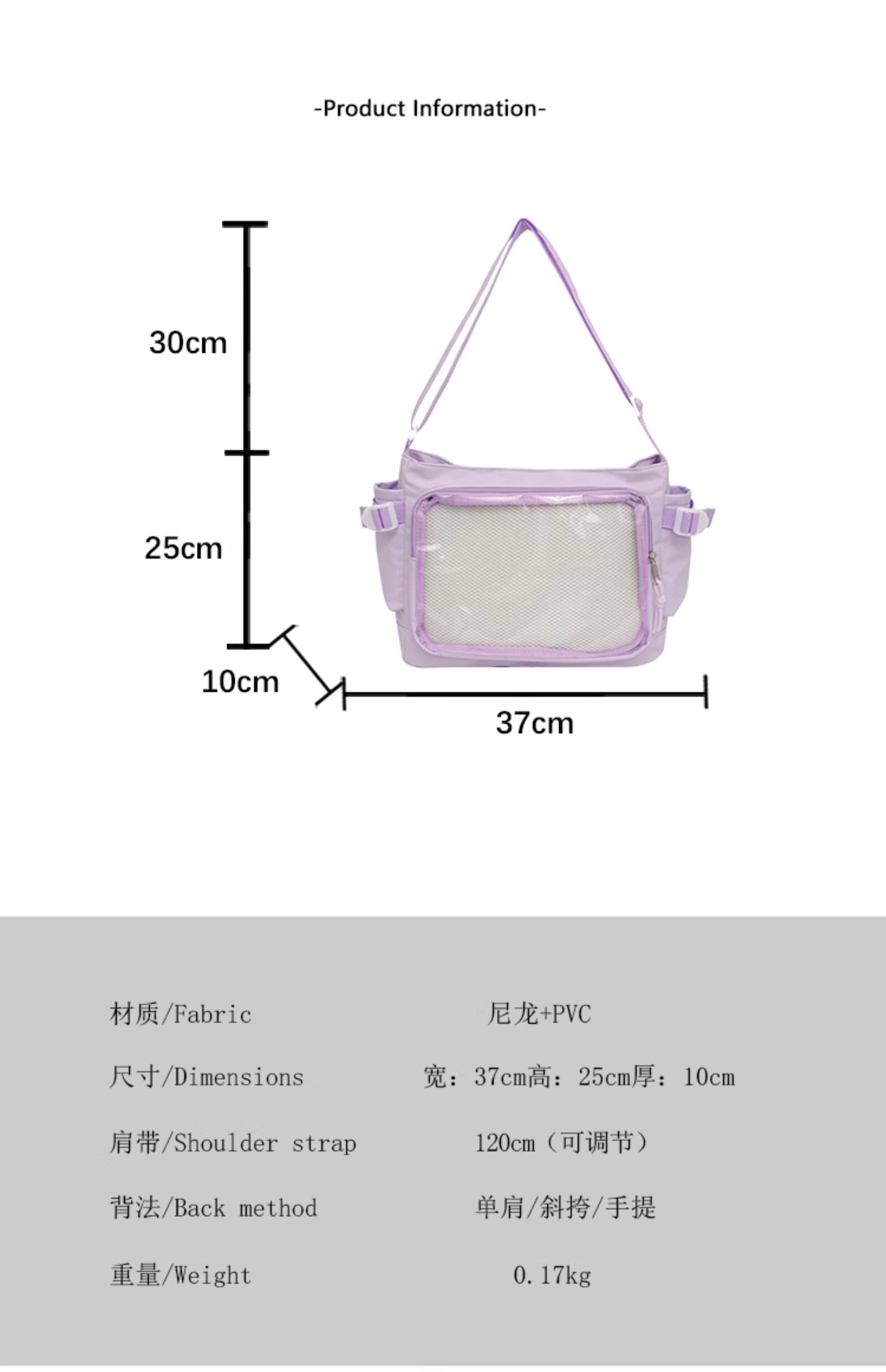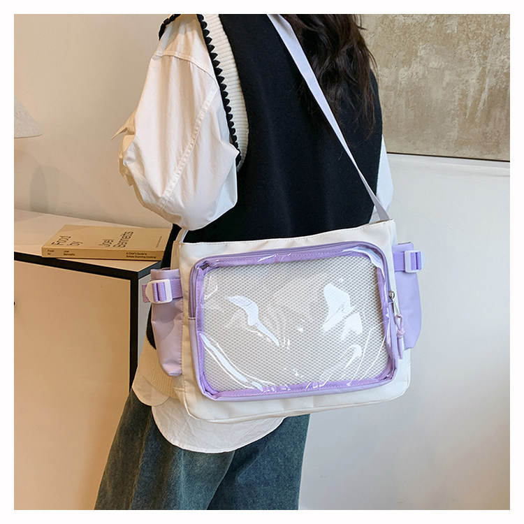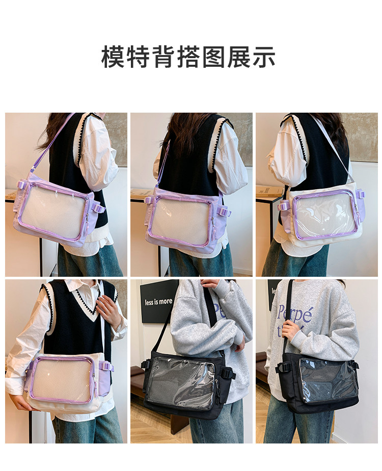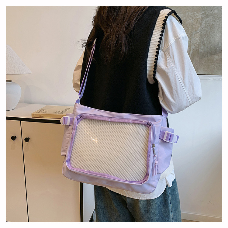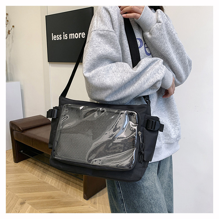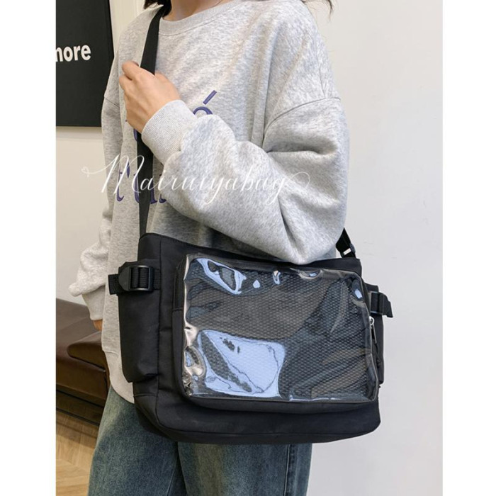 少女學生大容量上課郵差包女可愛吧唧透明痛包簡約百搭單肩斜後後背包