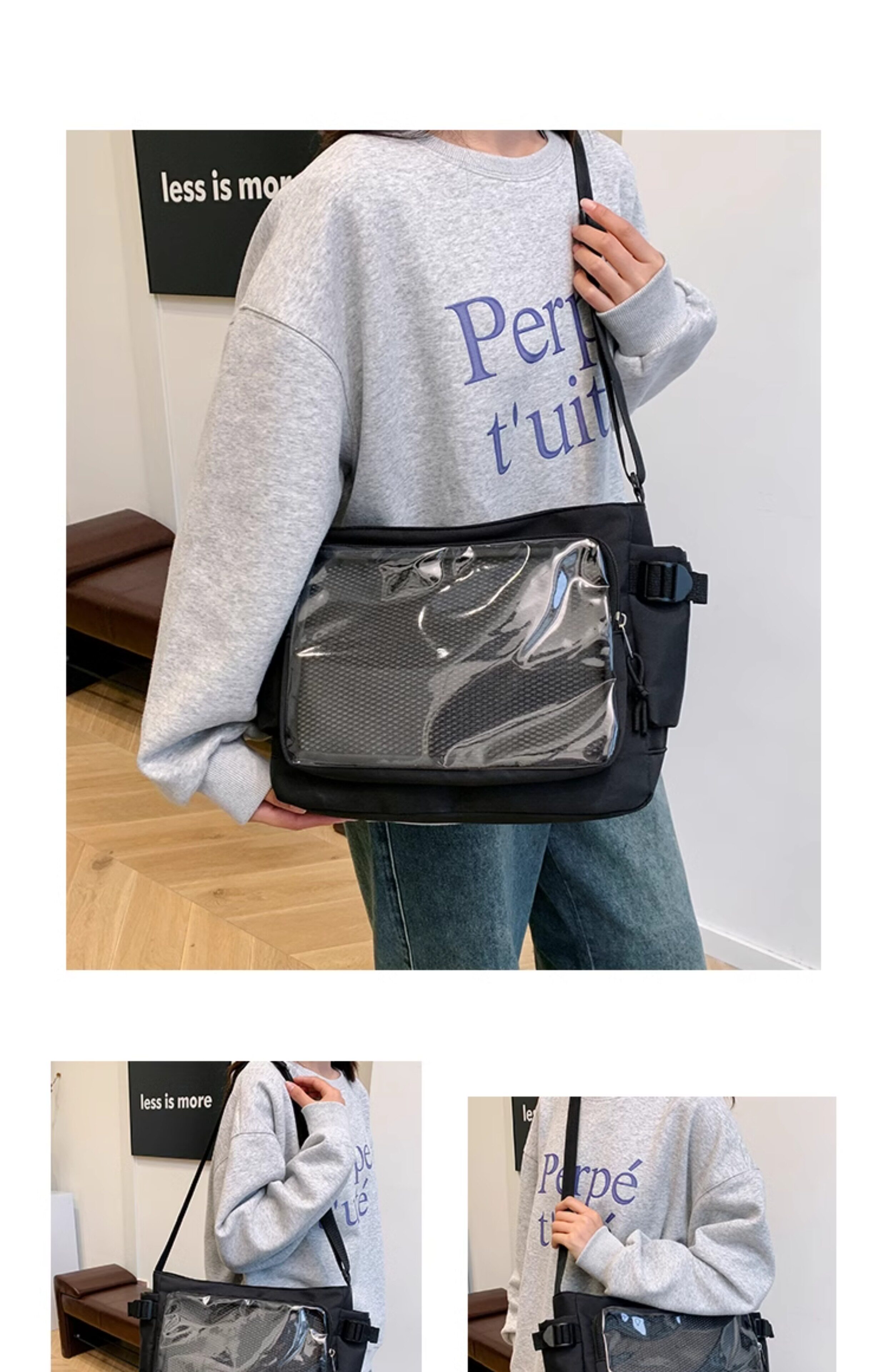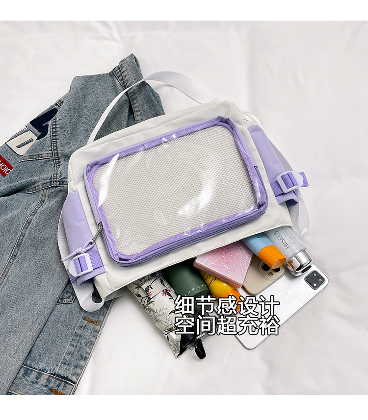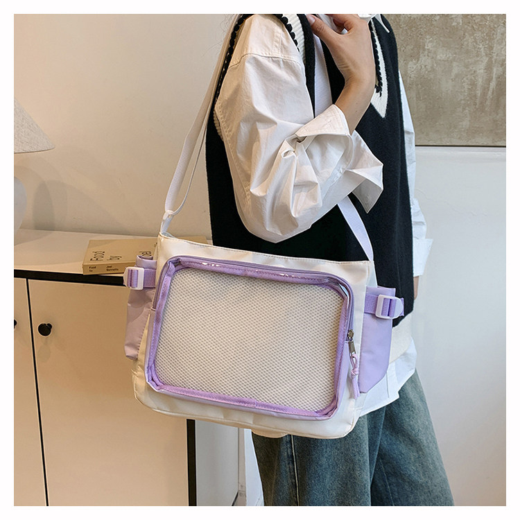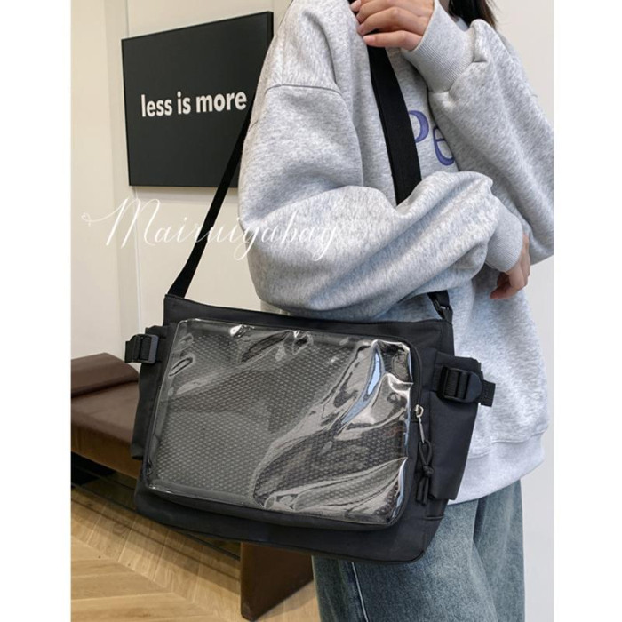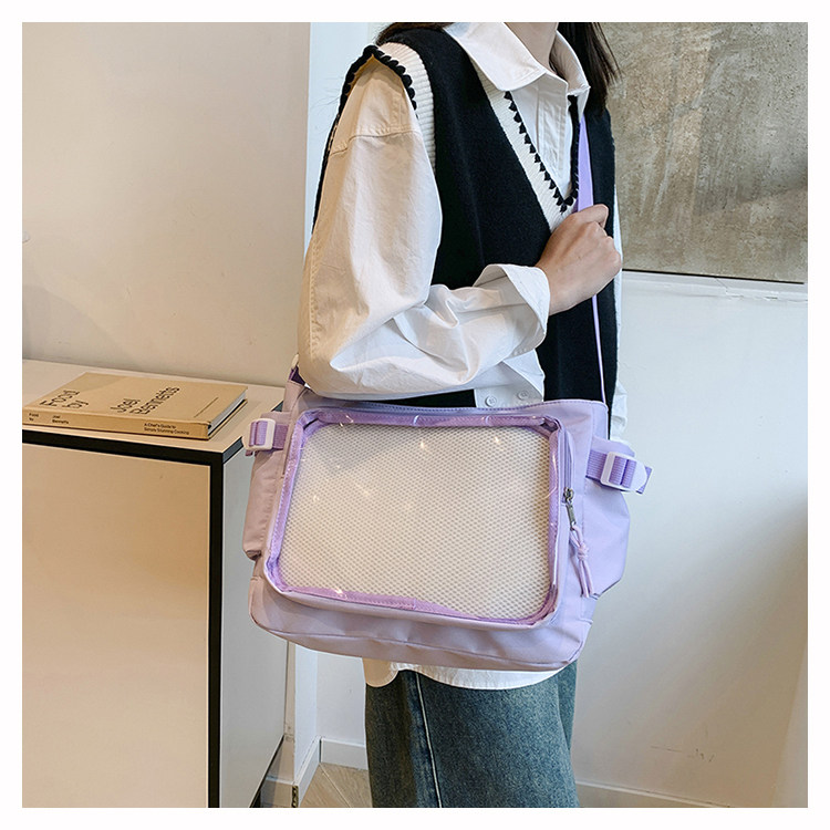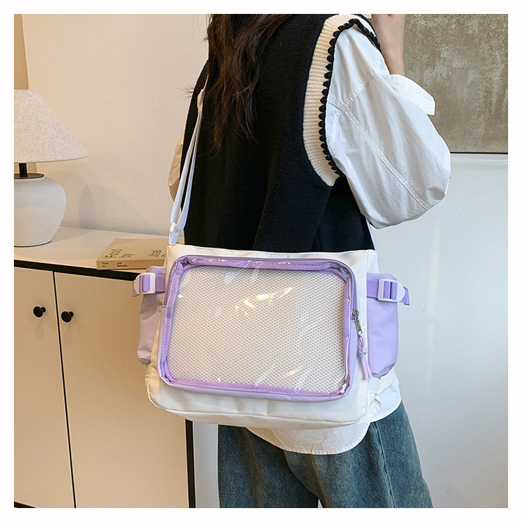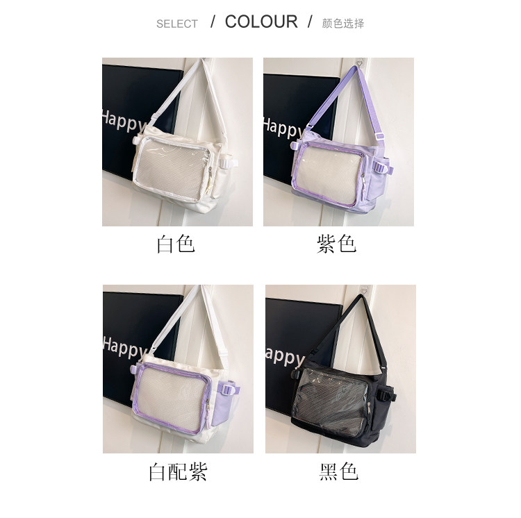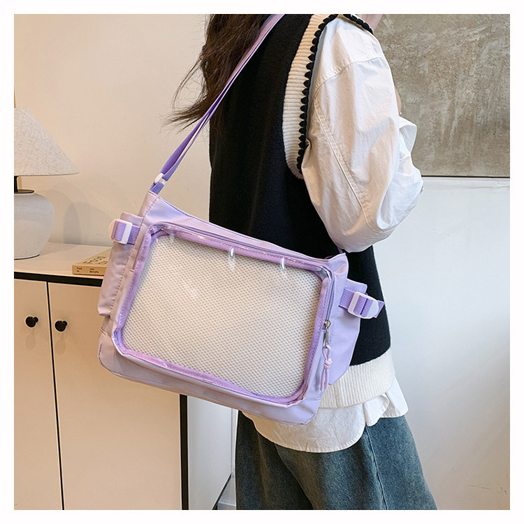少女學生大容量上課郵差包女可愛吧唧透明痛包簡約百搭單肩斜後後背包