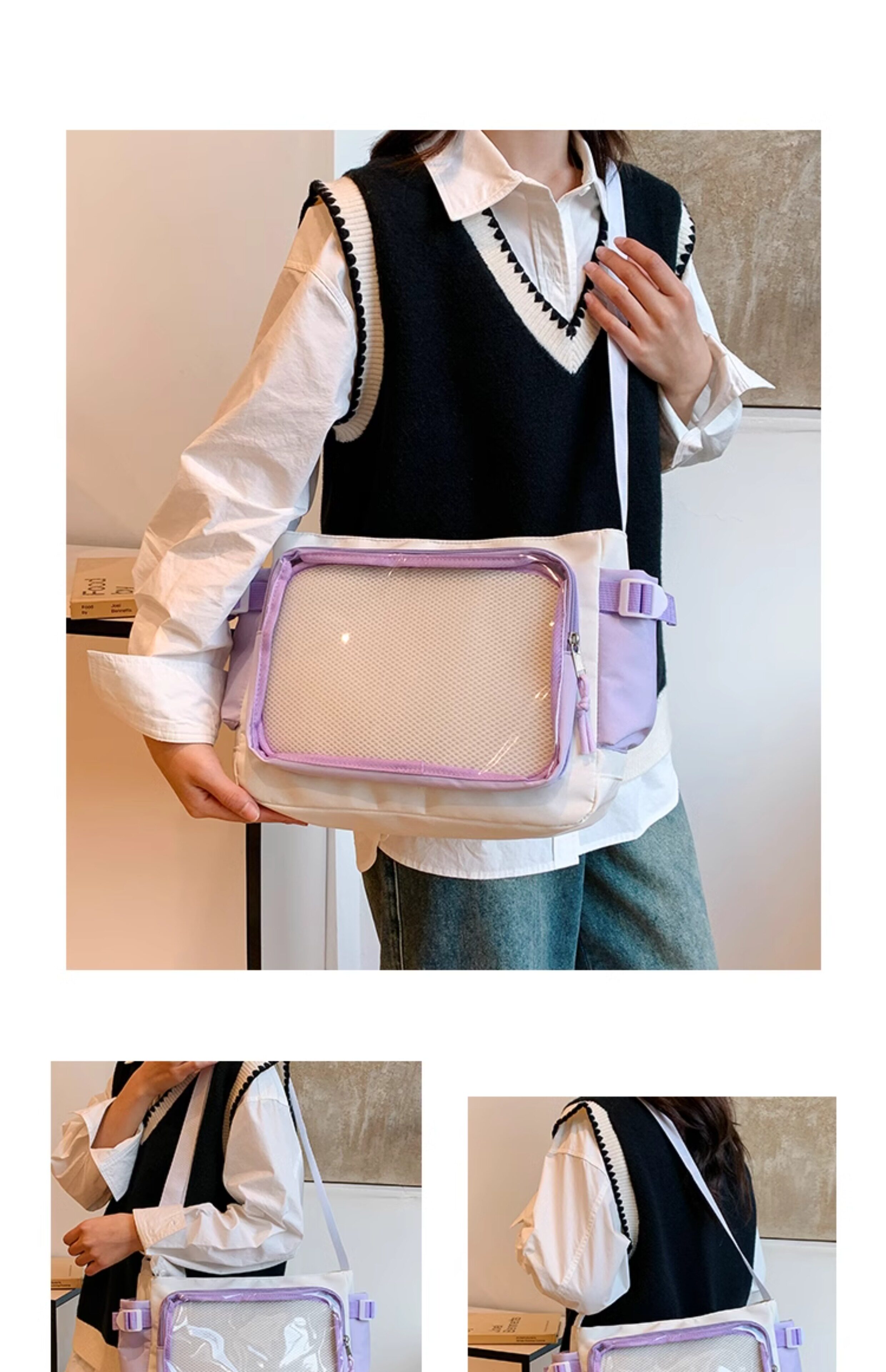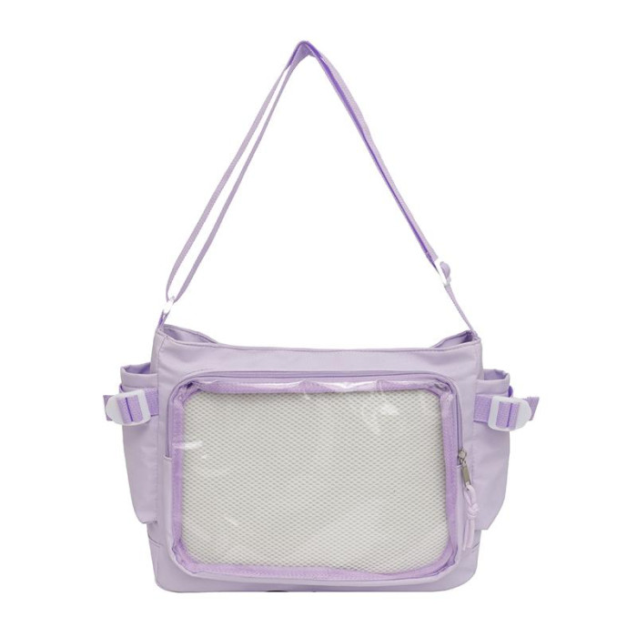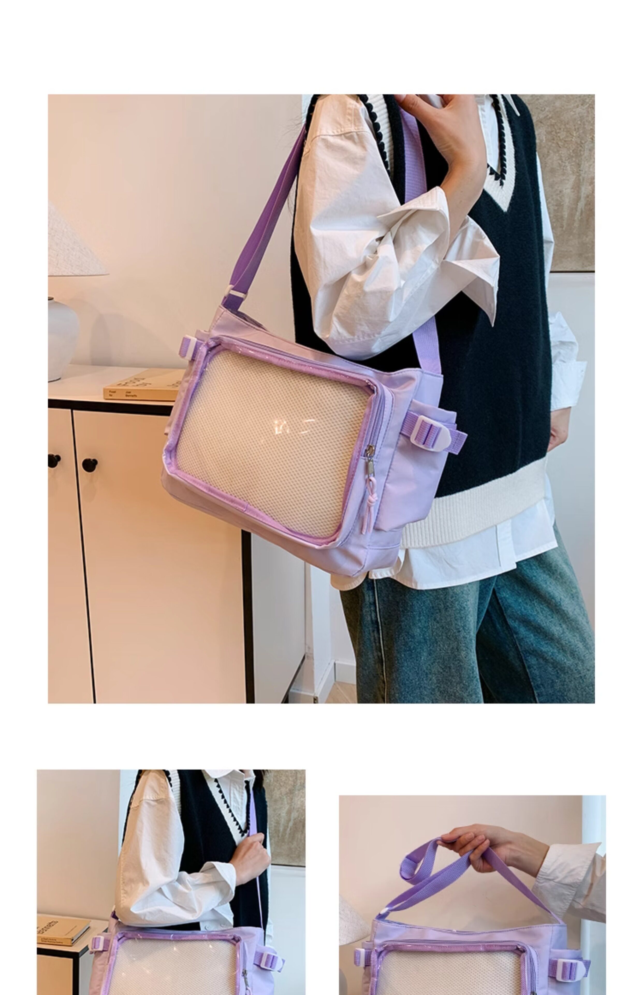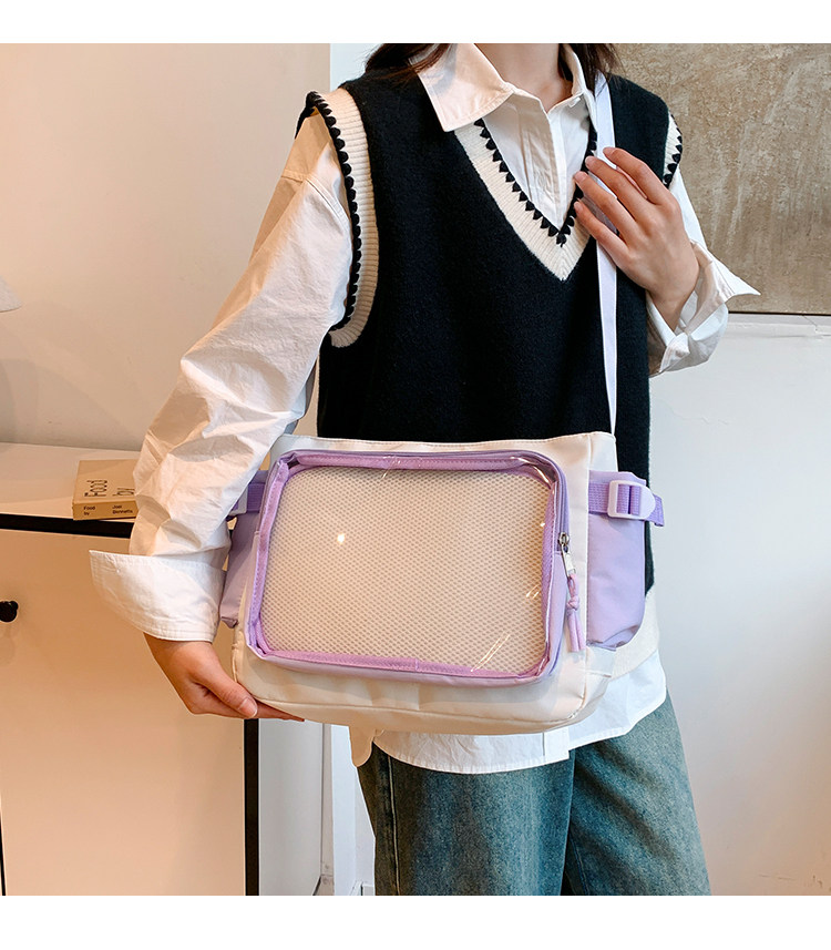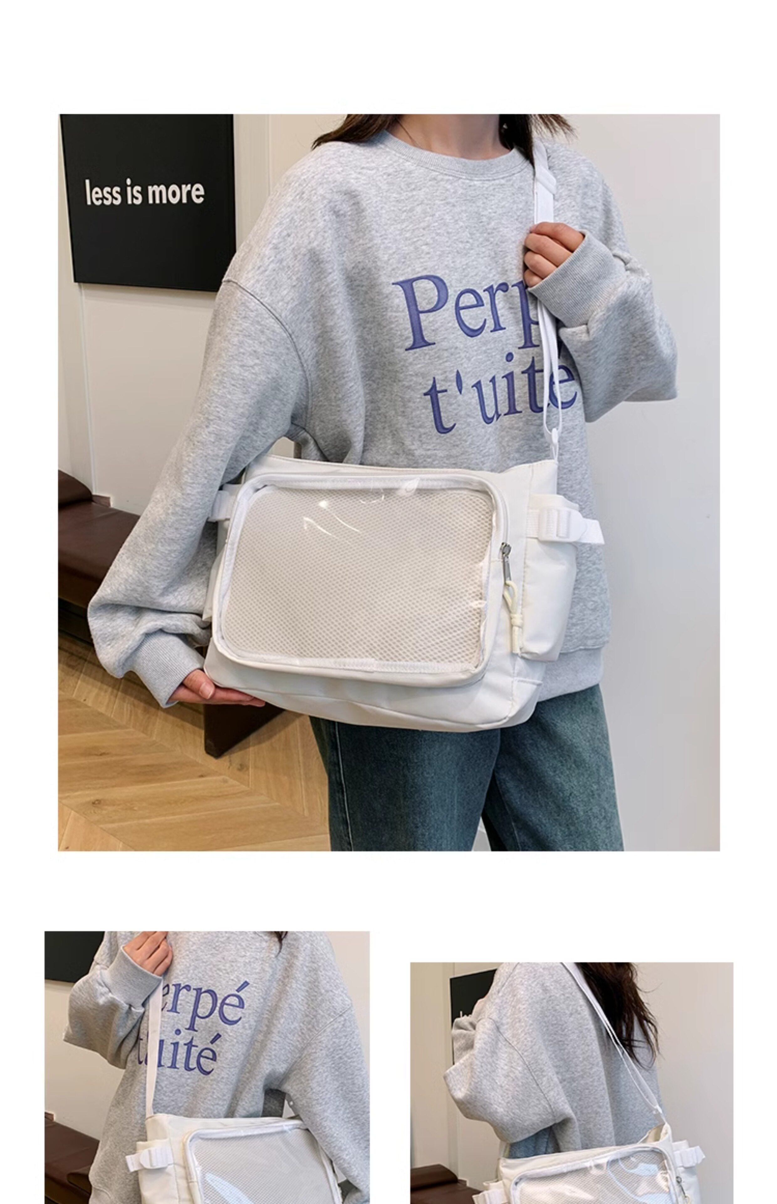 少女學生大容量上課郵差包女可愛吧唧透明痛包簡約百搭單肩斜後後背包