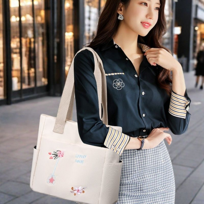 新款布包女學生輕便上寬補習包袋單肩百搭大容量托特手拎包通勤包