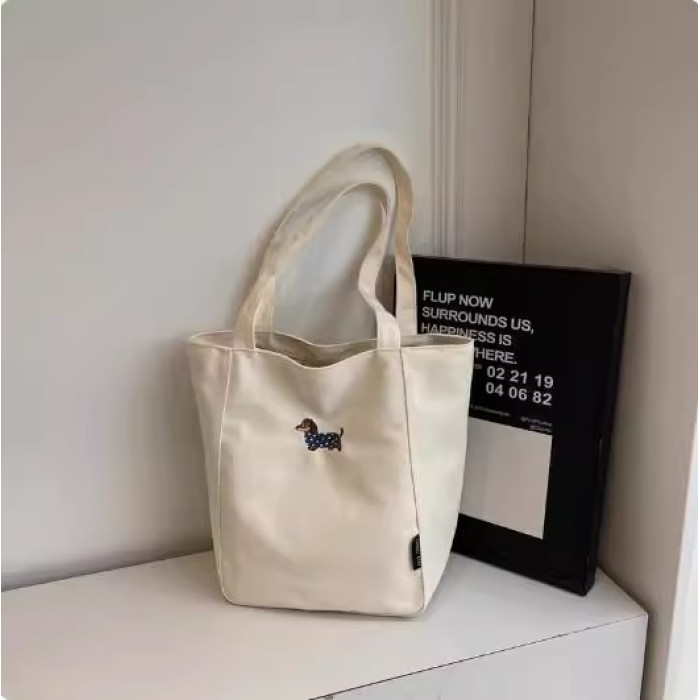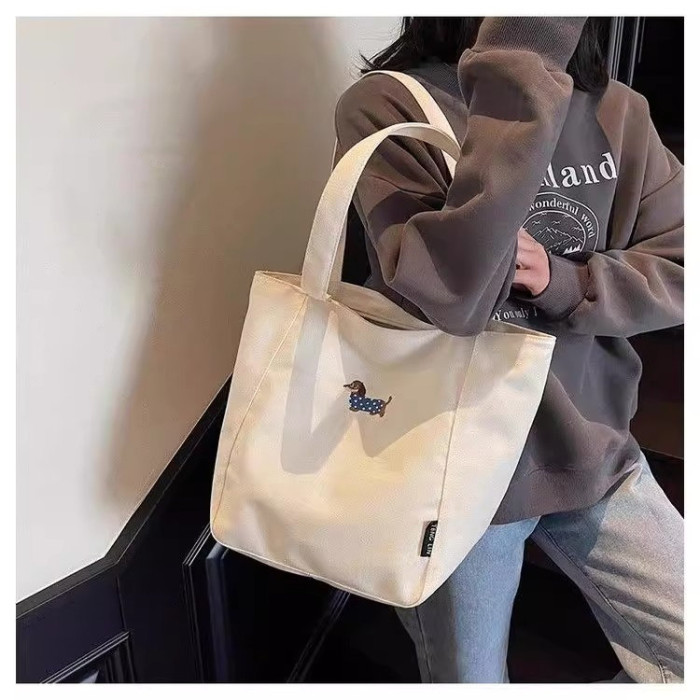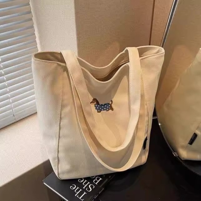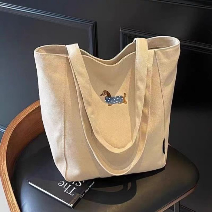 B刺綉臘腸狗帆布包女大容量學生上課手提袋休閒百搭單肩通勤托特b