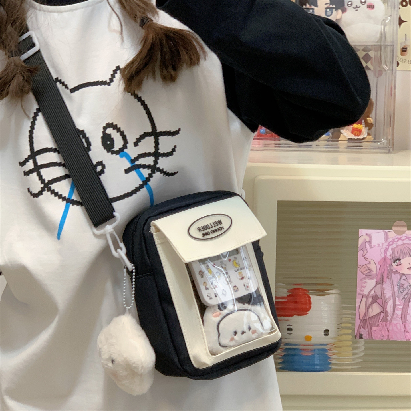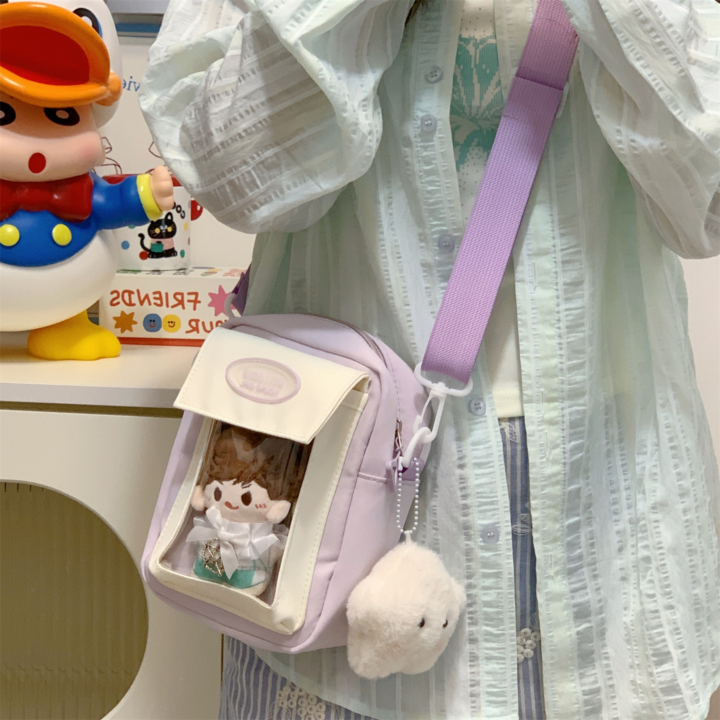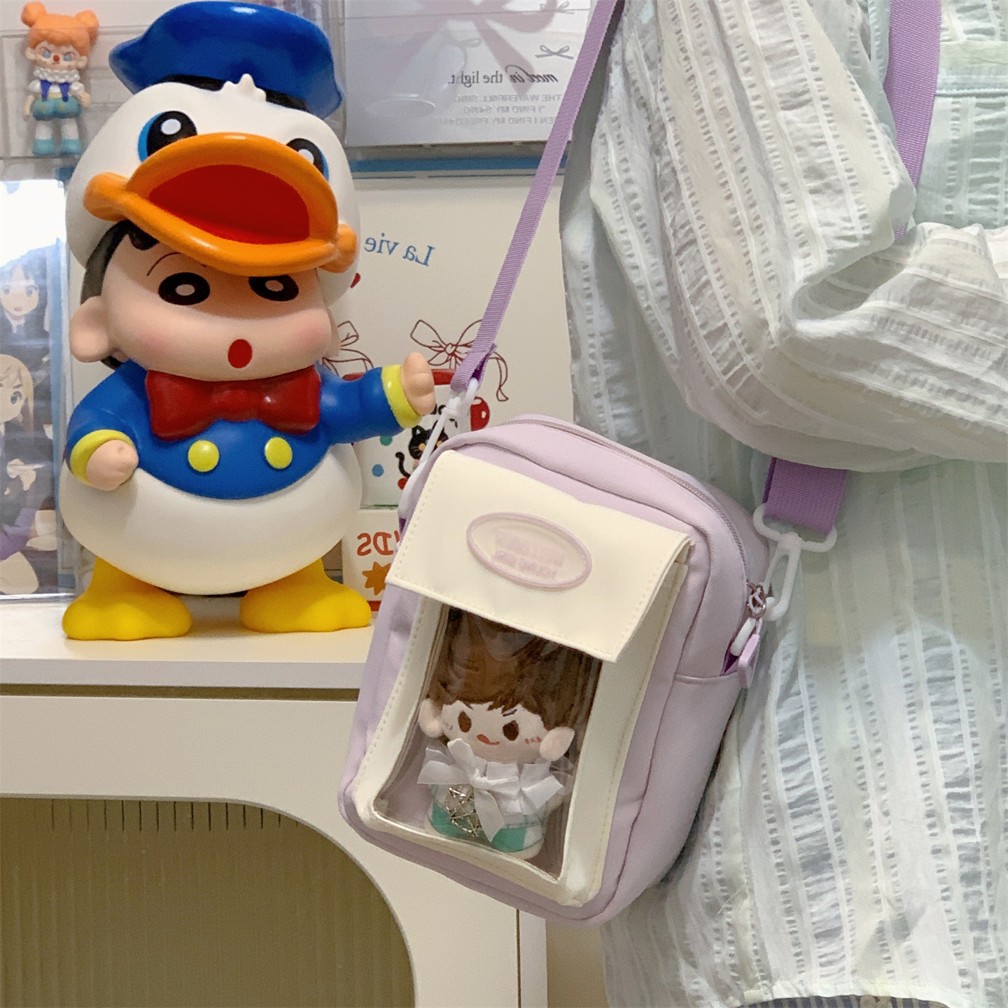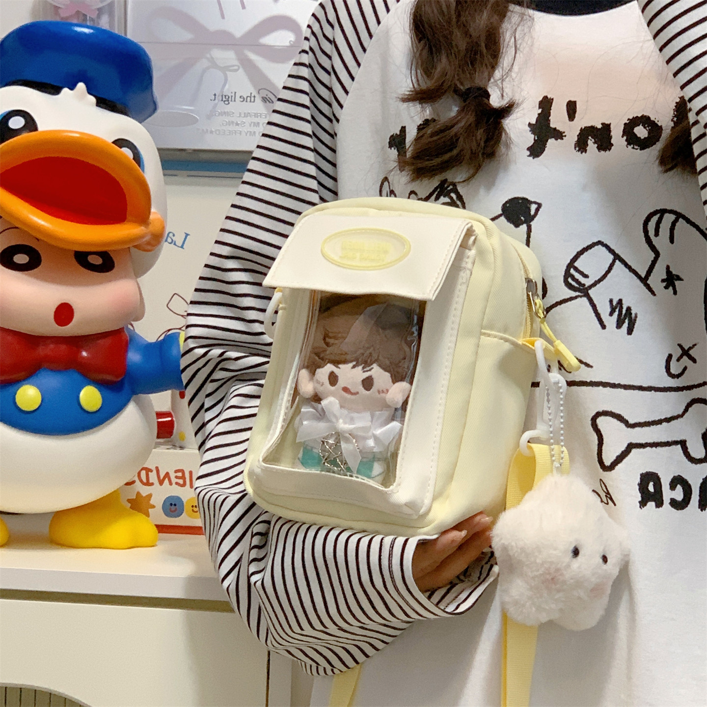 迷你痛包小食量裝10cm娃包透明層隔層的二次元手機小挎包日常斜背