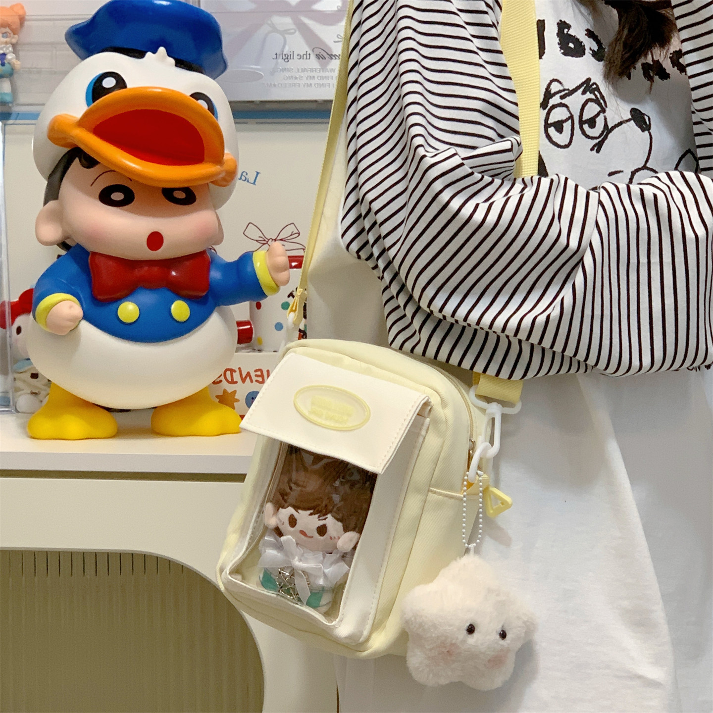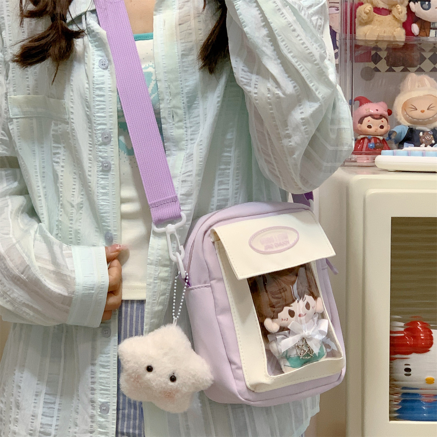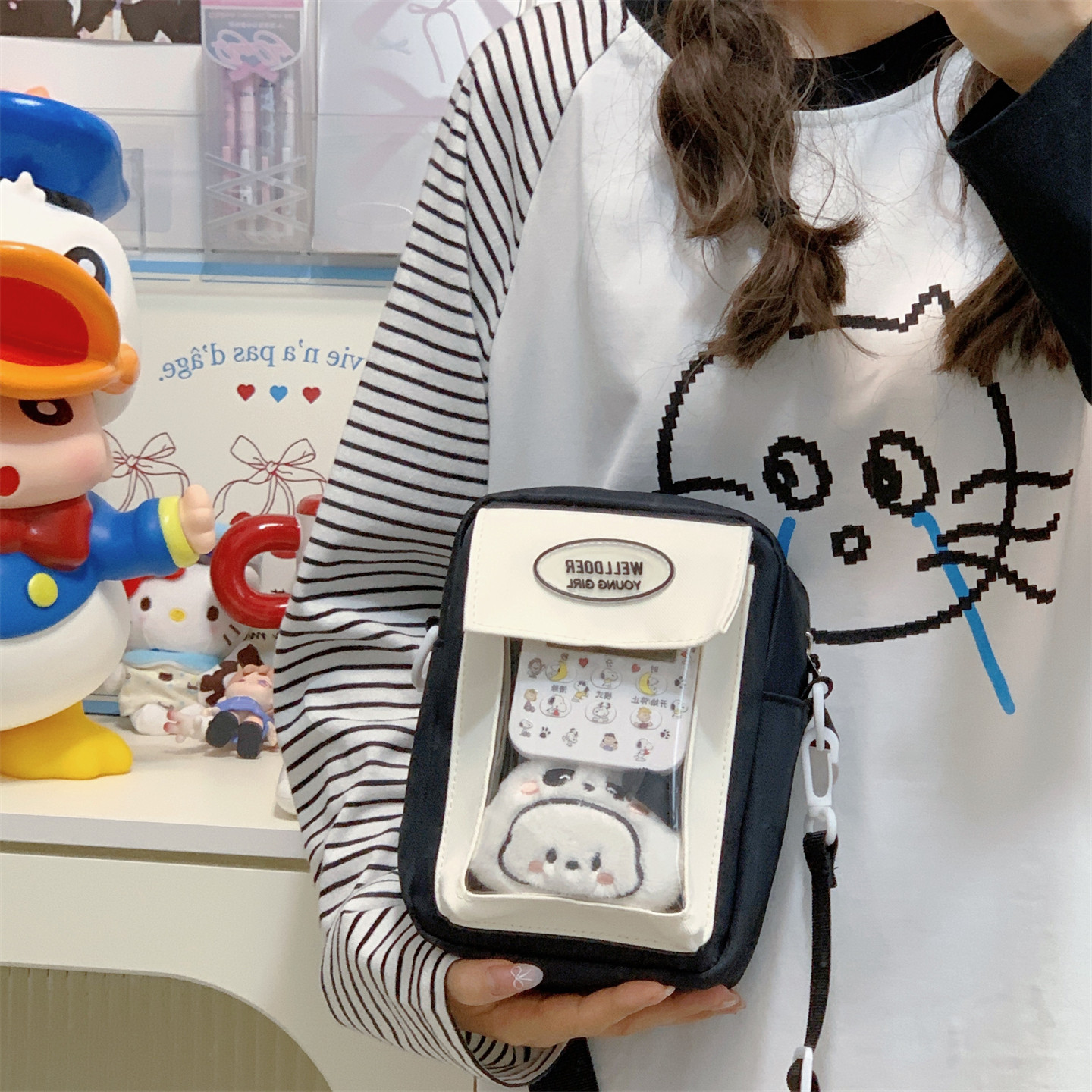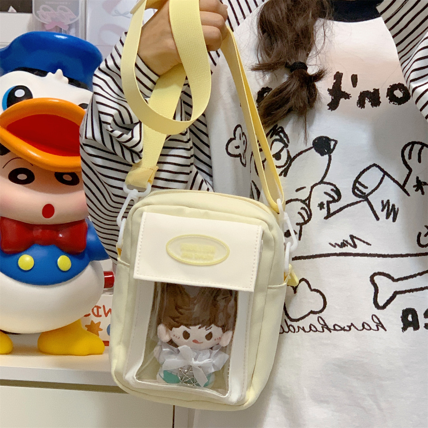 迷你痛包小食量裝10cm娃包透明層隔層的二次元手機小挎包日常斜背