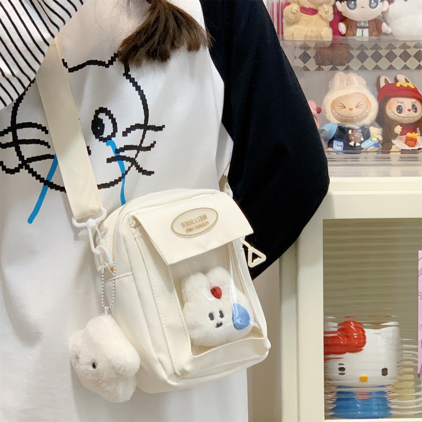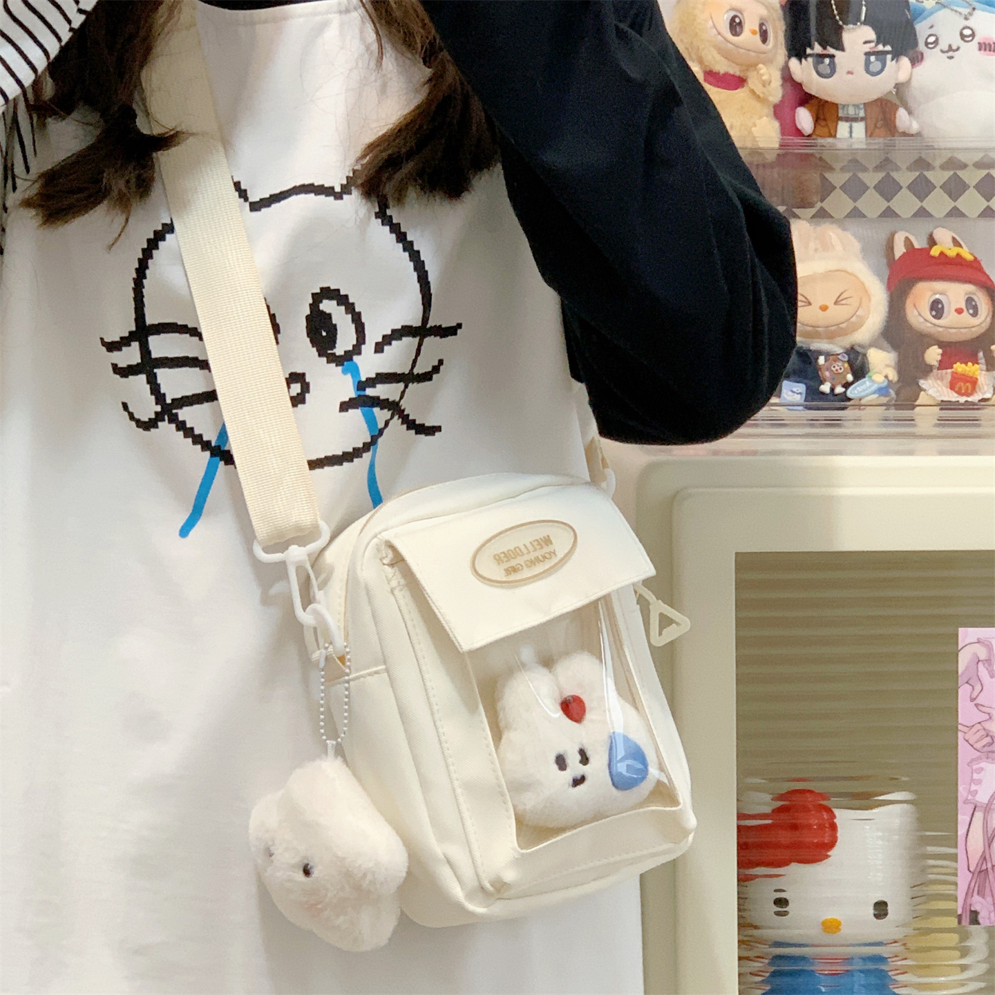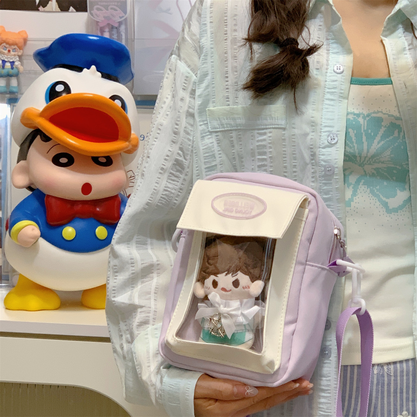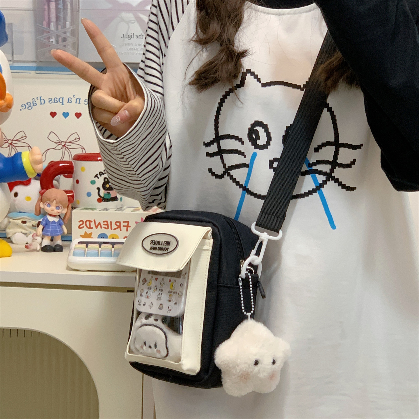 迷你痛包小食量裝10cm娃包透明層隔層的二次元手機小挎包日常斜背