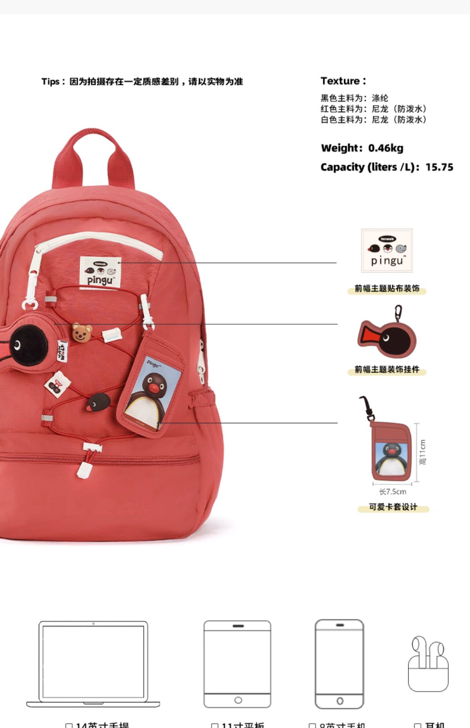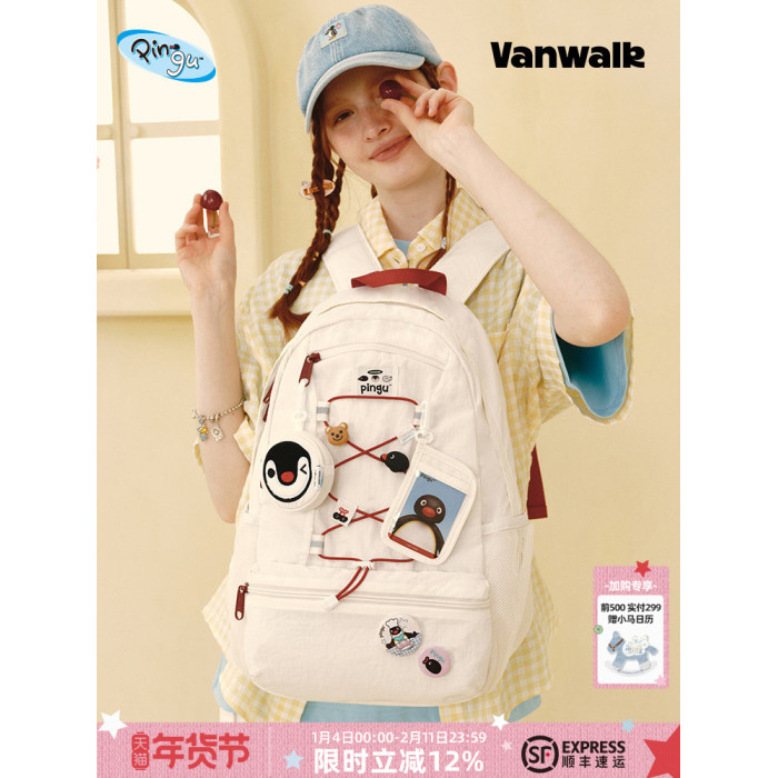 VANWALK Pingu企鵞新款大容量書包高中女生高顔值小衆學生雙肩包