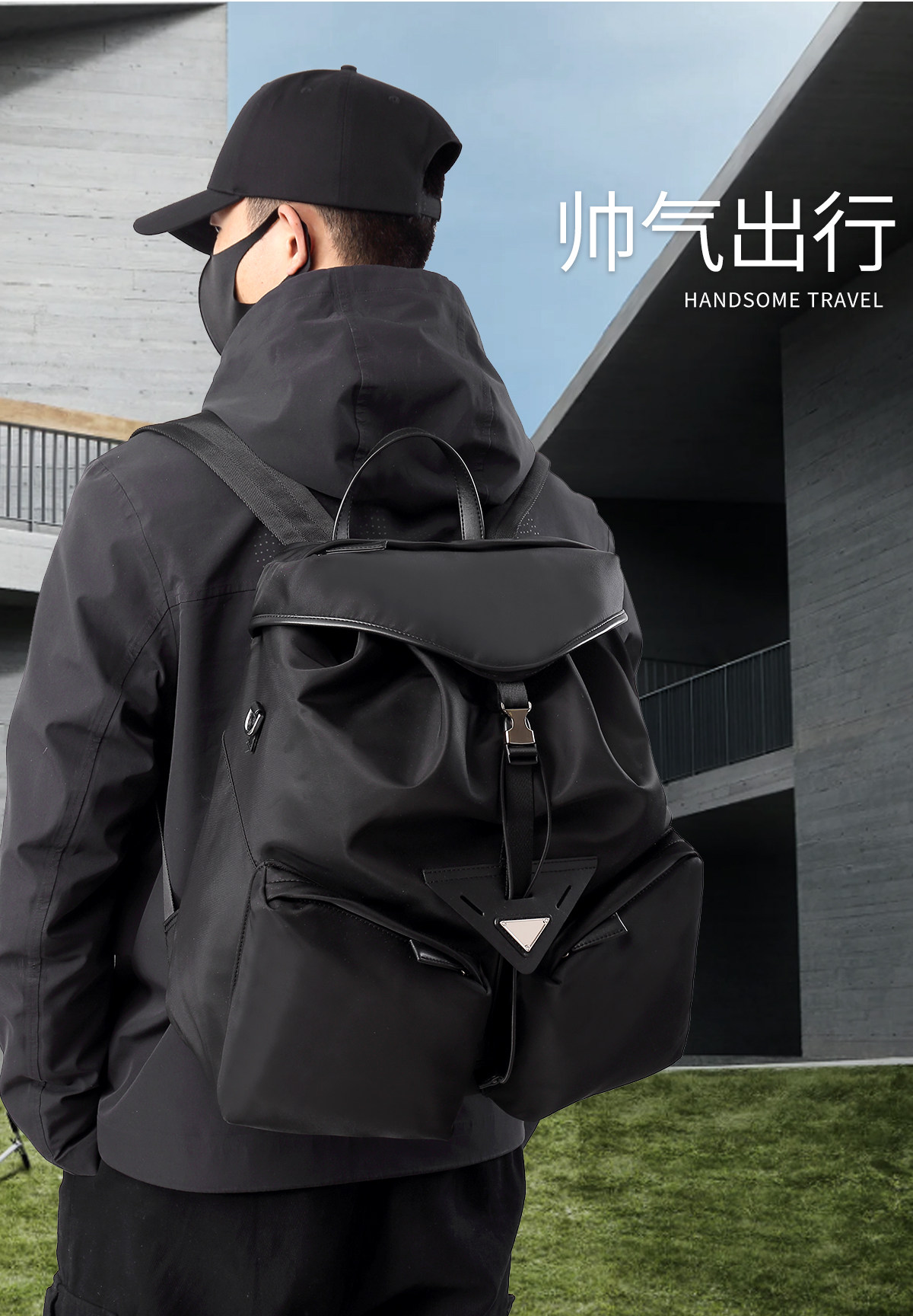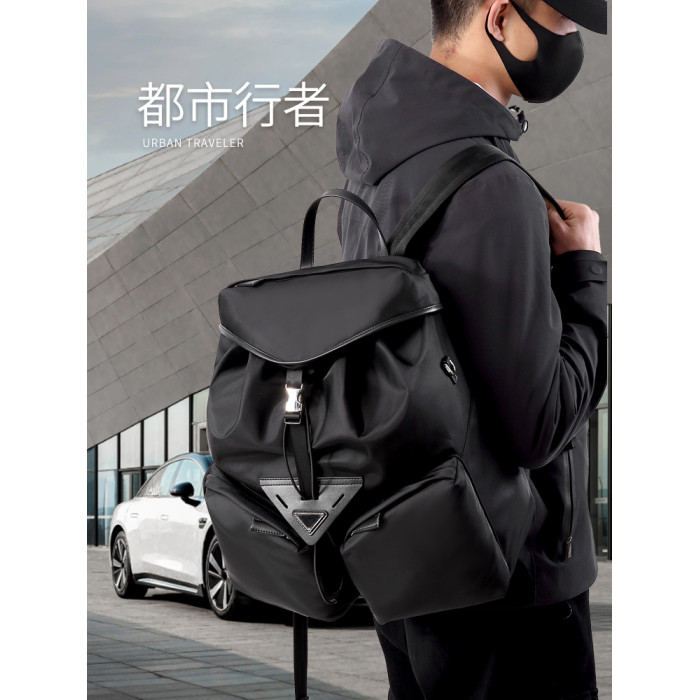 雙肩包男士後後背包歐美時尚高級感大容量商務旅行休閒輕便通勤電腦包