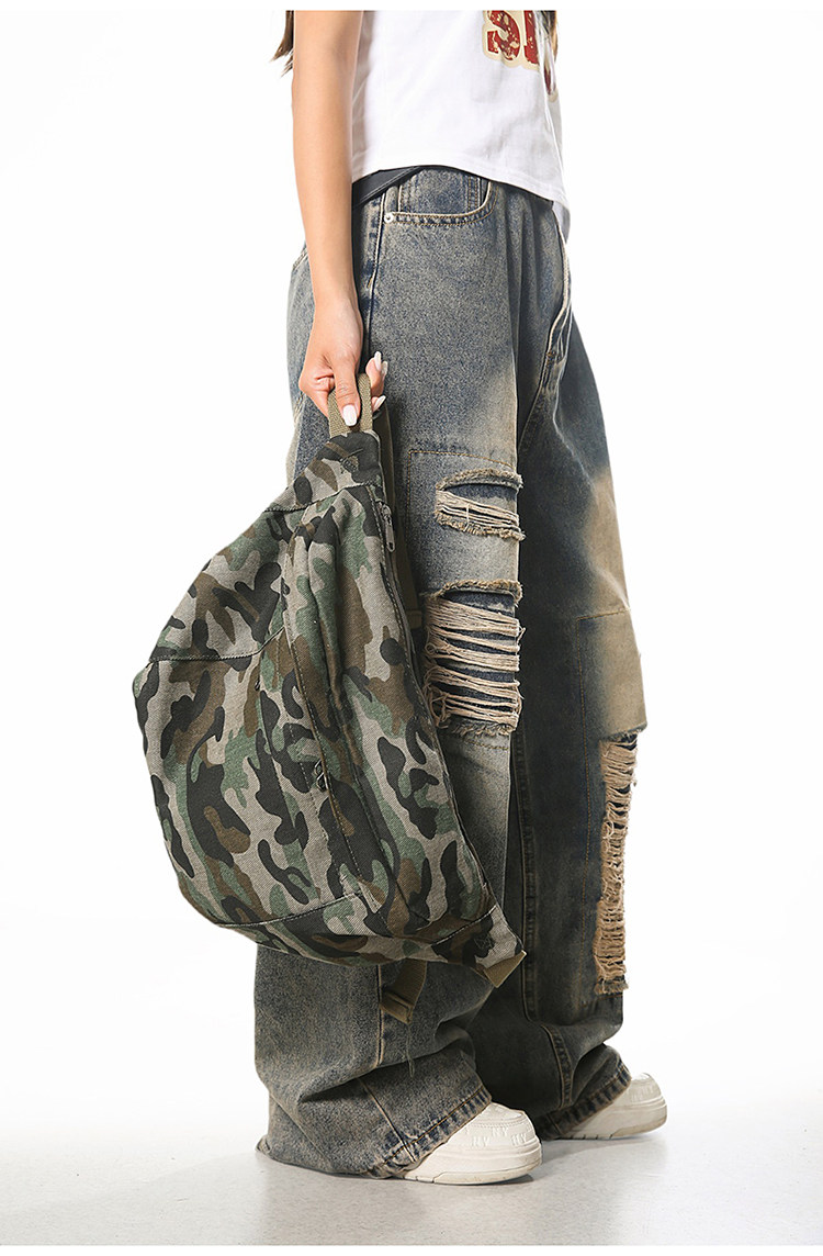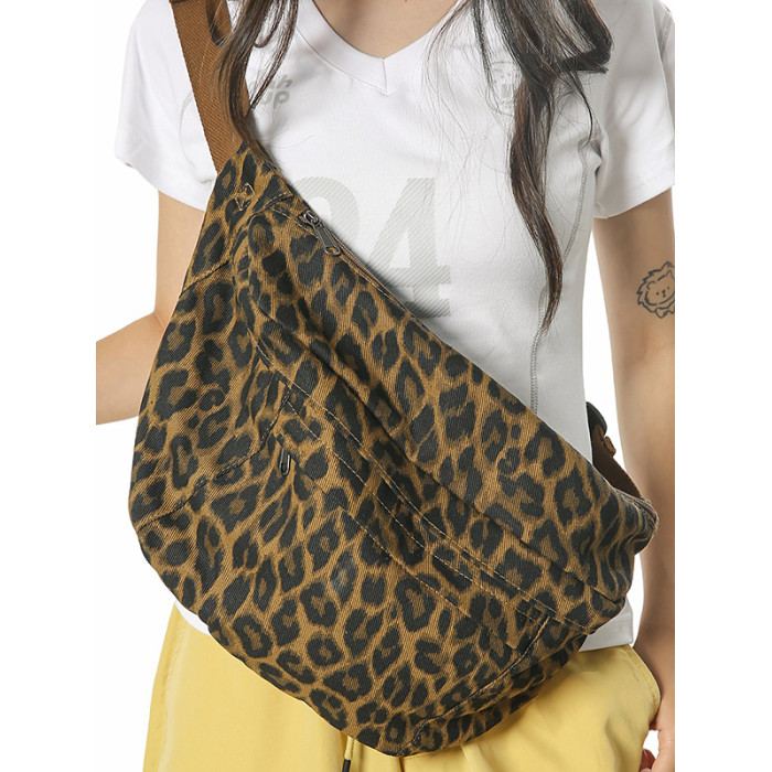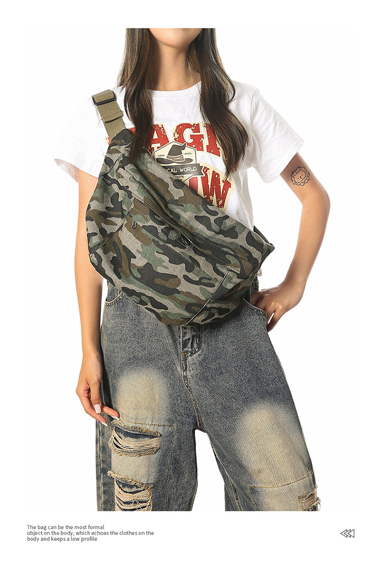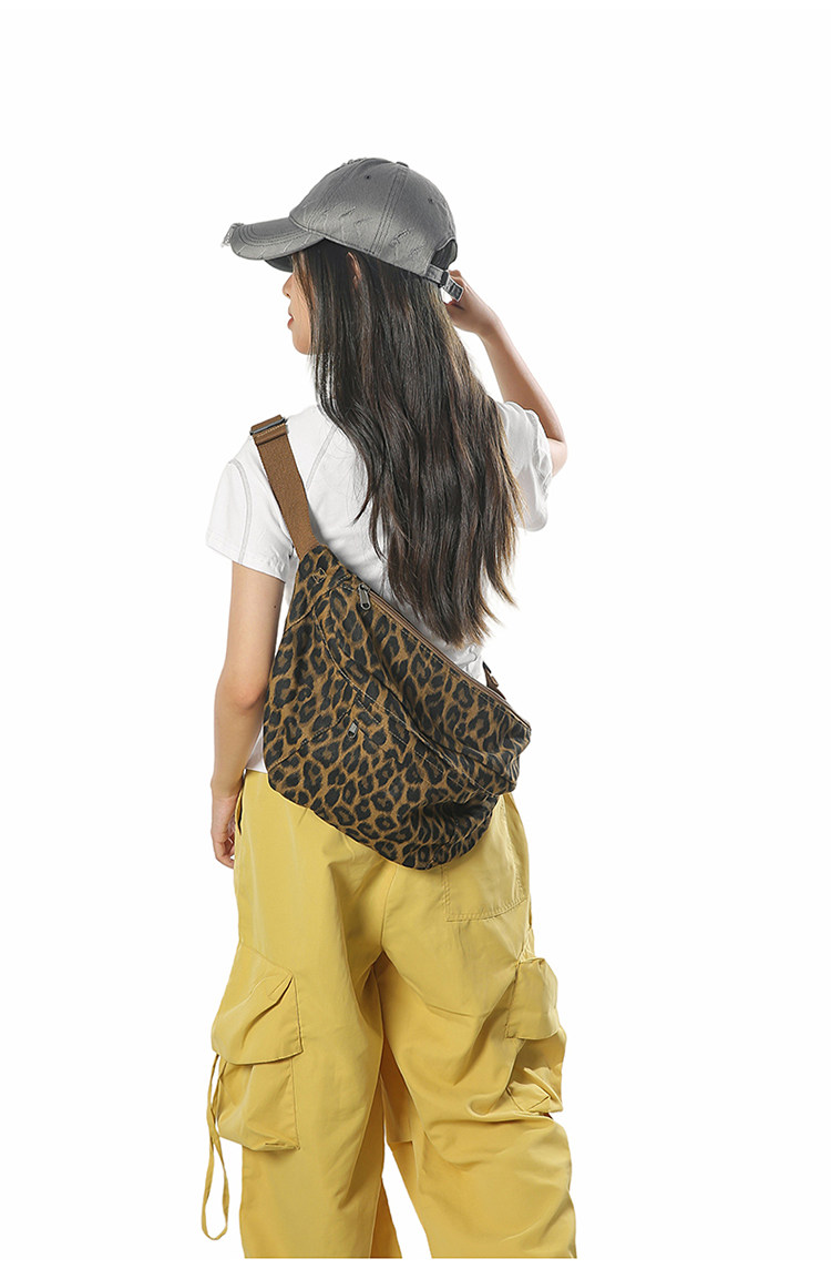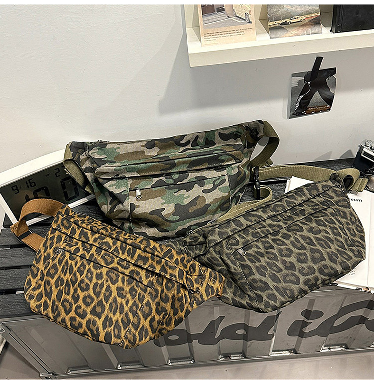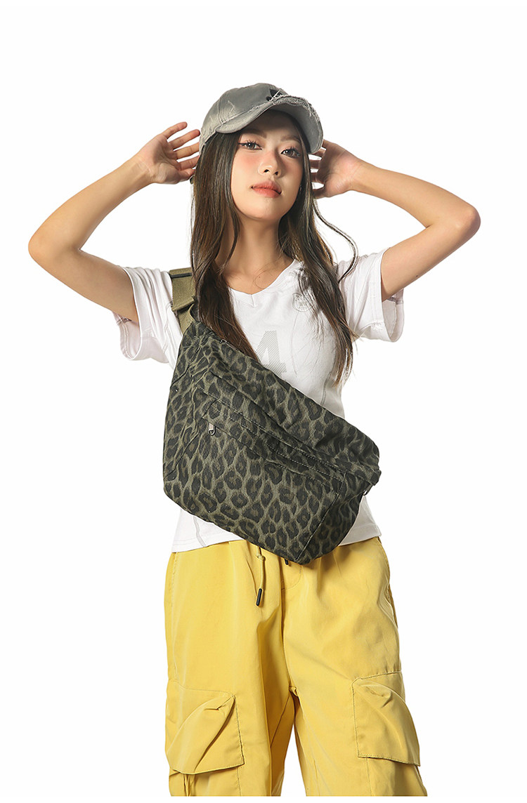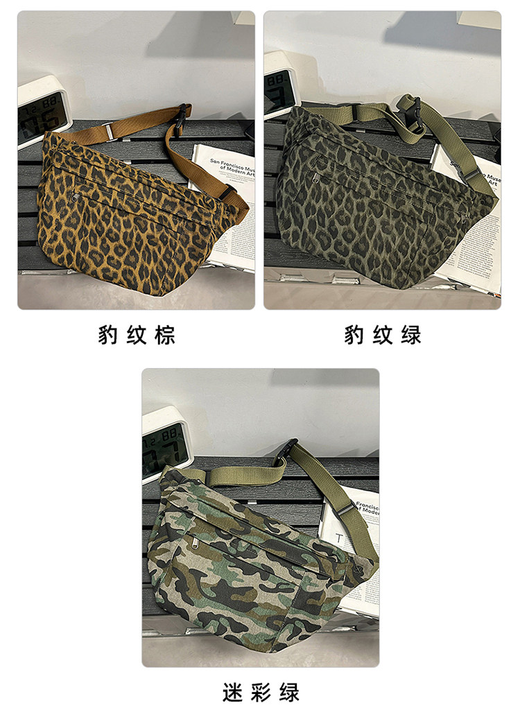 迷彩斜後後背包男潮牌大容量豹紋耐磨戶外旅行後後背包單肩包大學生胸包女