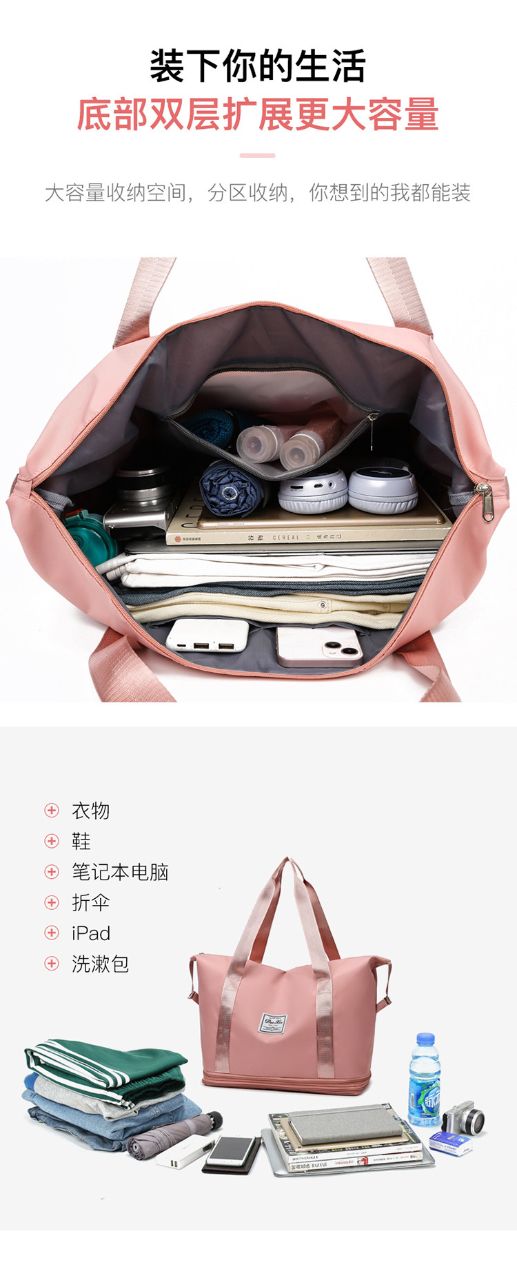 超大容量衣服旅行包可攜式套拉桿行李包短途出差包牛津布待産健身包