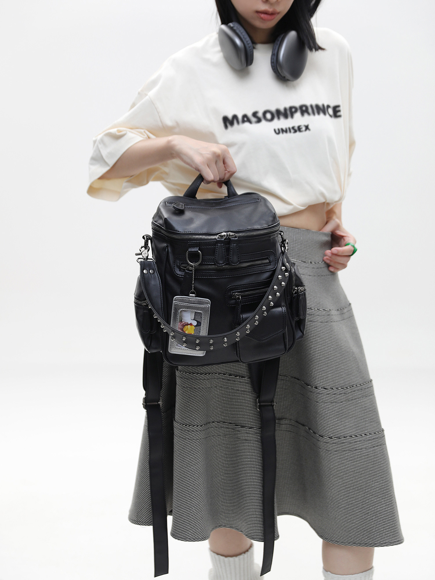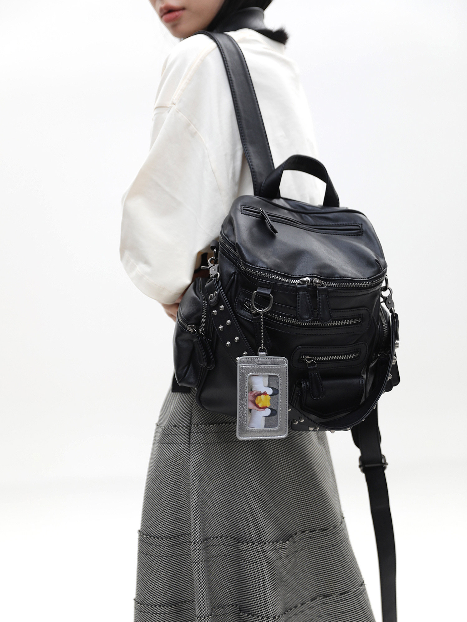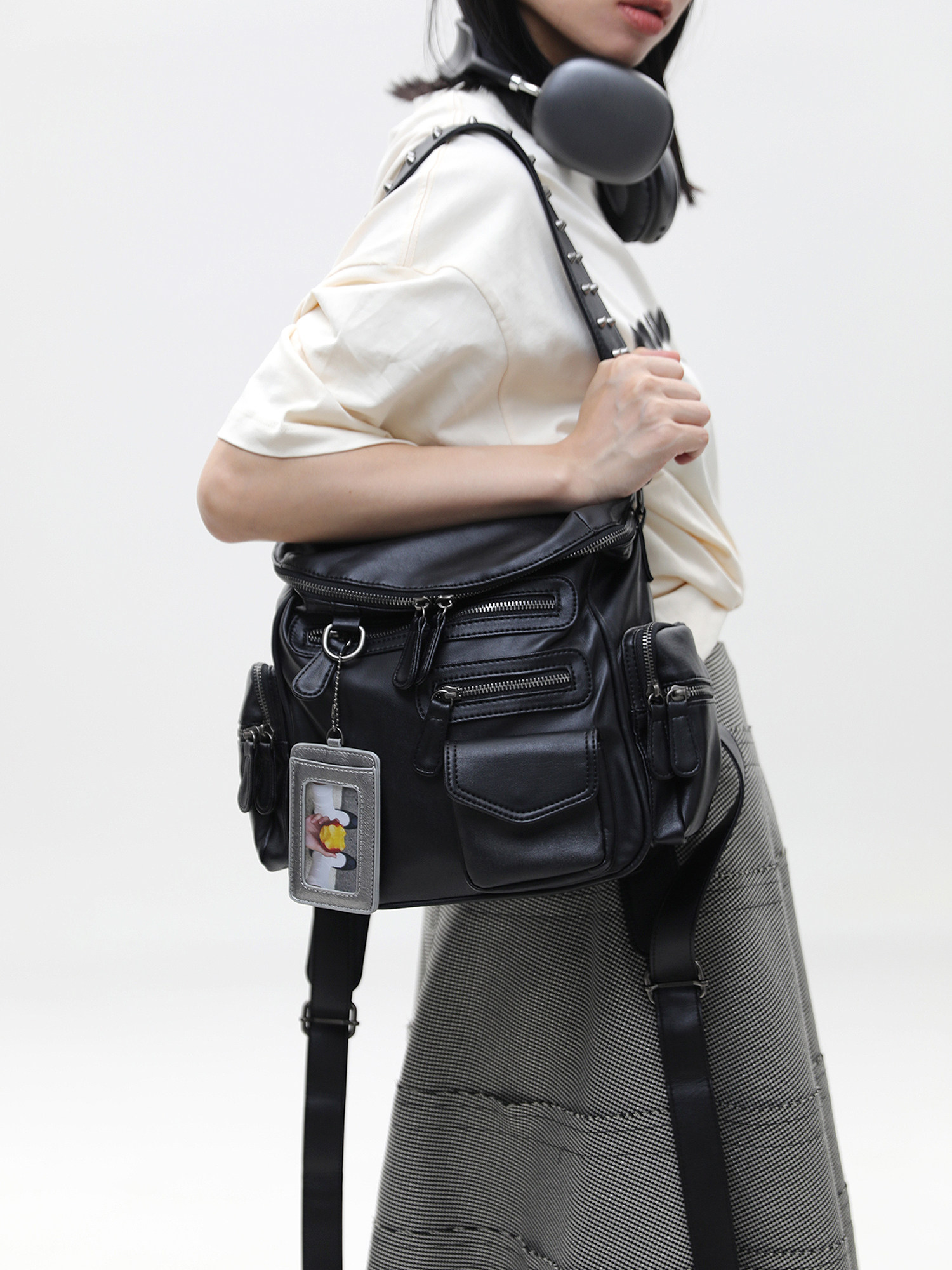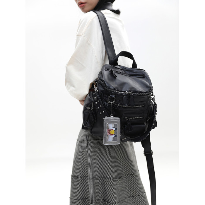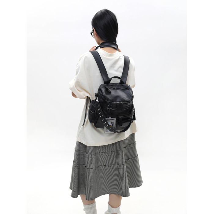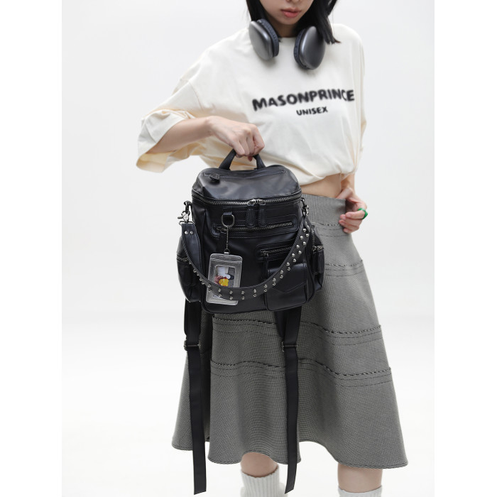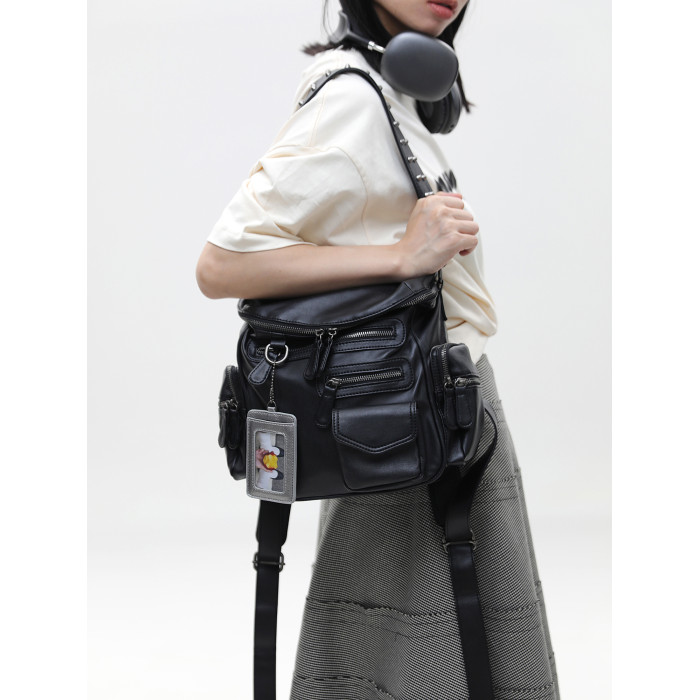 簡著 /原創 小號裡斯林肯高級黑多口袋辣妹鉚釘機車Y2K單肩雙肩包