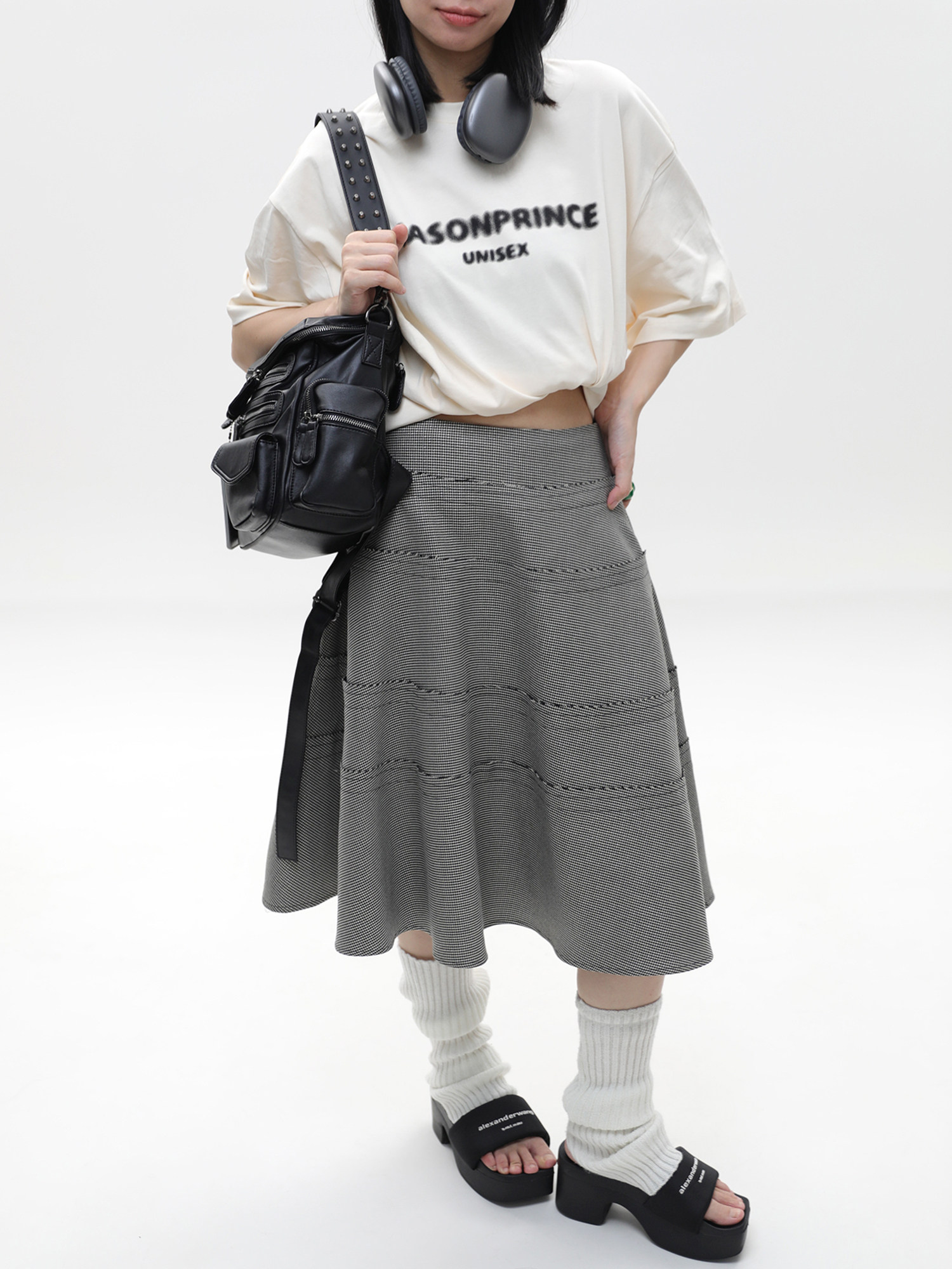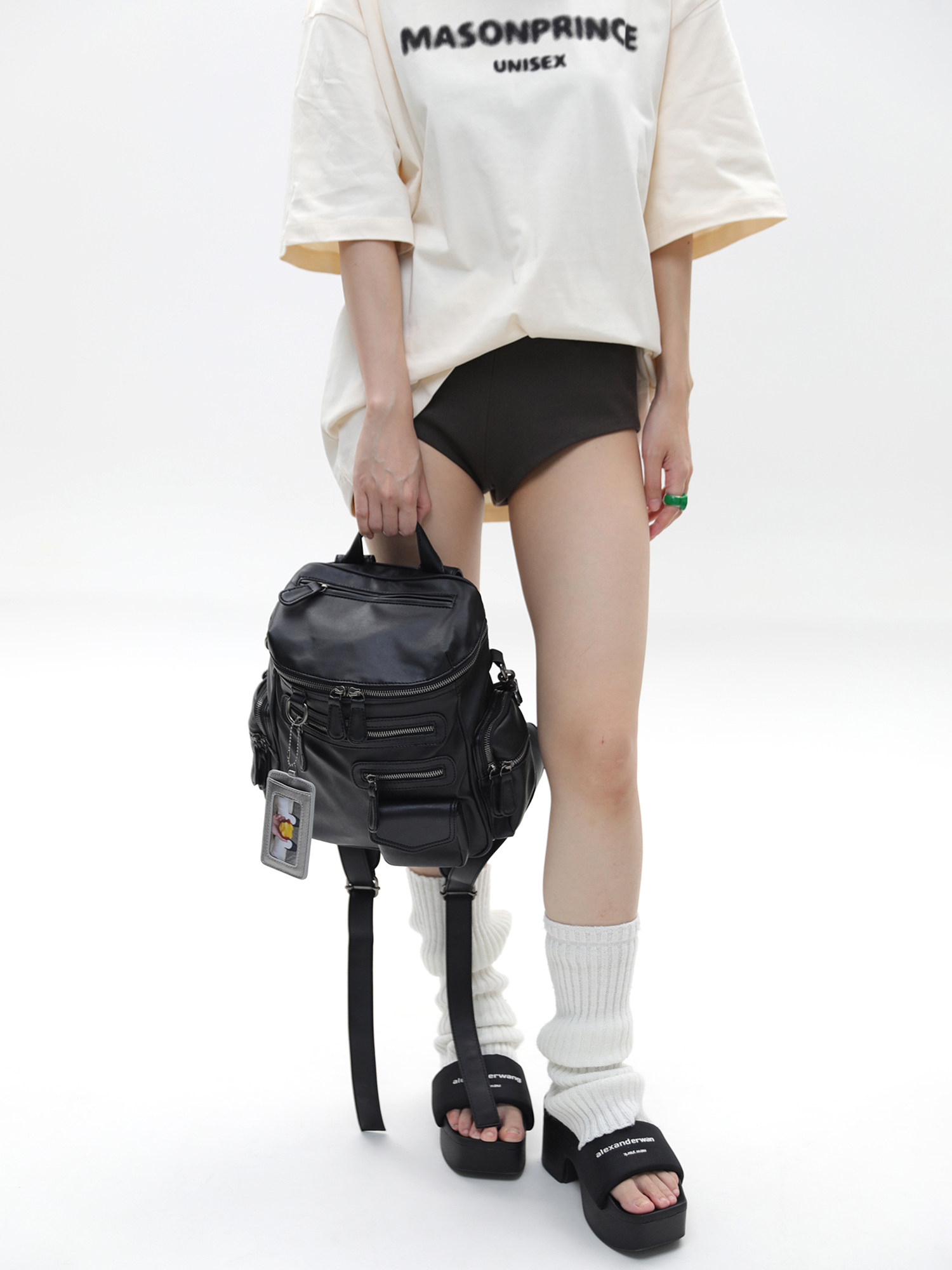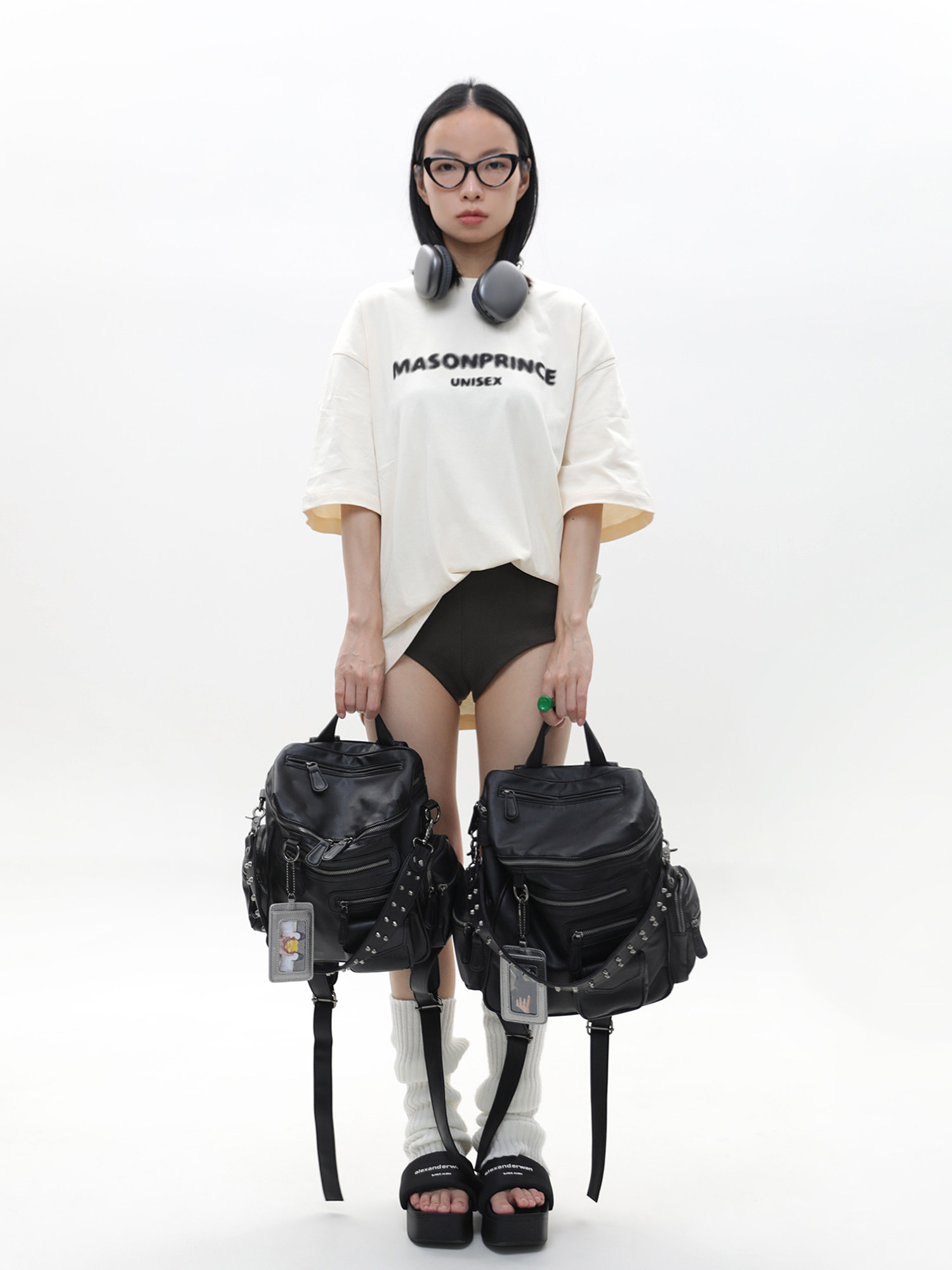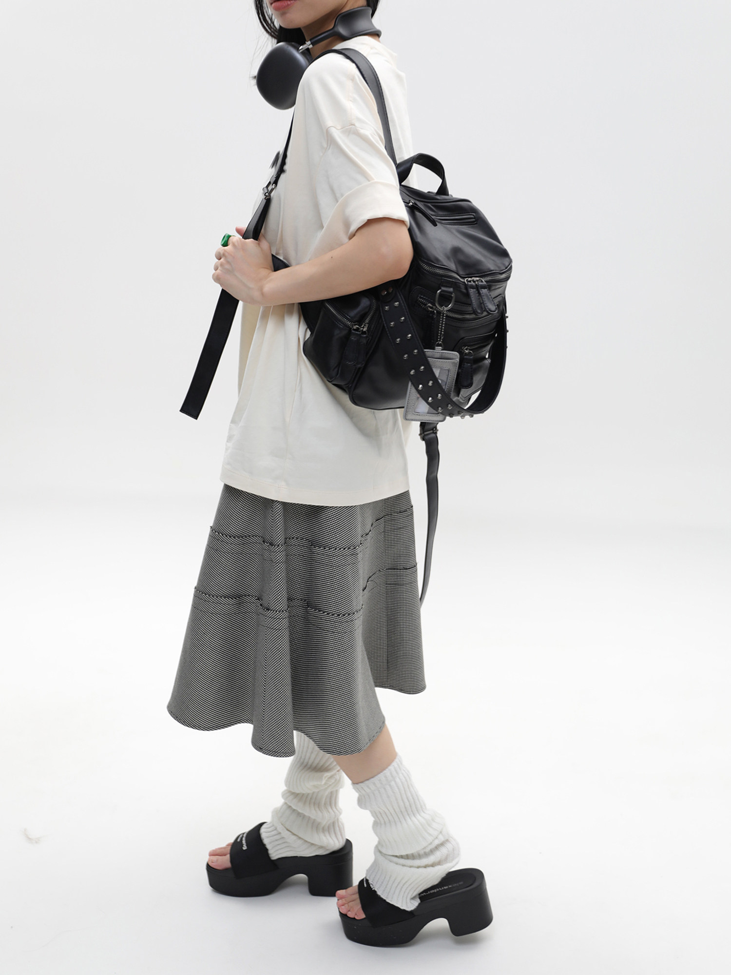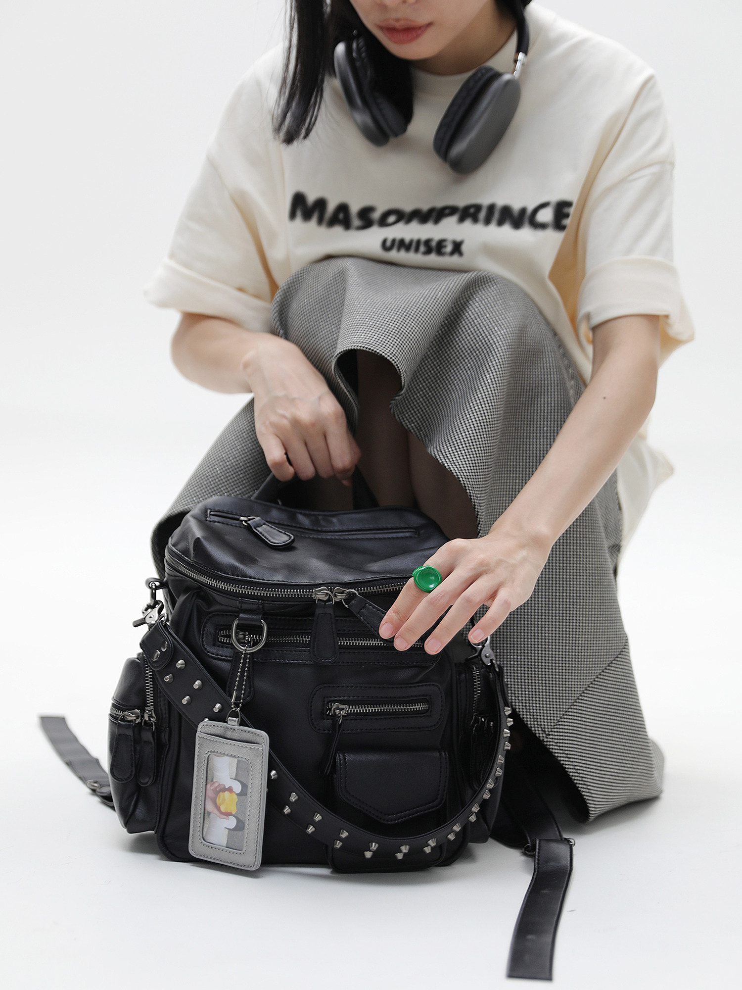 簡著 /原創 小號裡斯林肯高級黑多口袋辣妹鉚釘機車Y2K單肩雙肩包