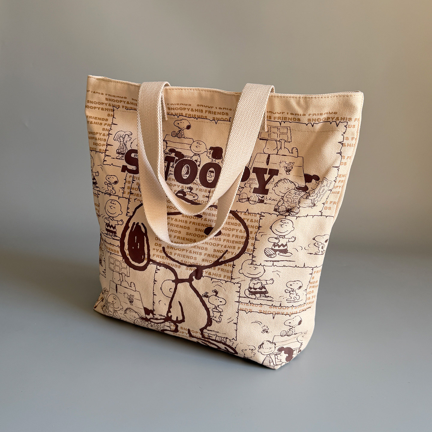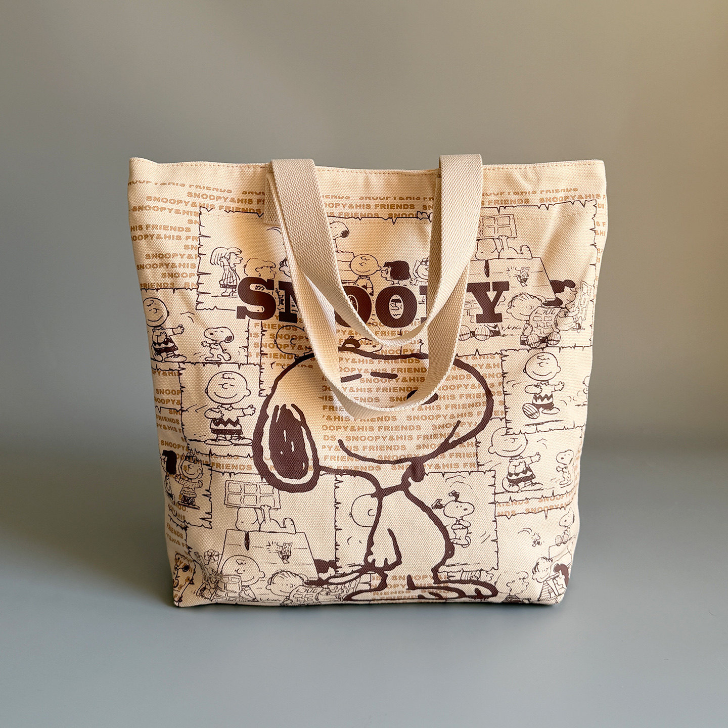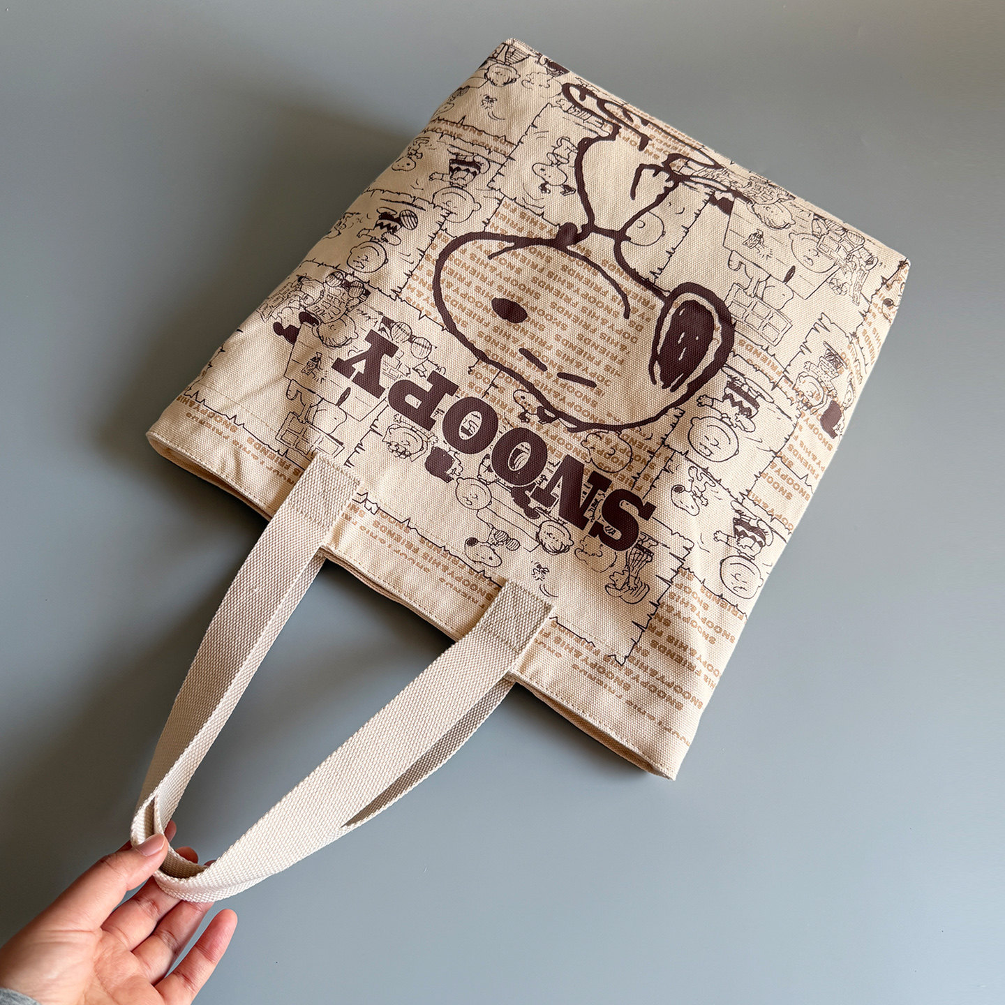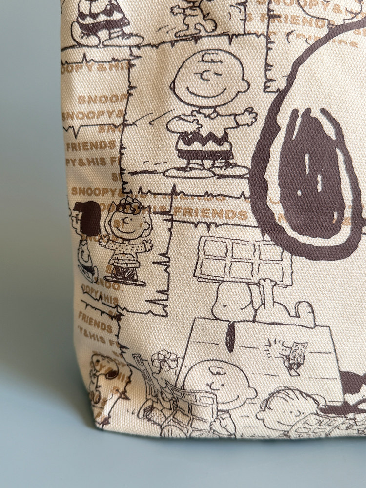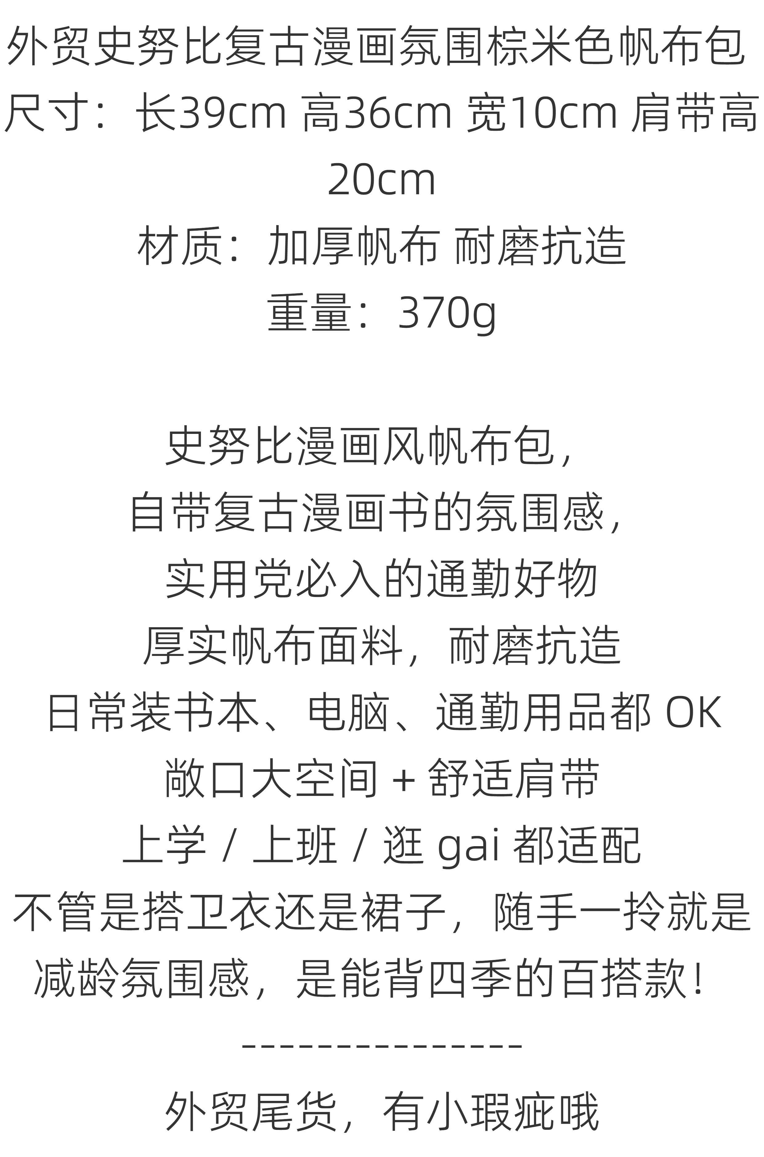 史努比復古漫畫風帆布包 棕米色學生黨課本包 實用通勤電腦包