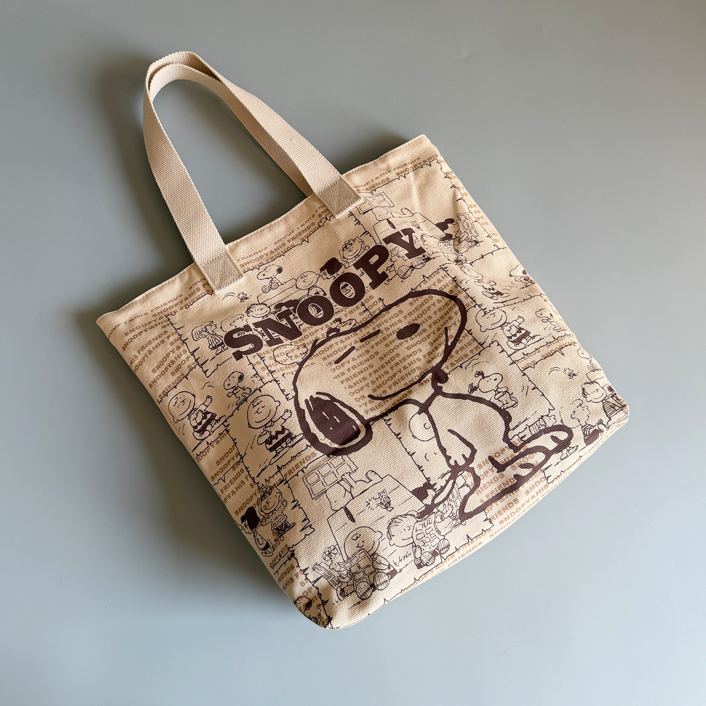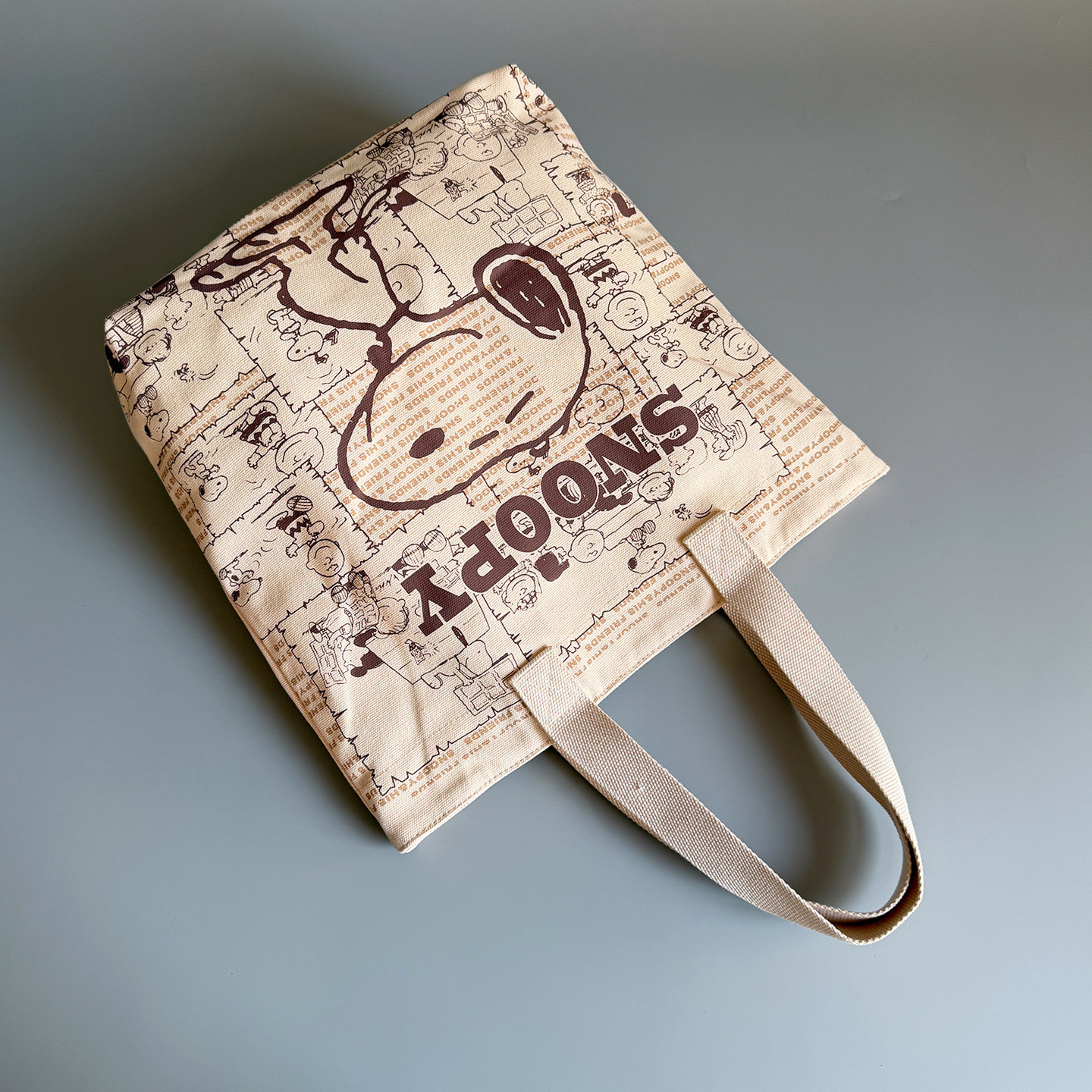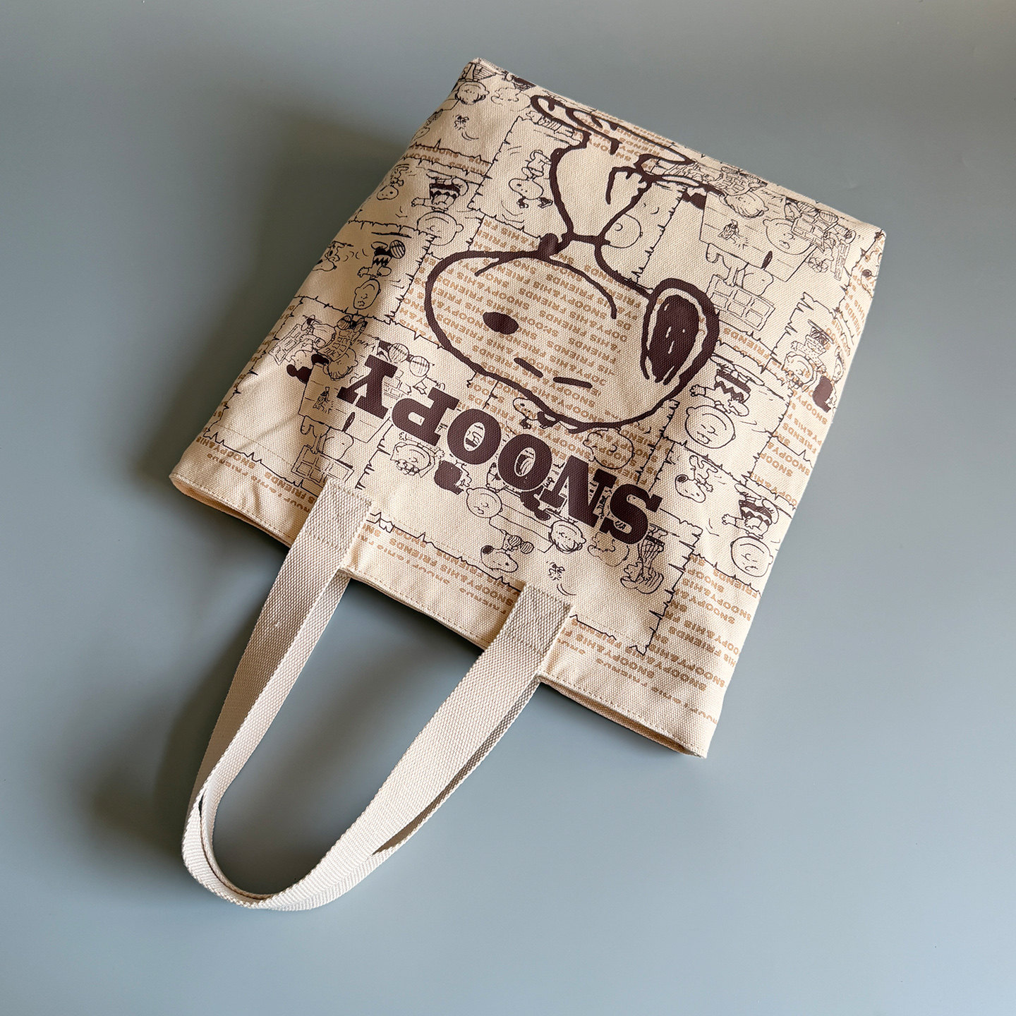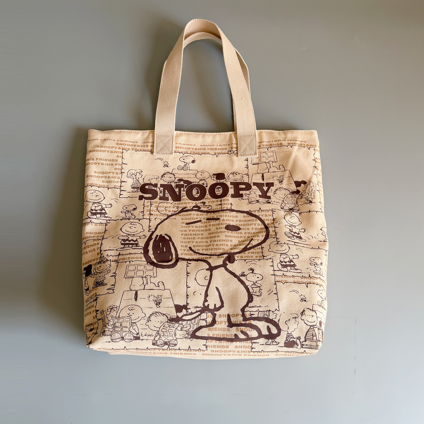 史努比復古漫畫風帆布包 棕米色學生黨課本包 實用通勤電腦包