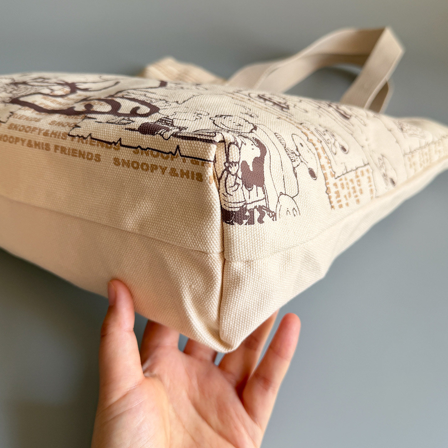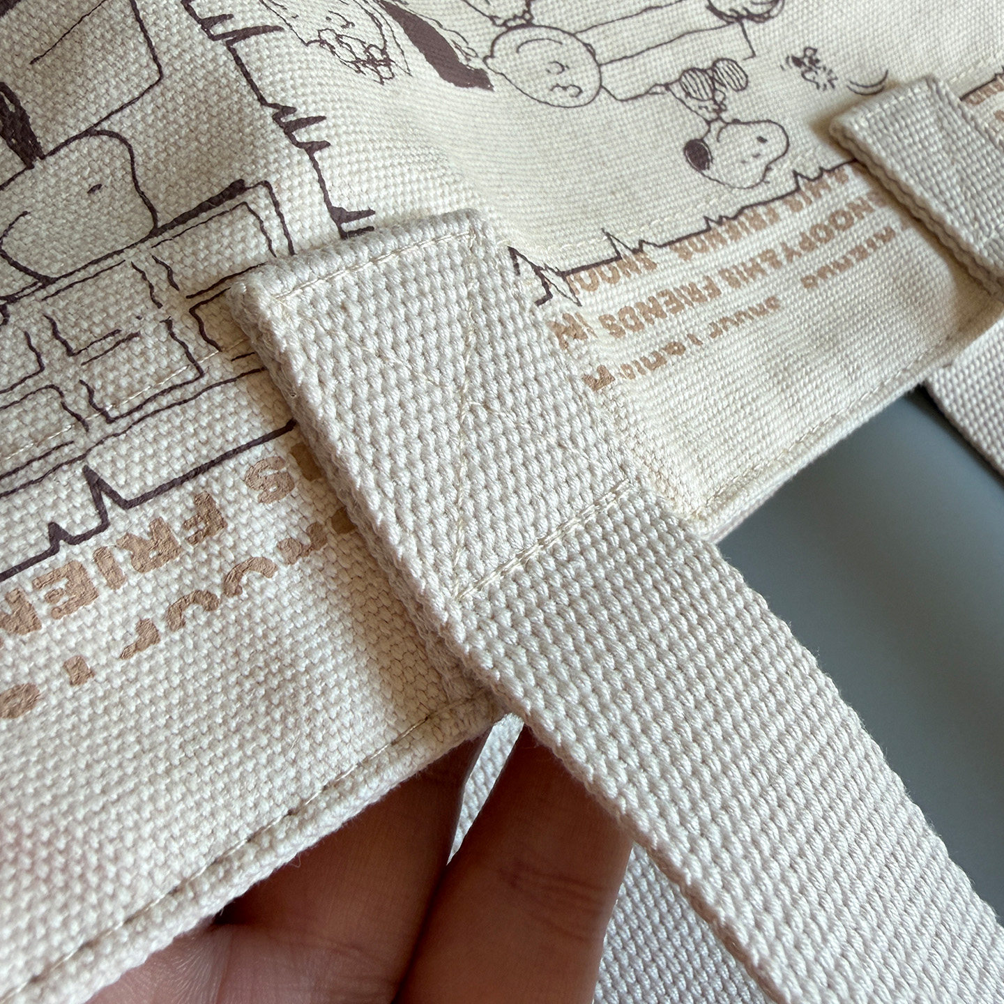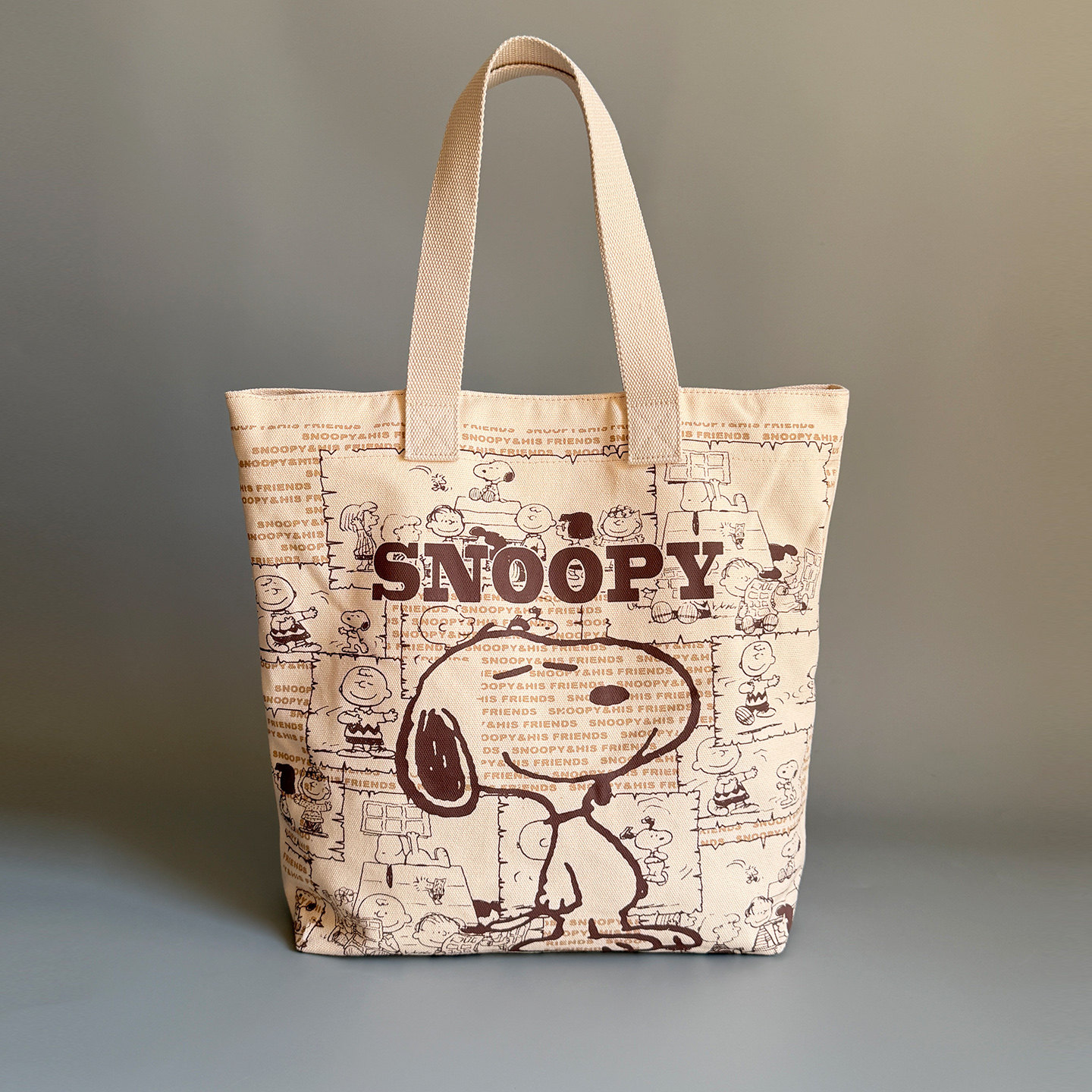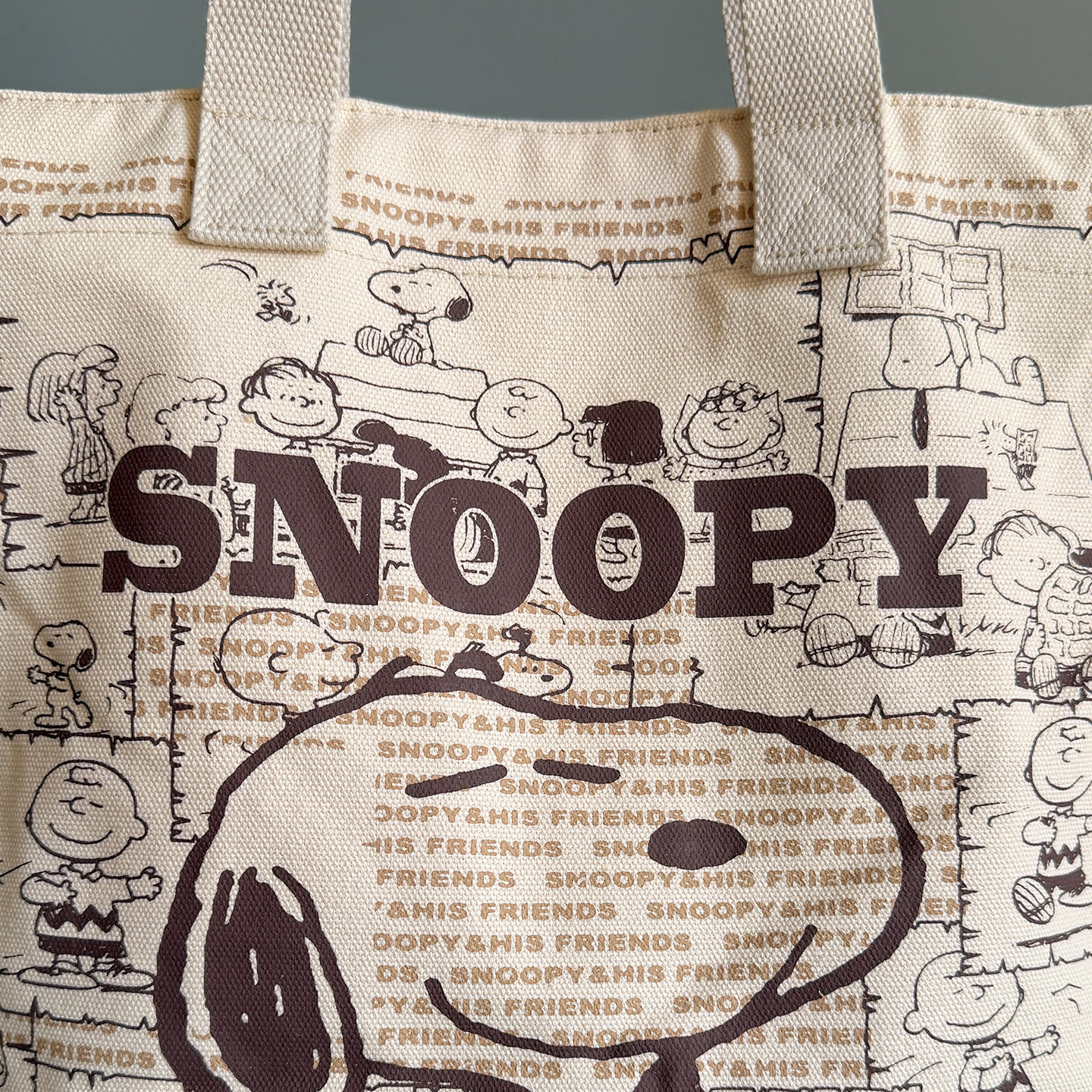 史努比復古漫畫風帆布包 棕米色學生黨課本包 實用通勤電腦包