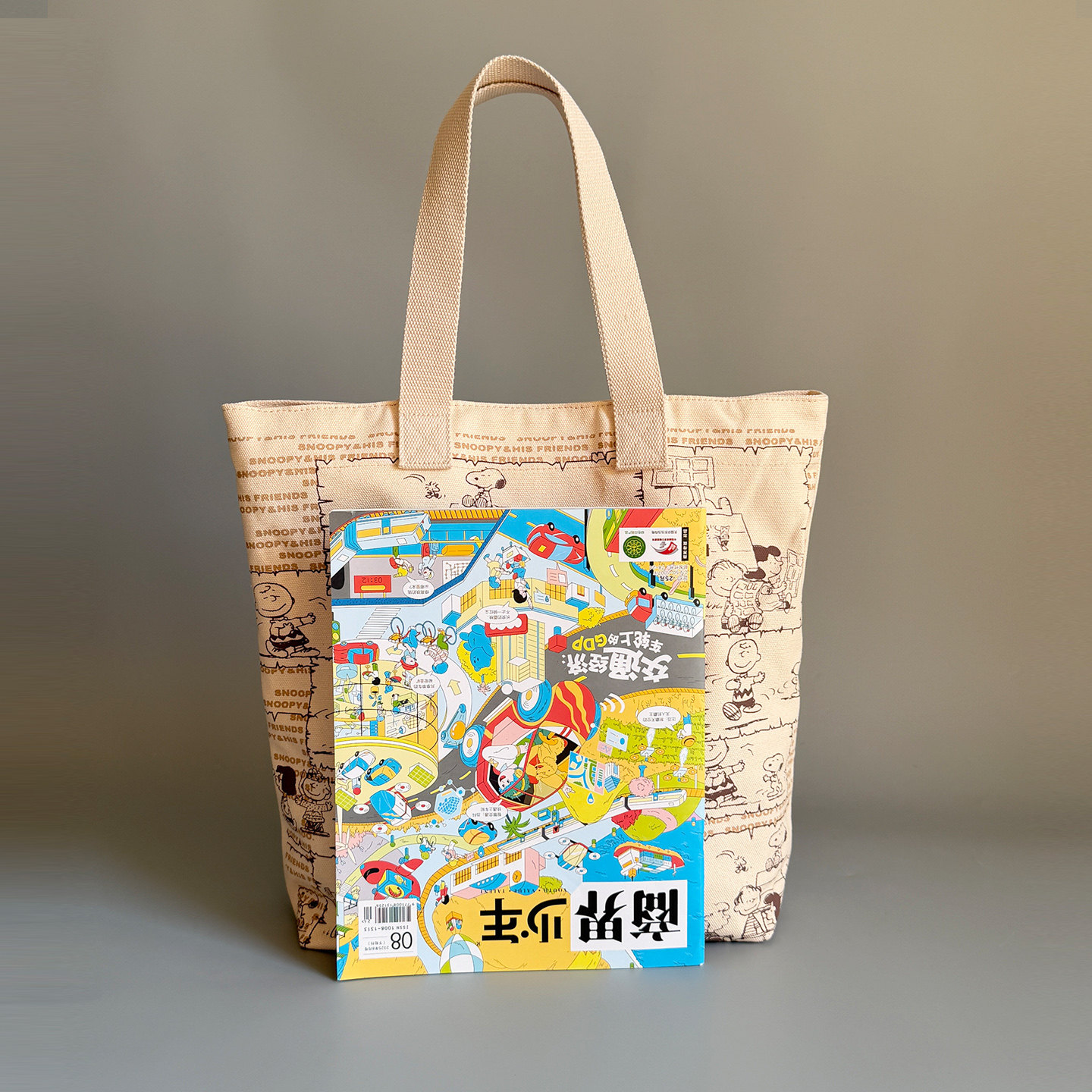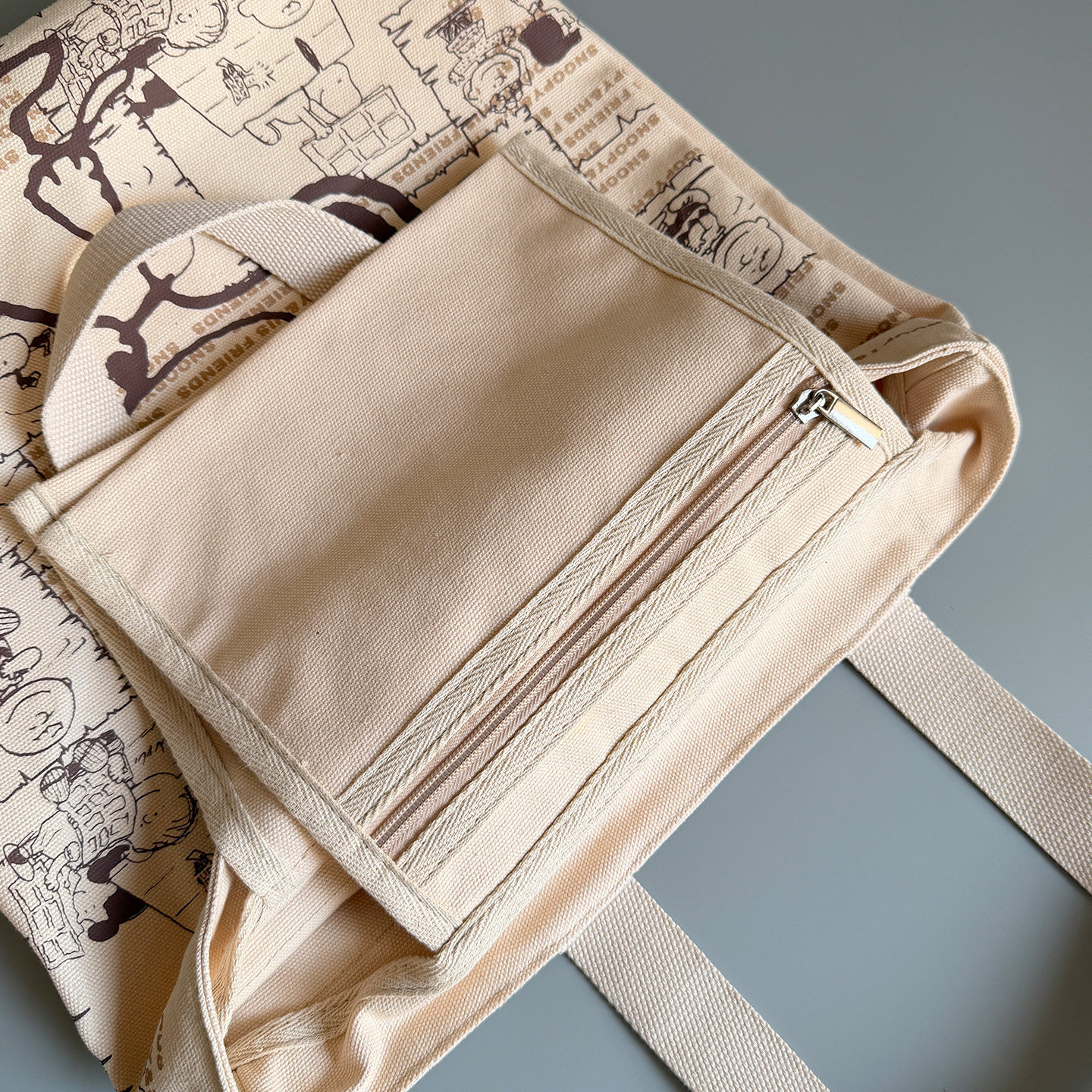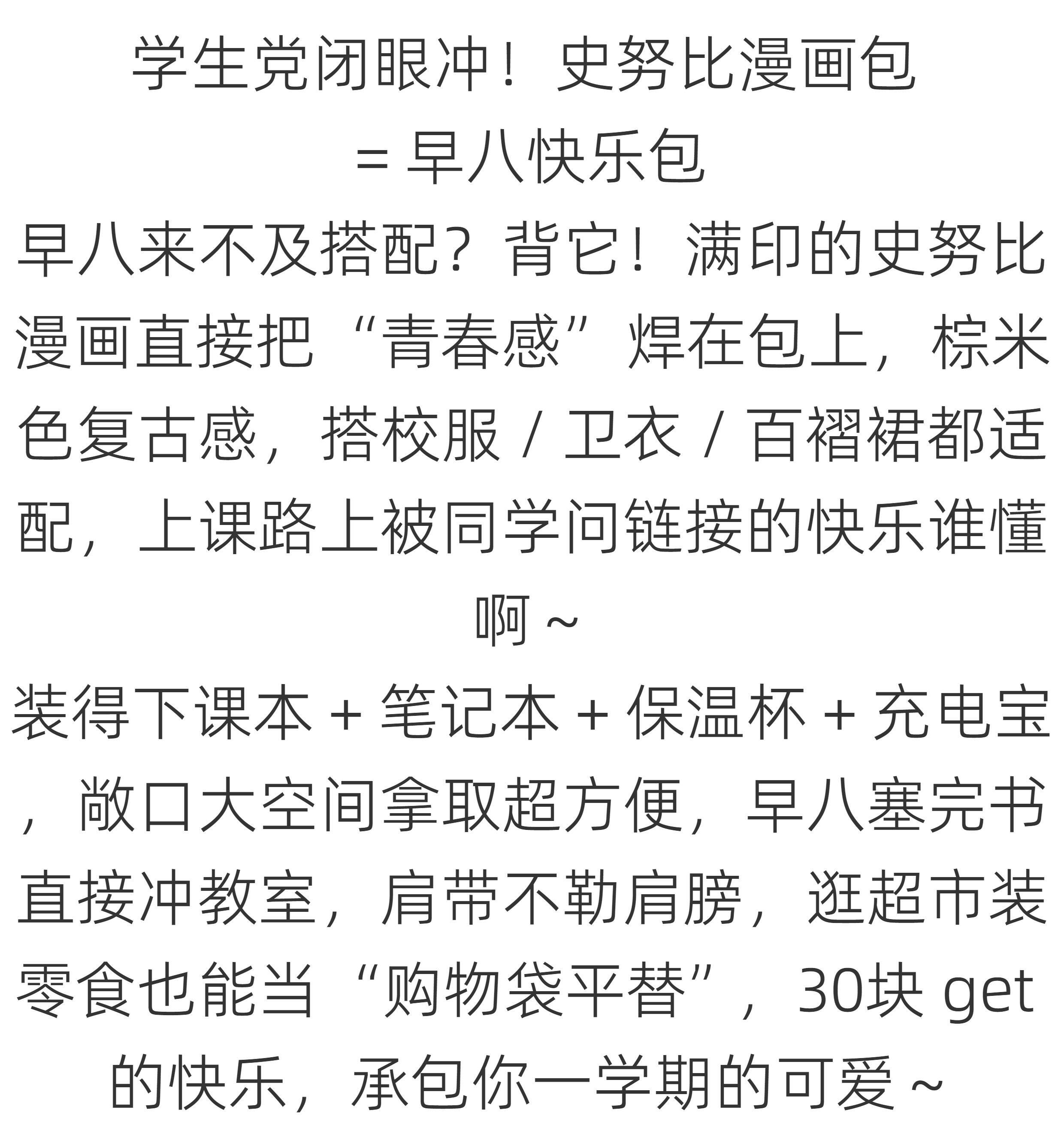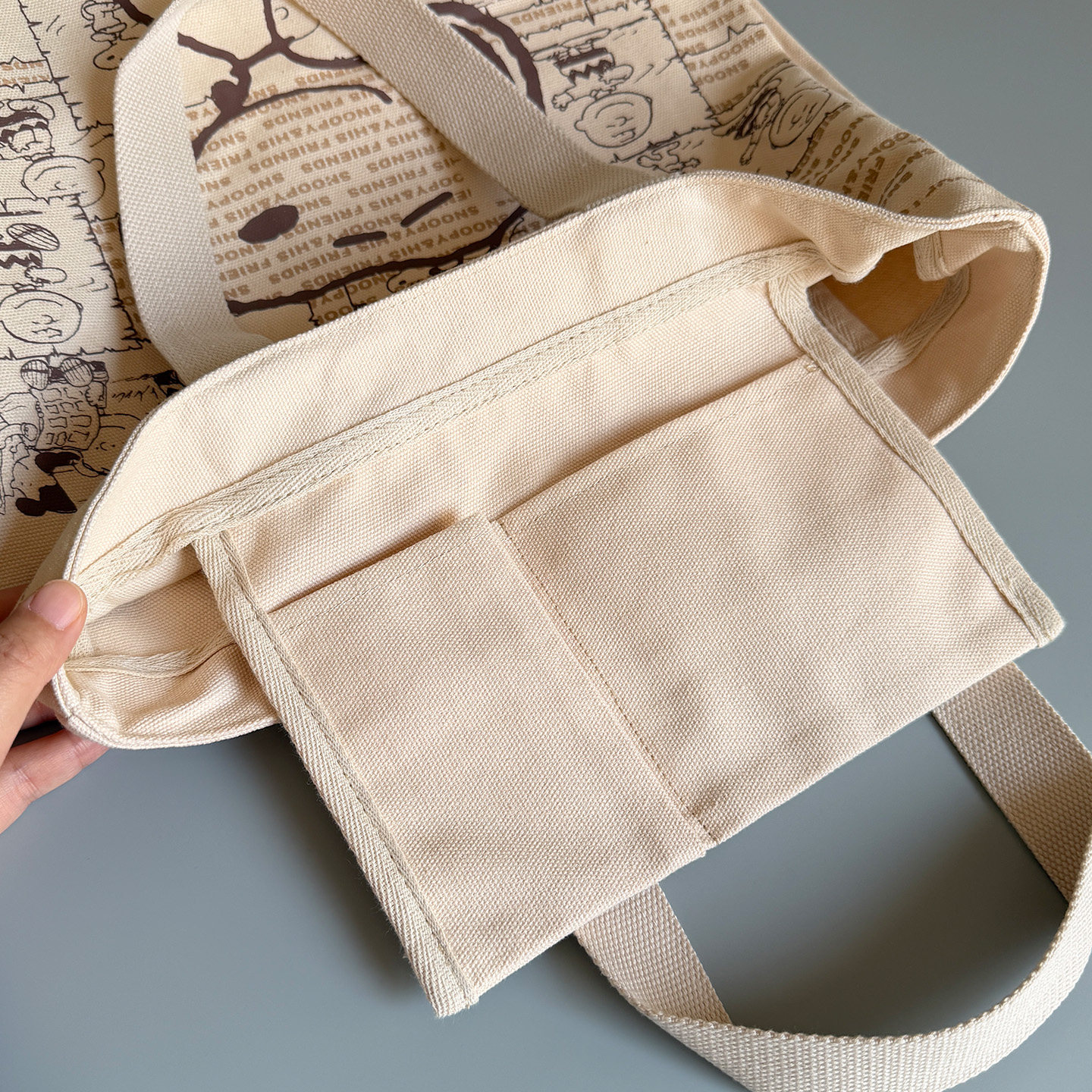 史努比復古漫畫風帆布包 棕米色學生黨課本包 實用通勤電腦包