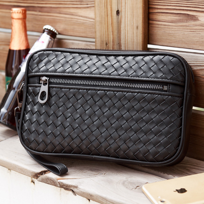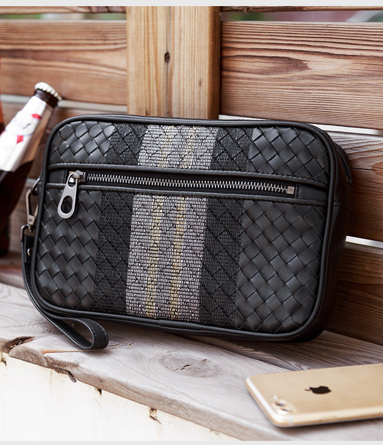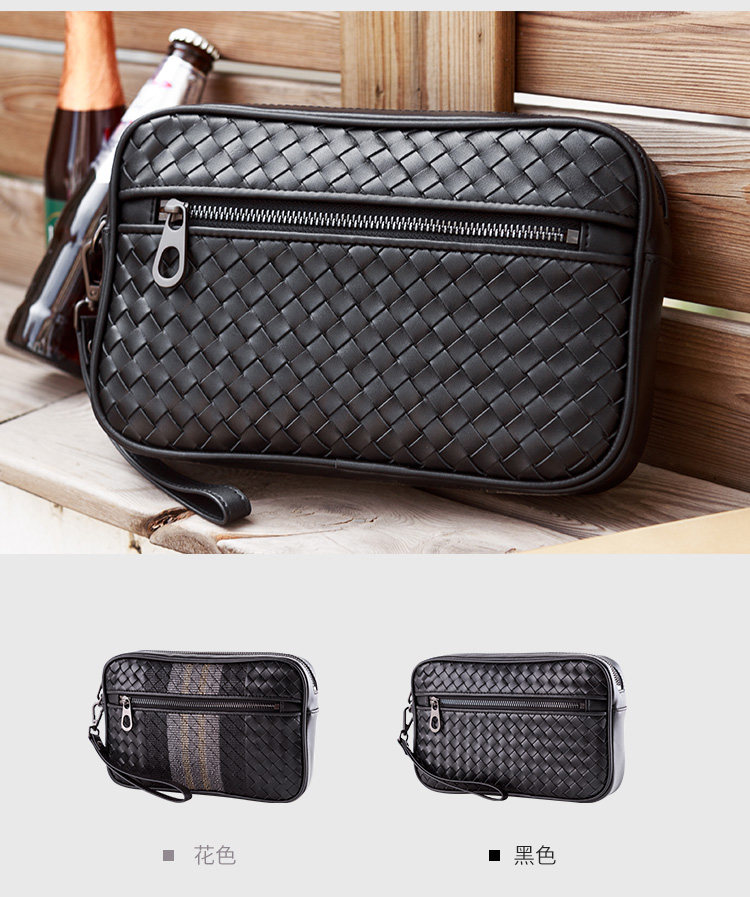 手包男真皮男士手拿包編織男包2021新款頭層牛皮軟青年休閒手抓包