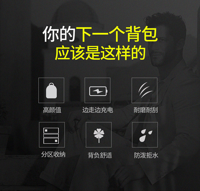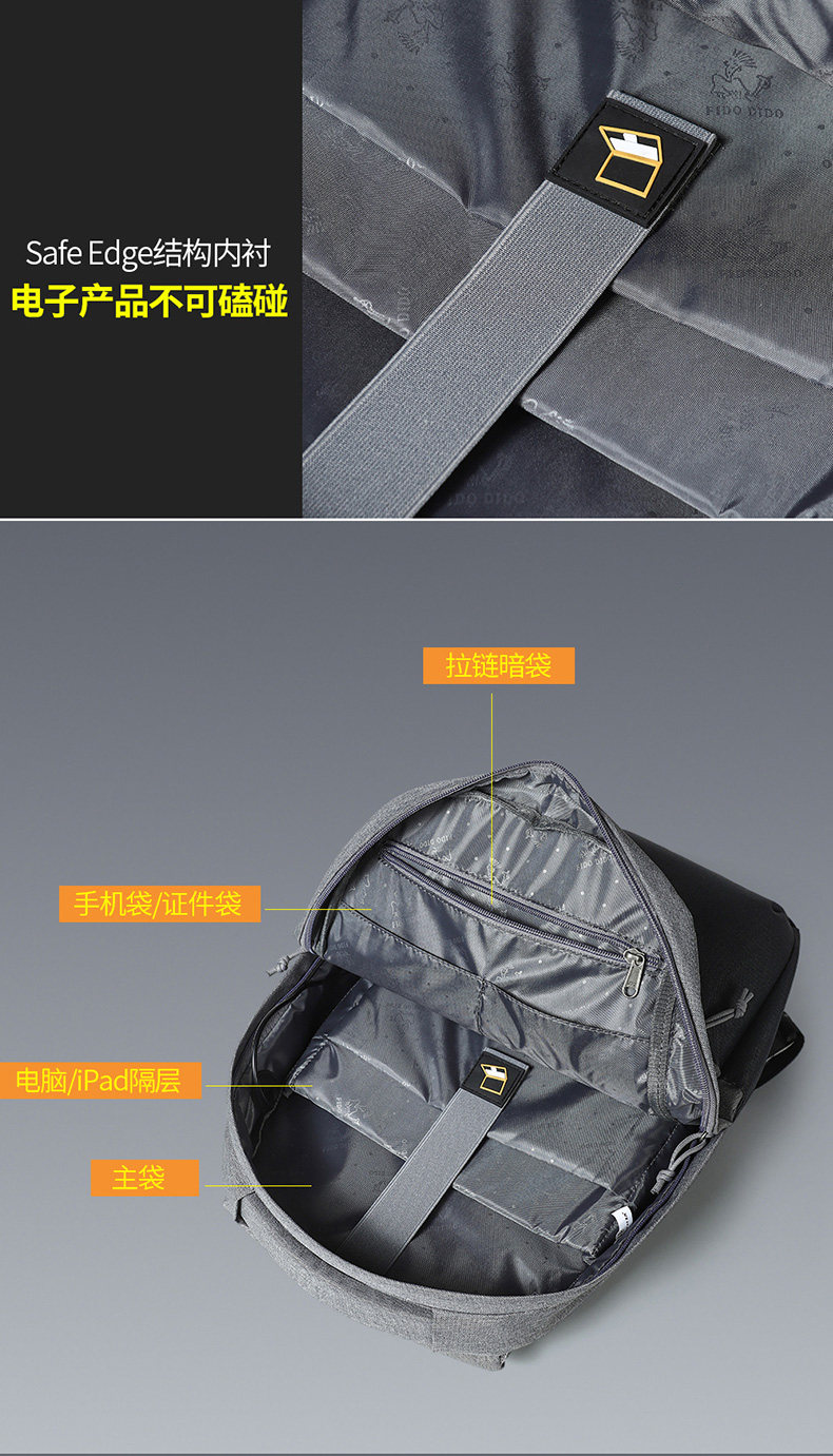 菲都狄都雙肩包男士商務電腦後後背包14寸出差旅行包多功能戶外運動包
