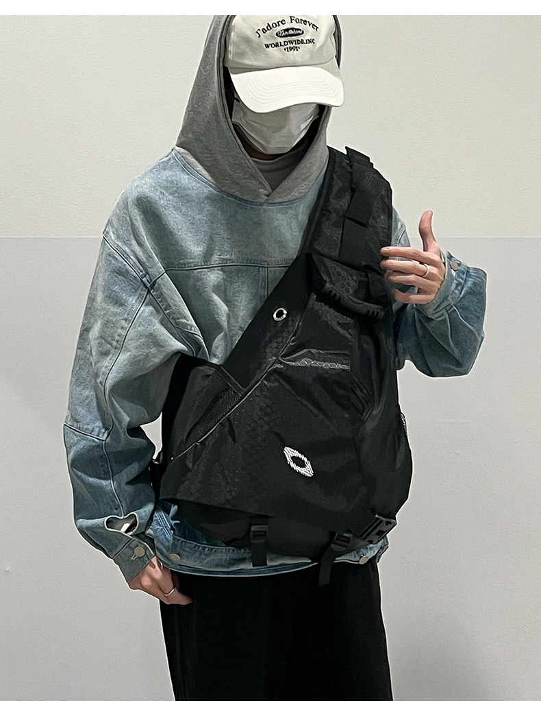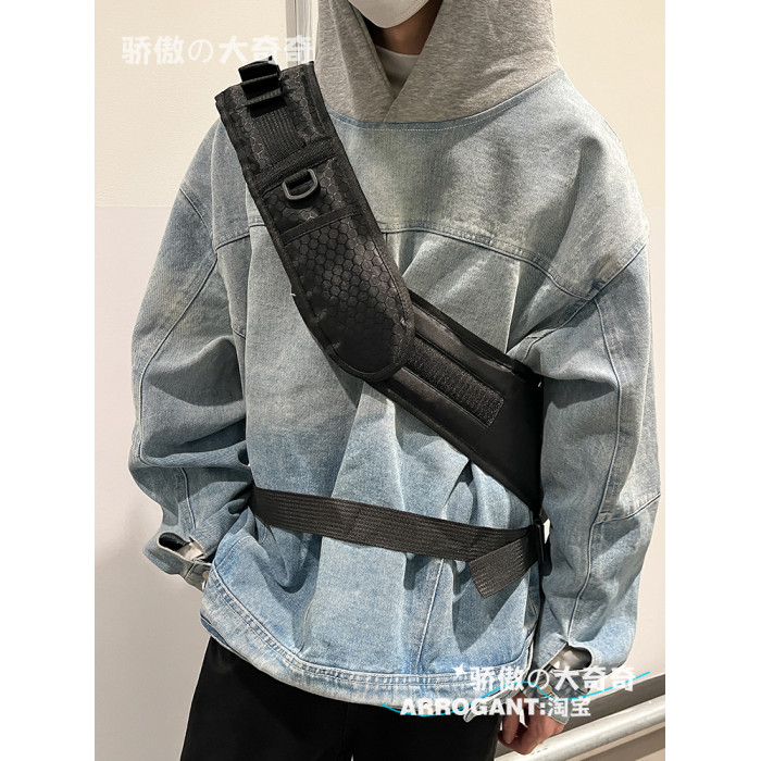 潮酷運動胸包斜後後背包大容量街頭男女學生戶外單肩後後背包騎行機車大包