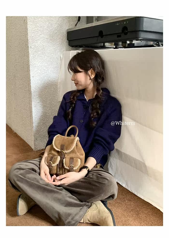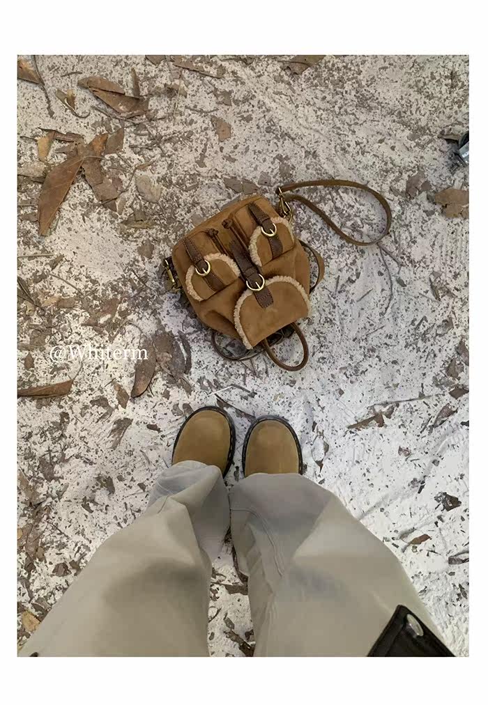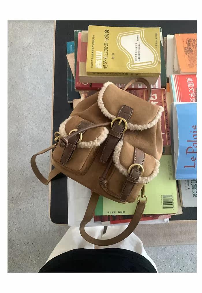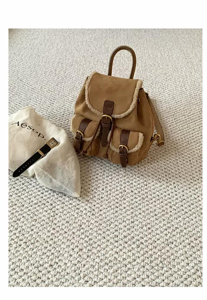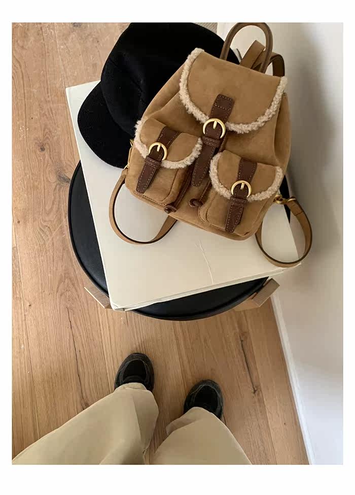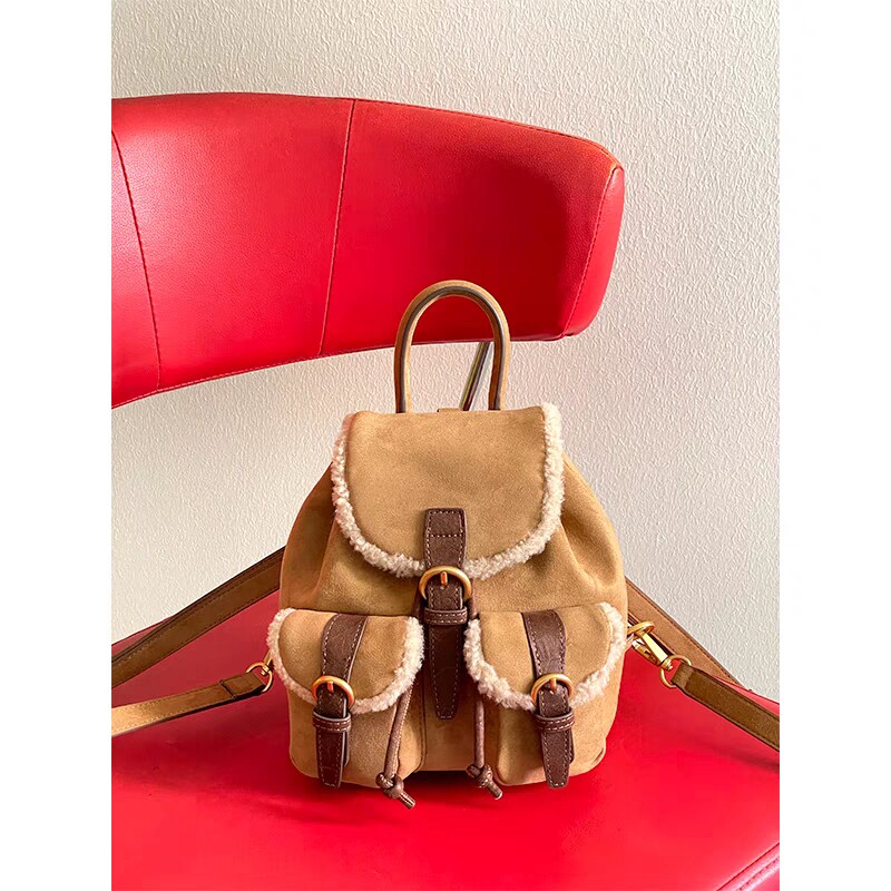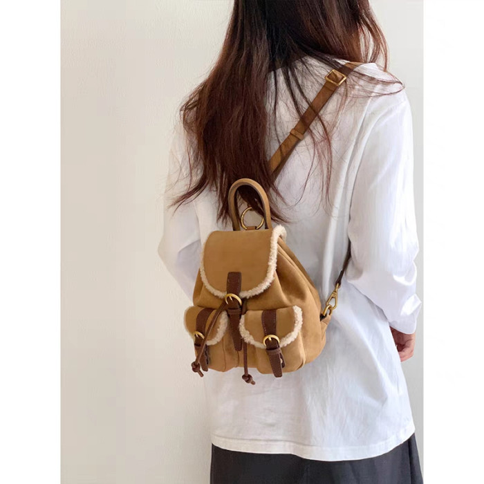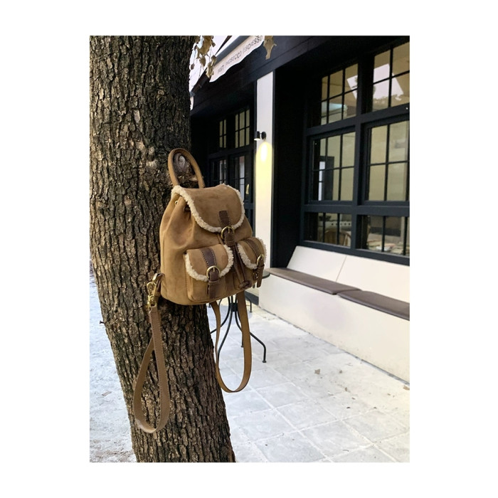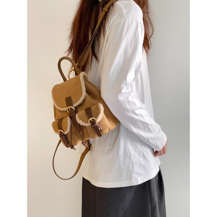 osun 雙肩包女韓版秋冬新款羊羔毛鹿皮絨小衆百搭多口袋小後後背包女