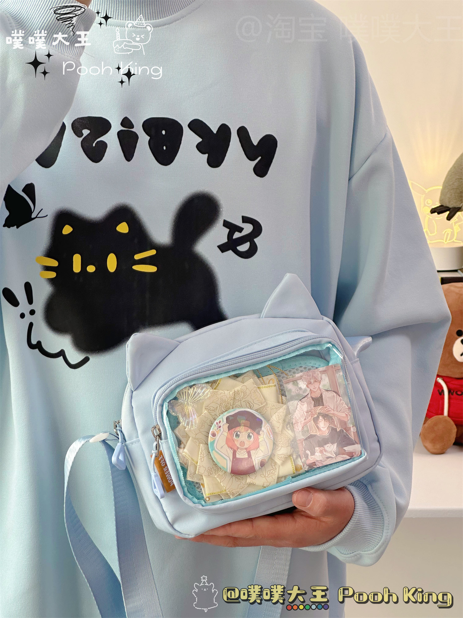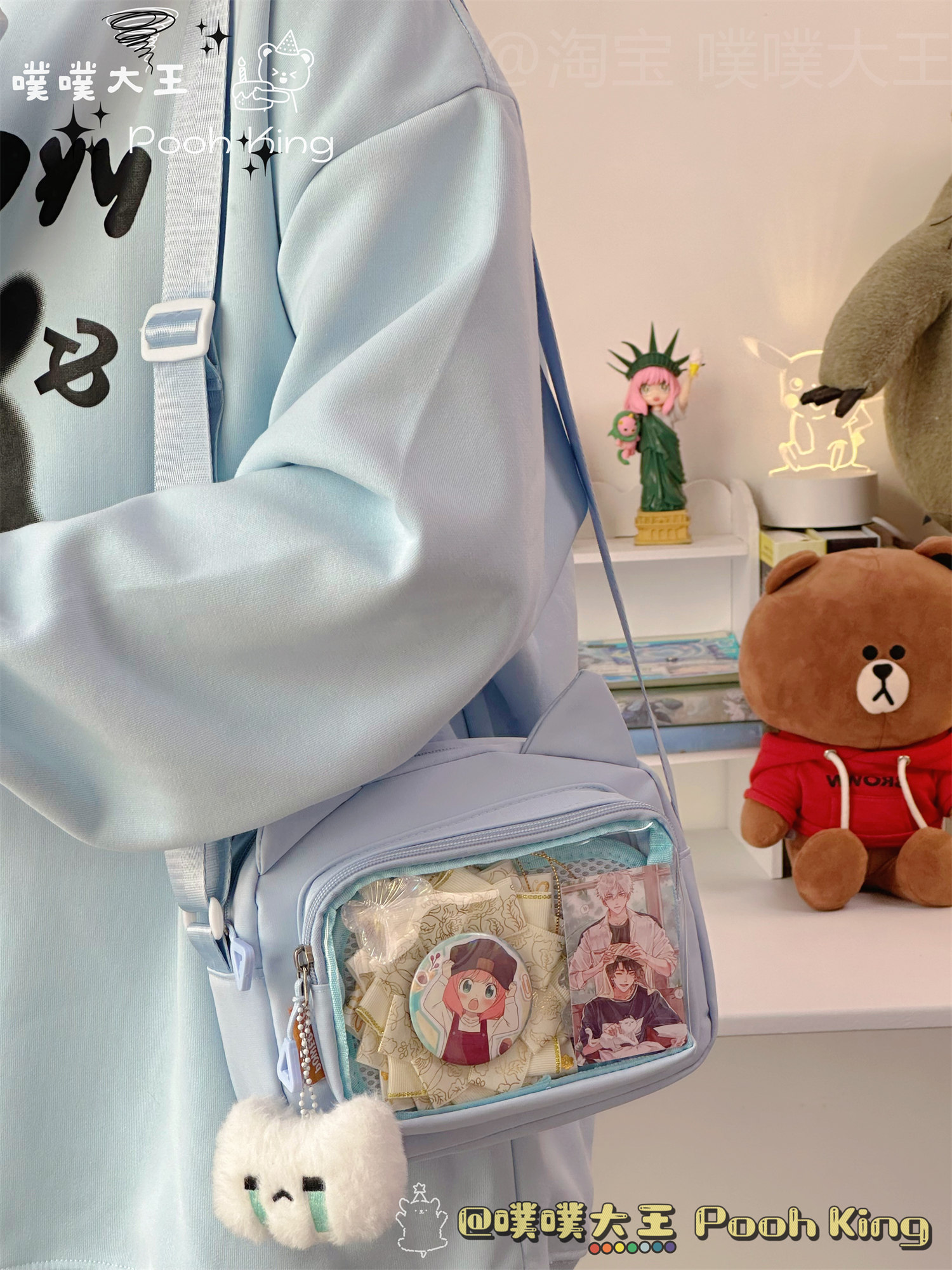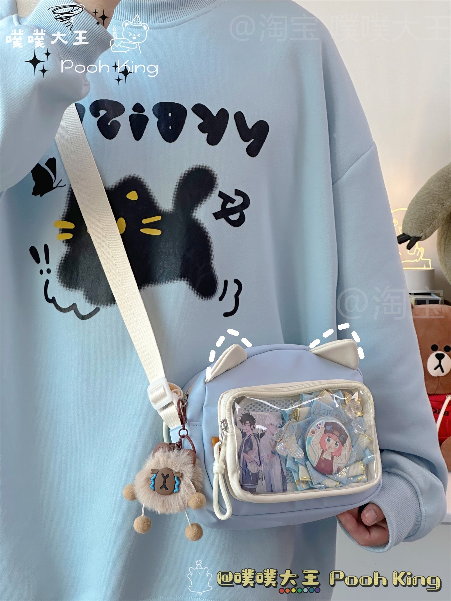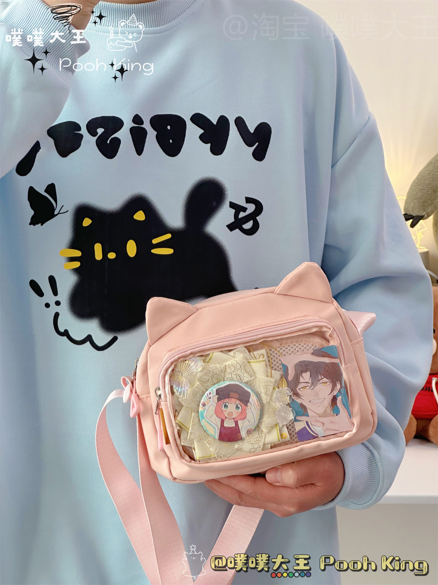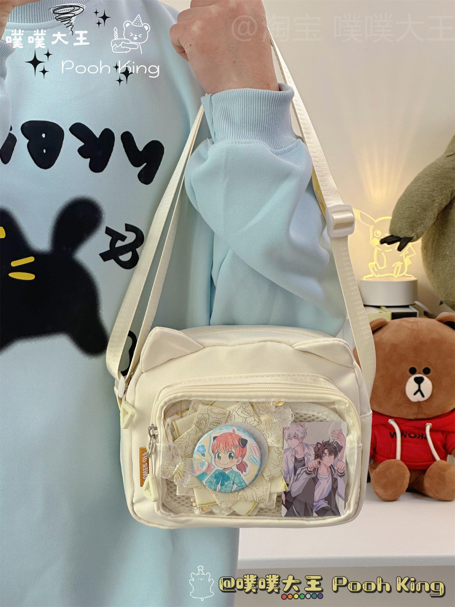 日系可愛少女二次元透明痛包娃包百搭學生斜後後背包女休閒手機小包包