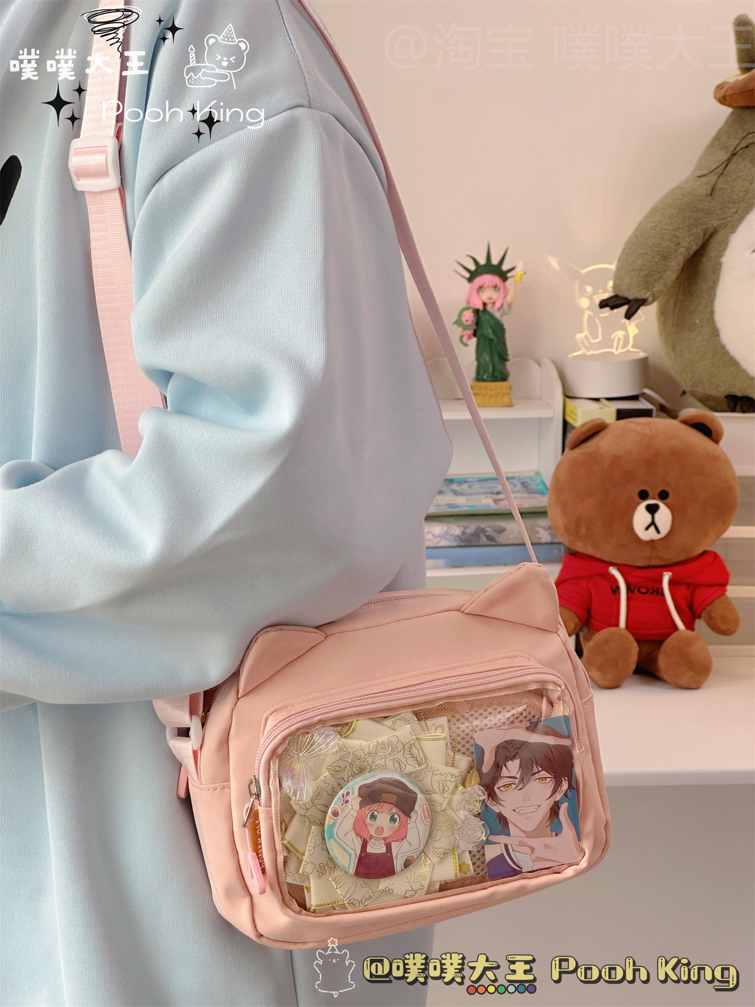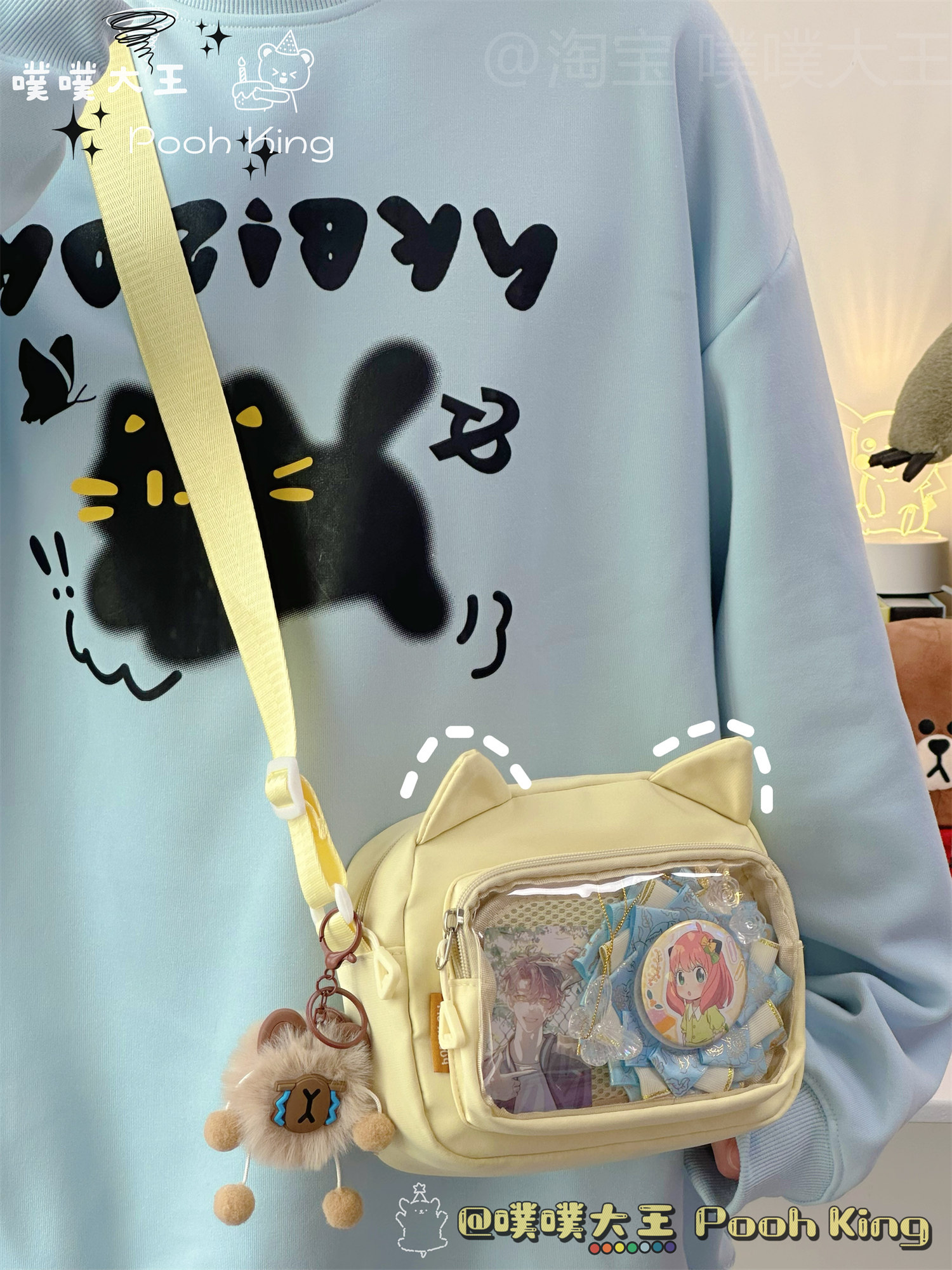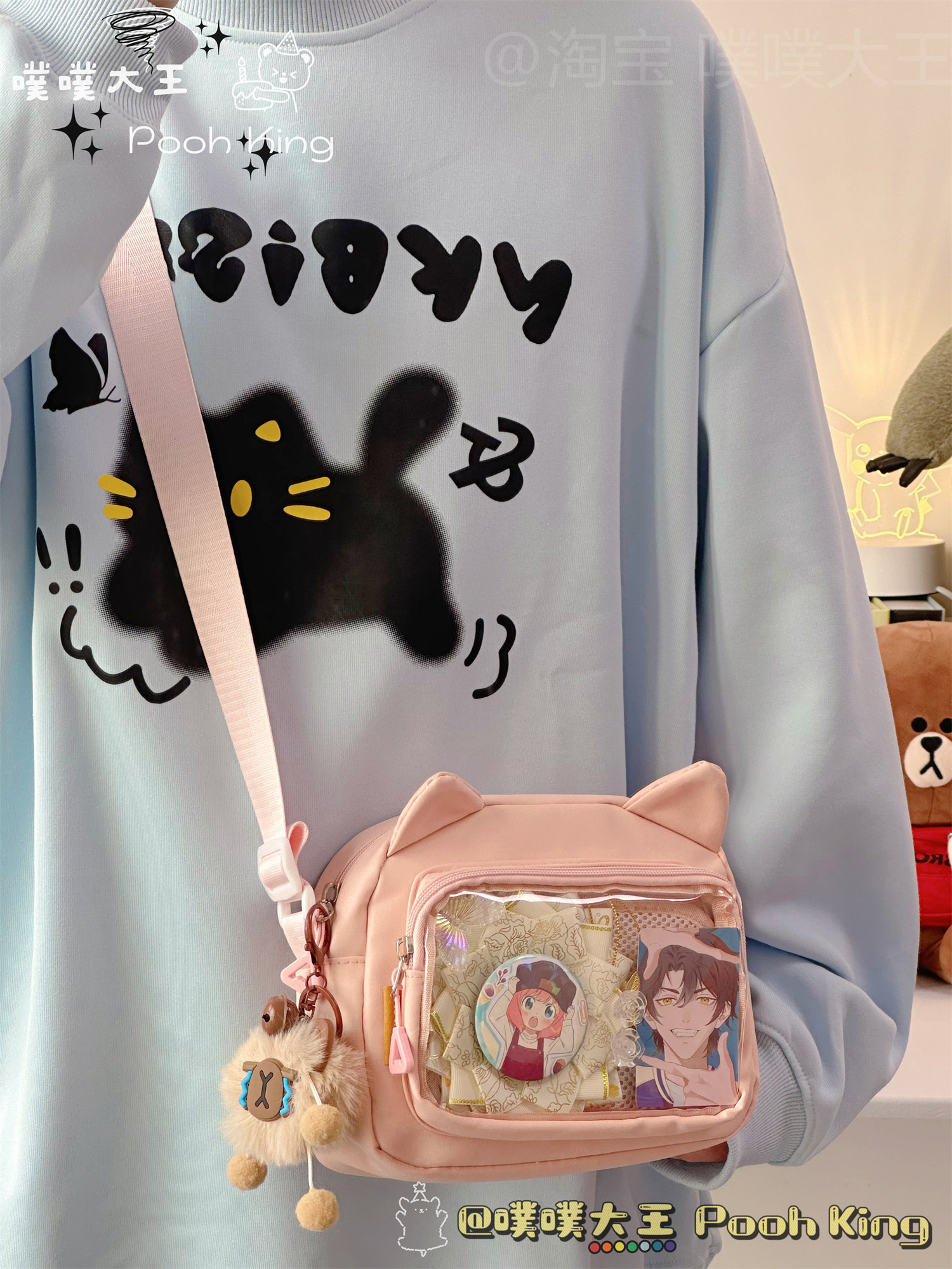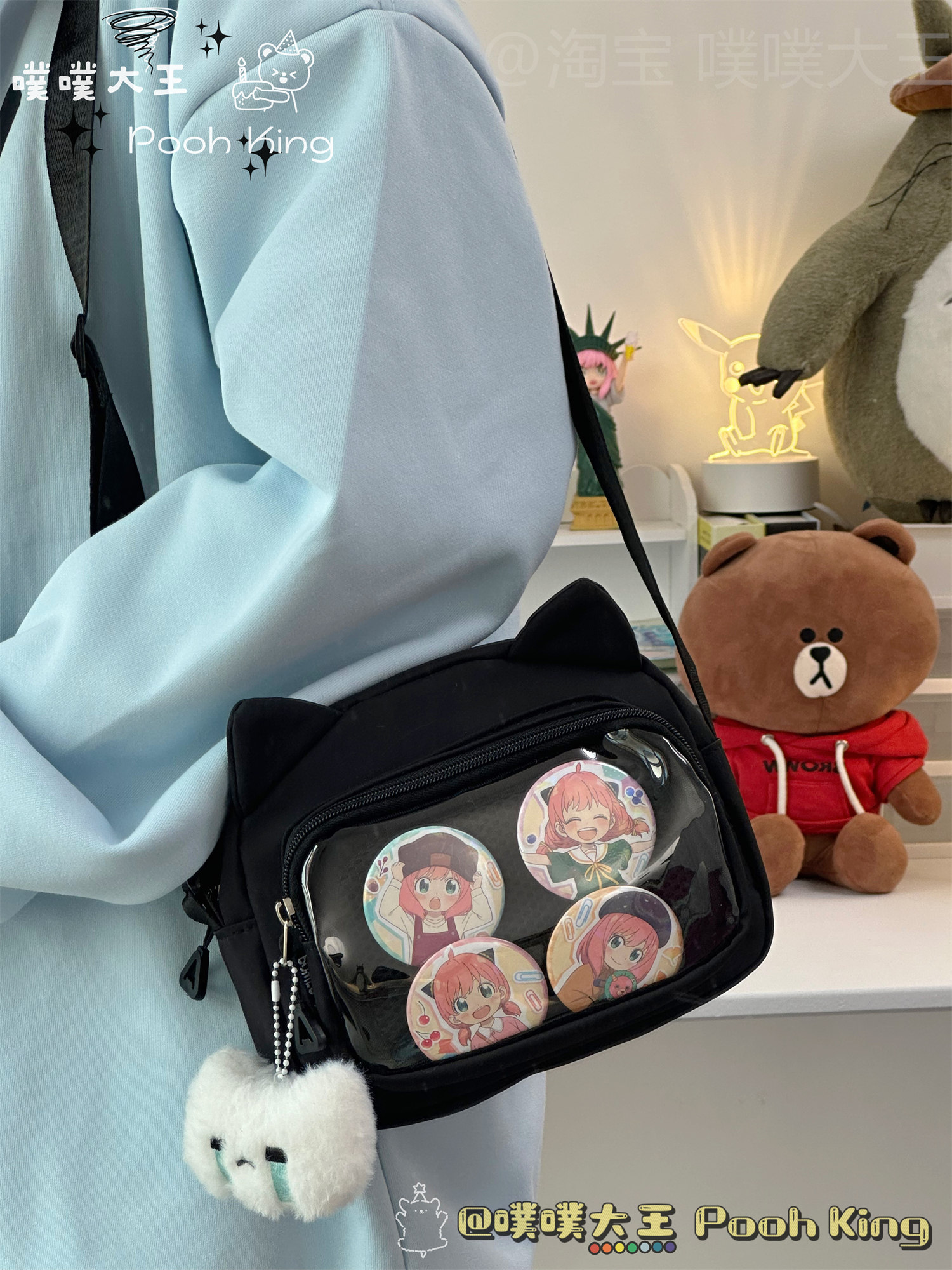 日系可愛少女二次元透明痛包娃包百搭學生斜後後背包女休閒手機小包包