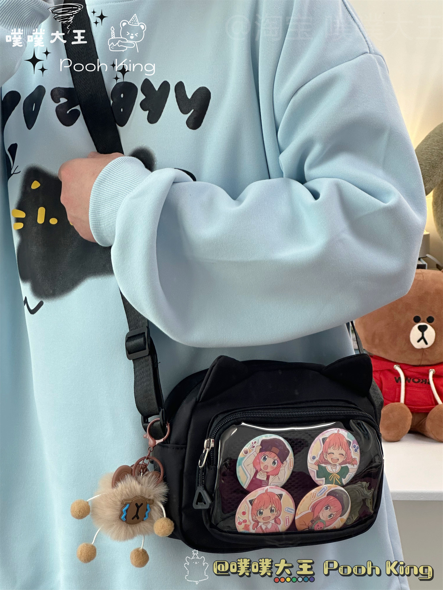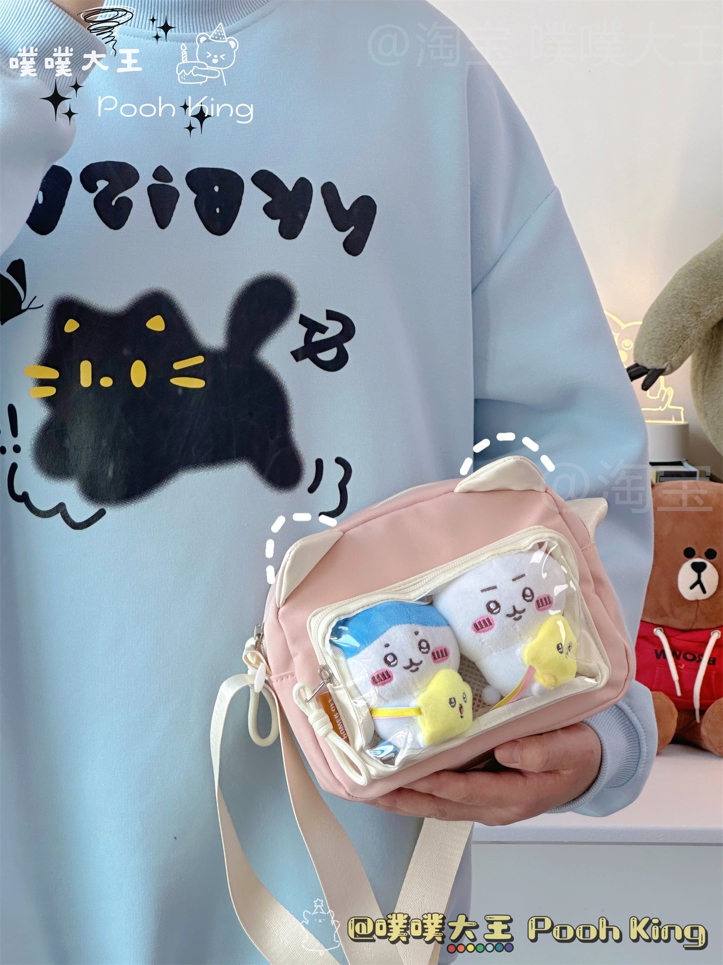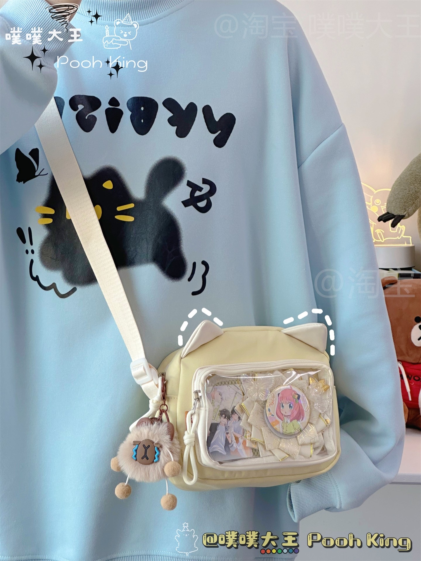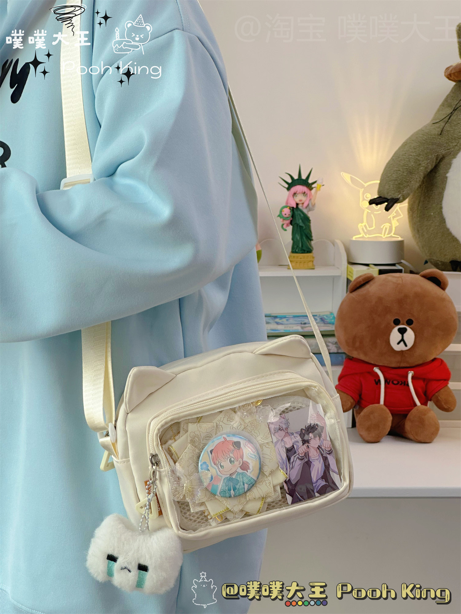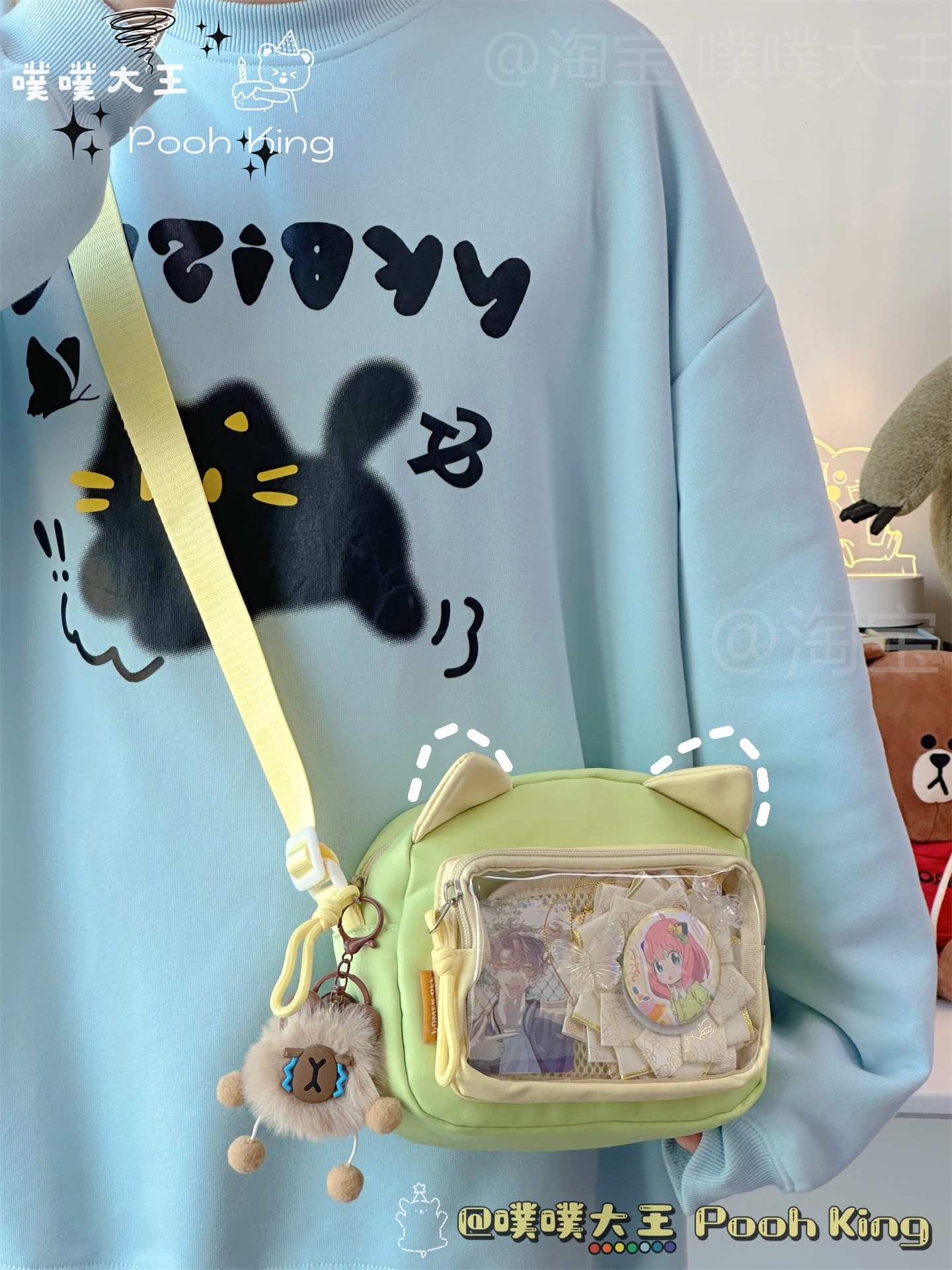 日系可愛少女二次元透明痛包娃包百搭學生斜後後背包女休閒手機小包包