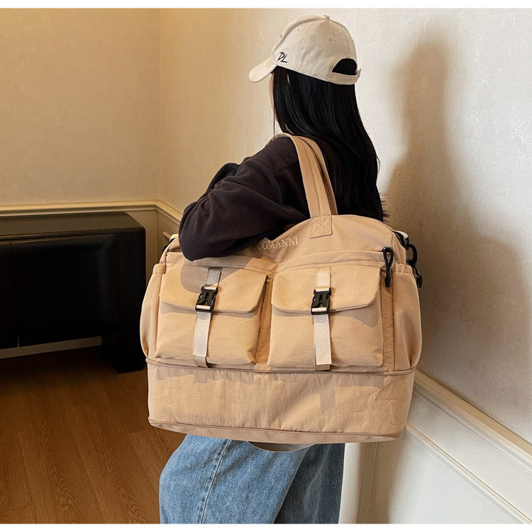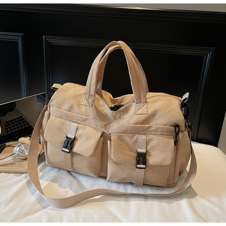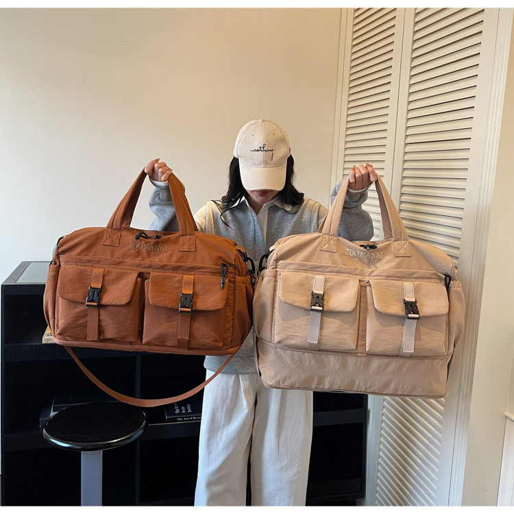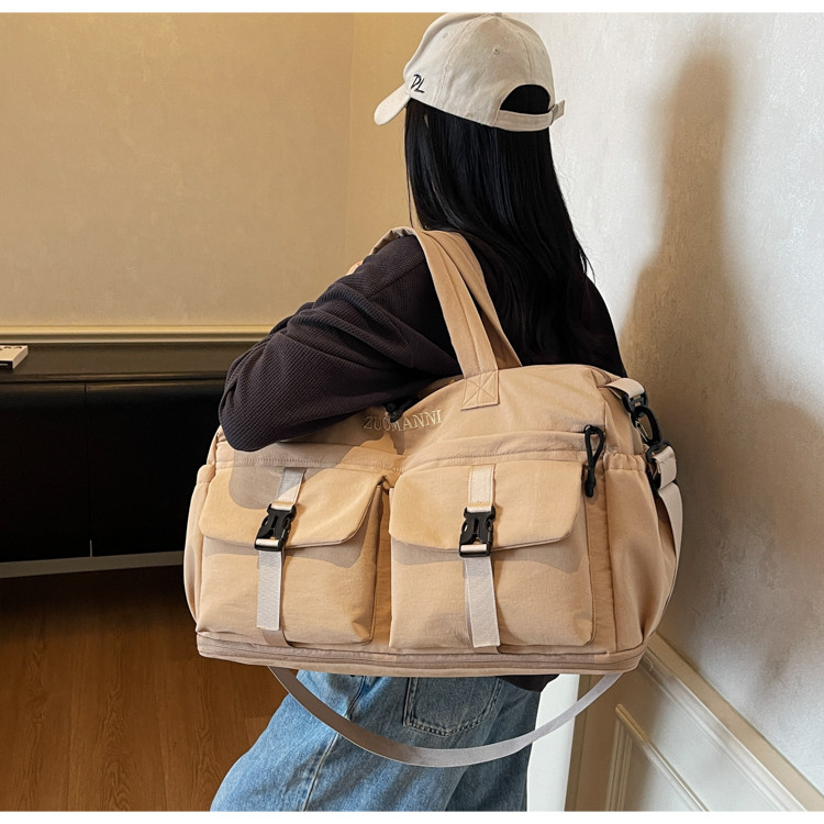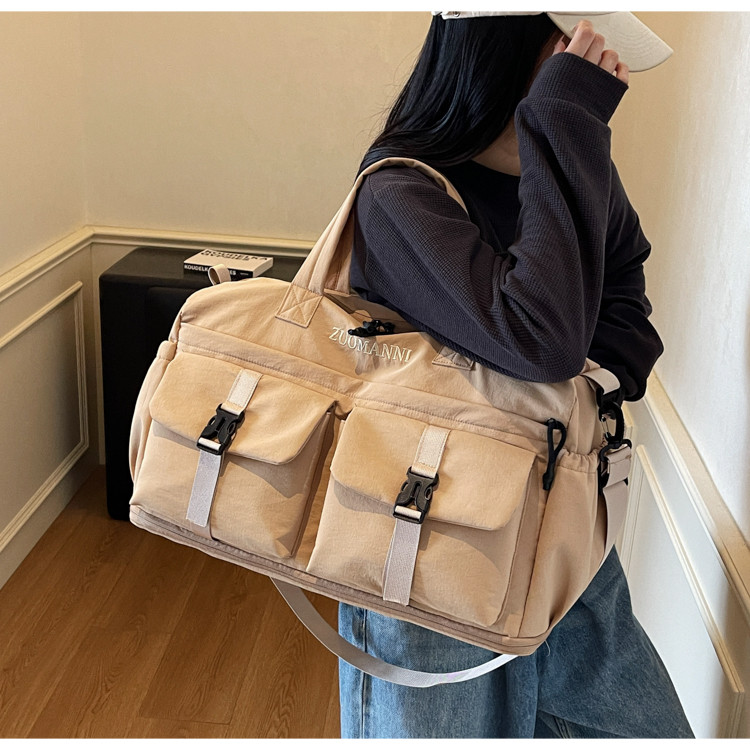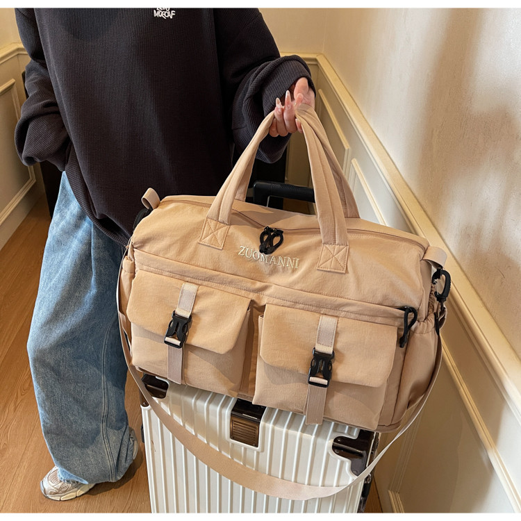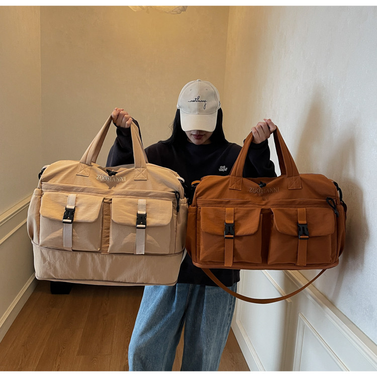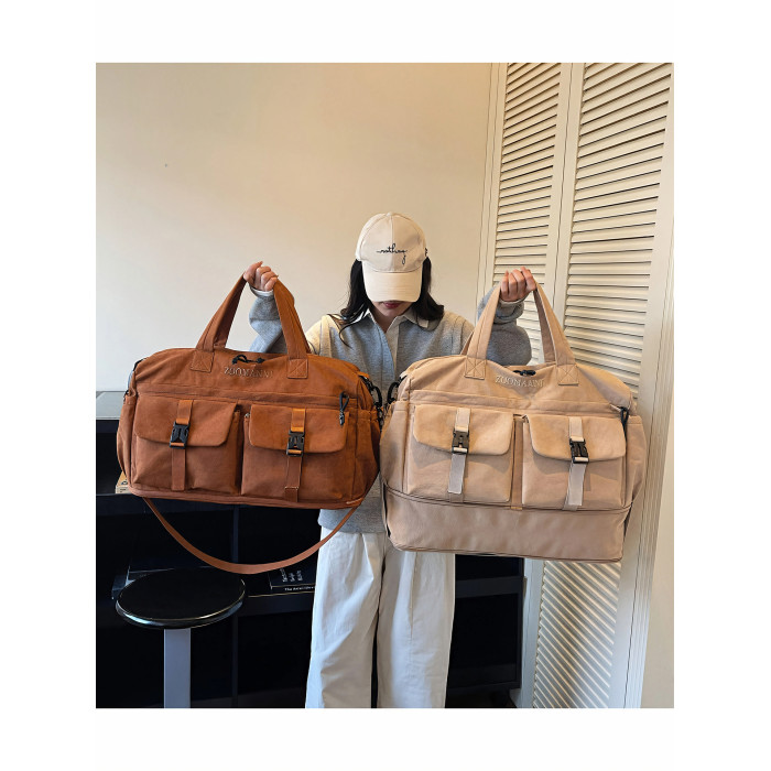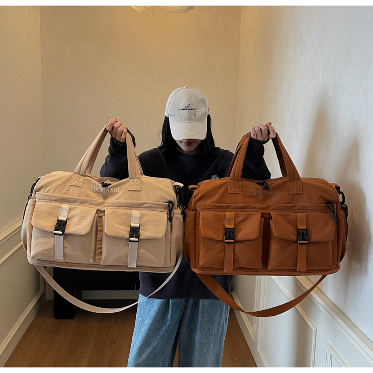 時尚帆布包百搭短途旅行收納包可套拉桿箱登機包乾濕分離健身提包