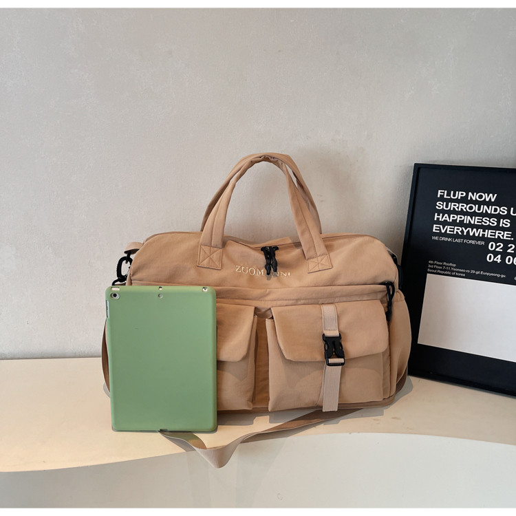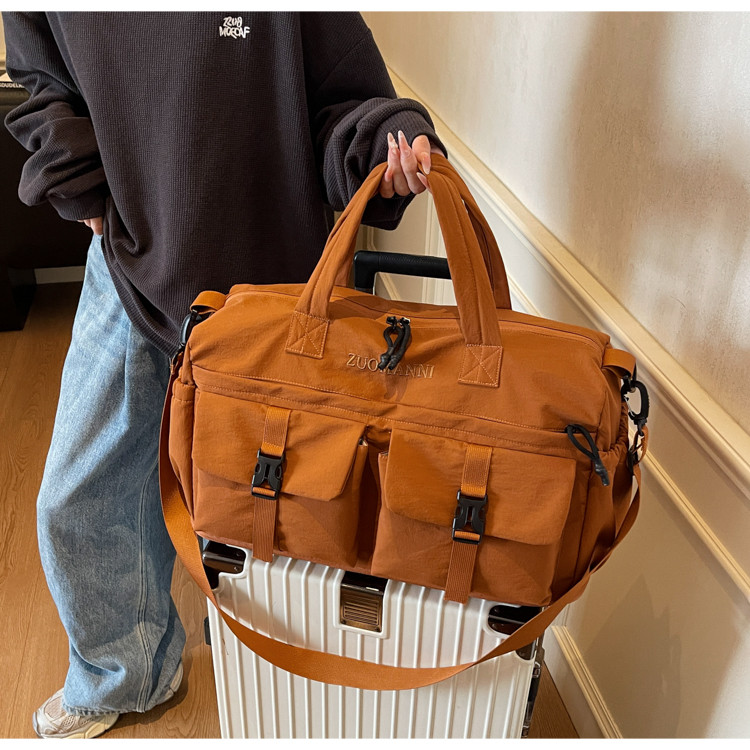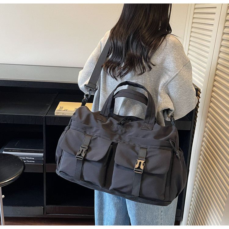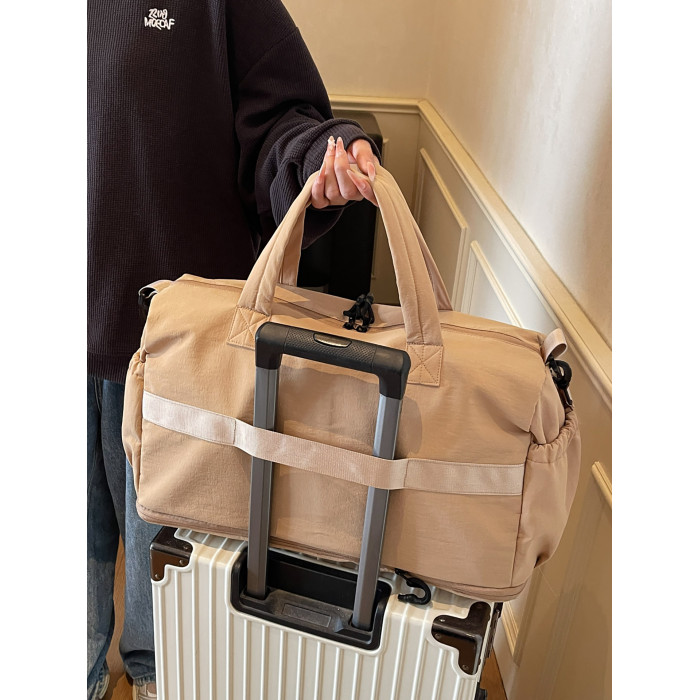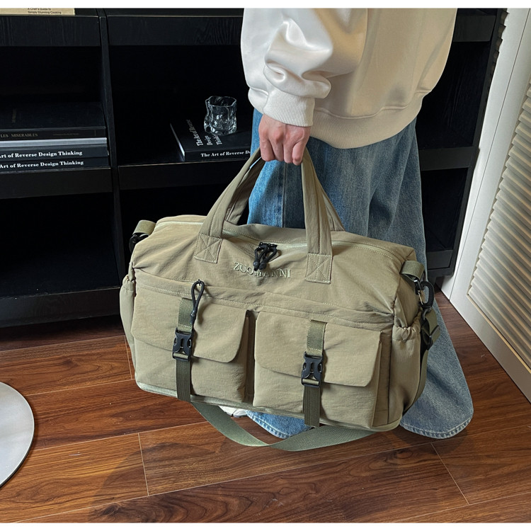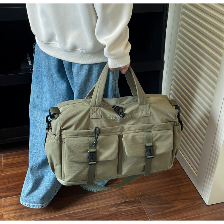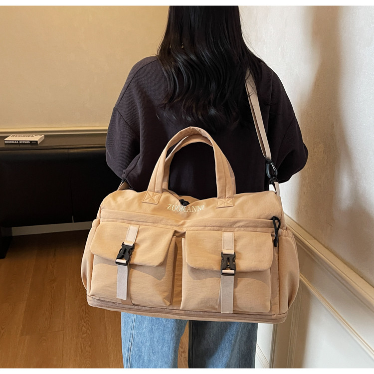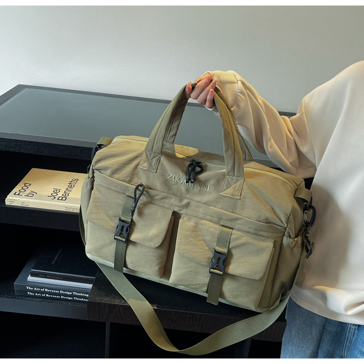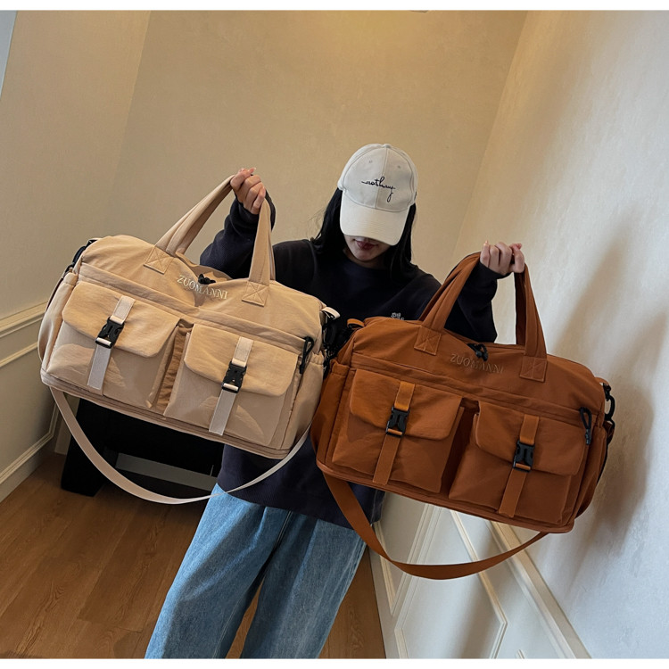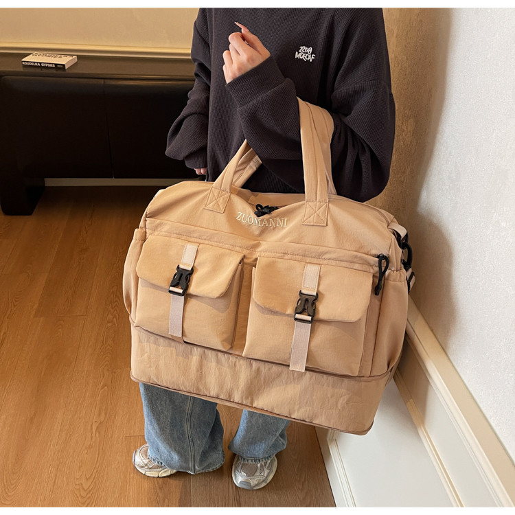 時尚帆布包百搭短途旅行收納包可套拉桿箱登機包乾濕分離健身提包
