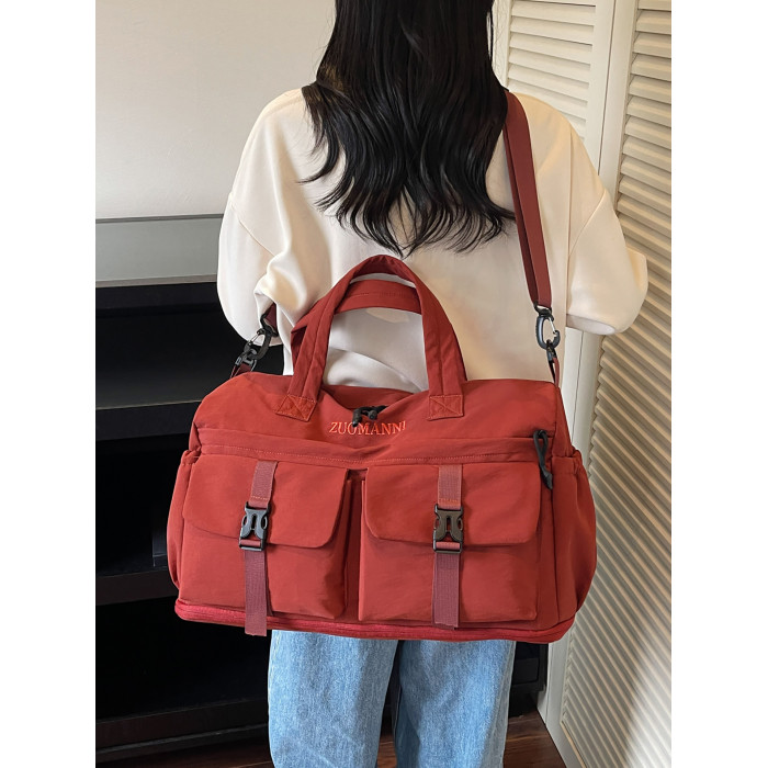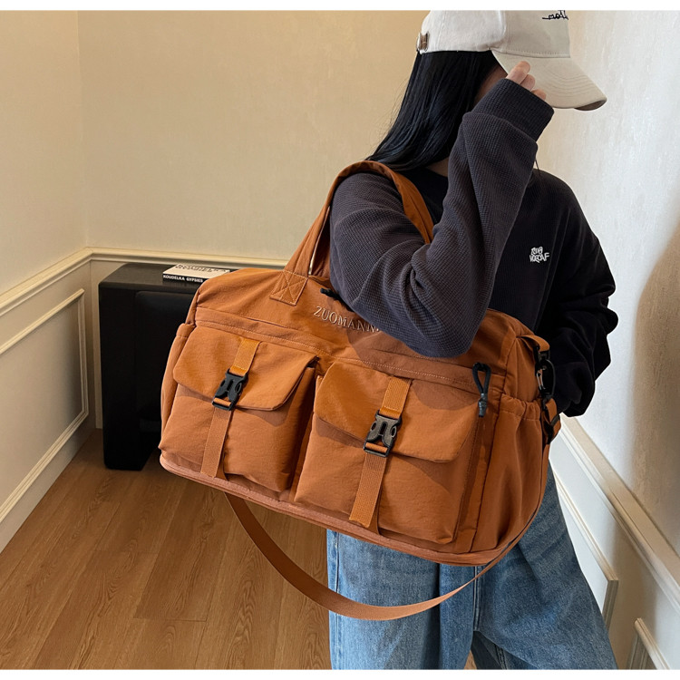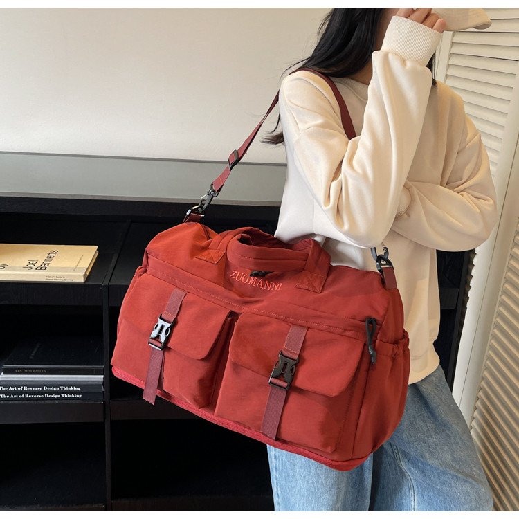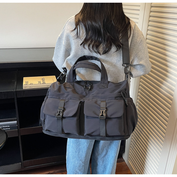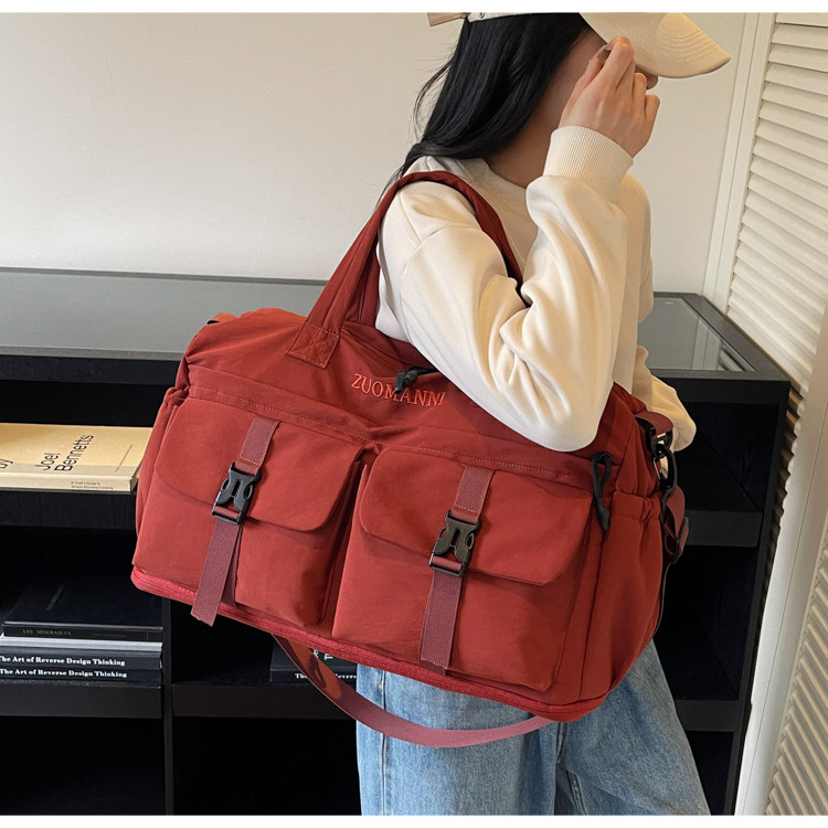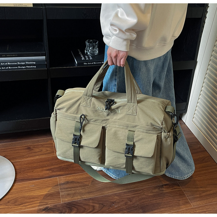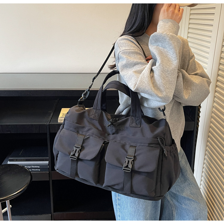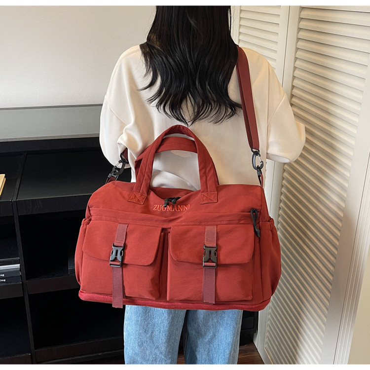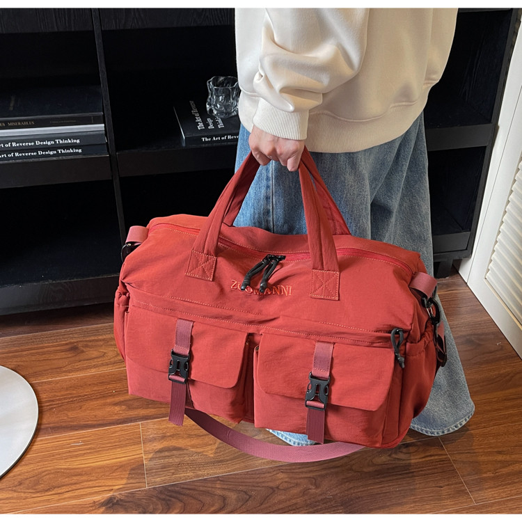 時尚帆布包百搭短途旅行收納包可套拉桿箱登機包乾濕分離健身提包