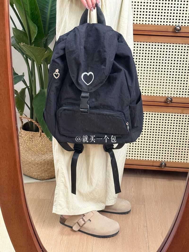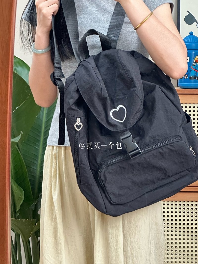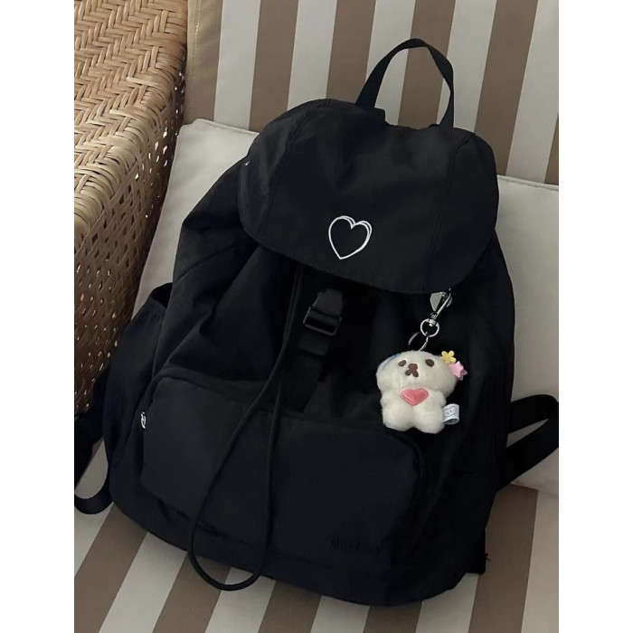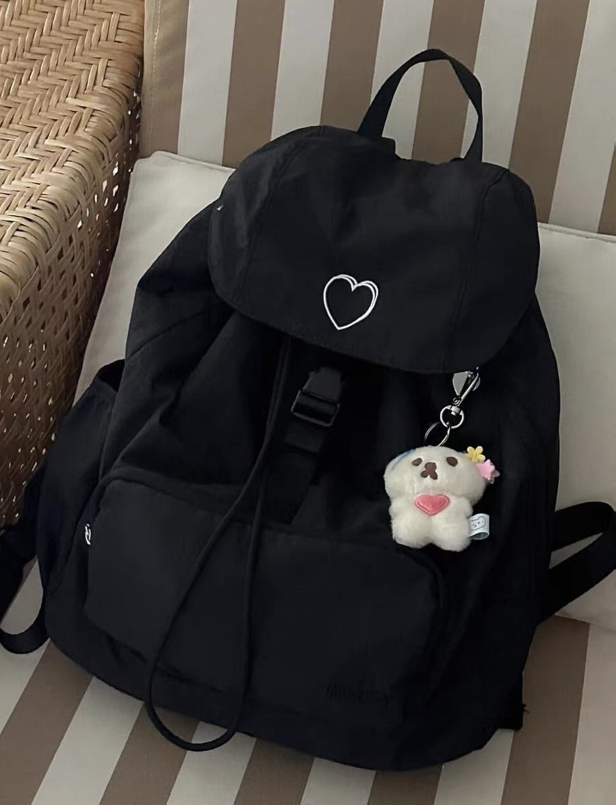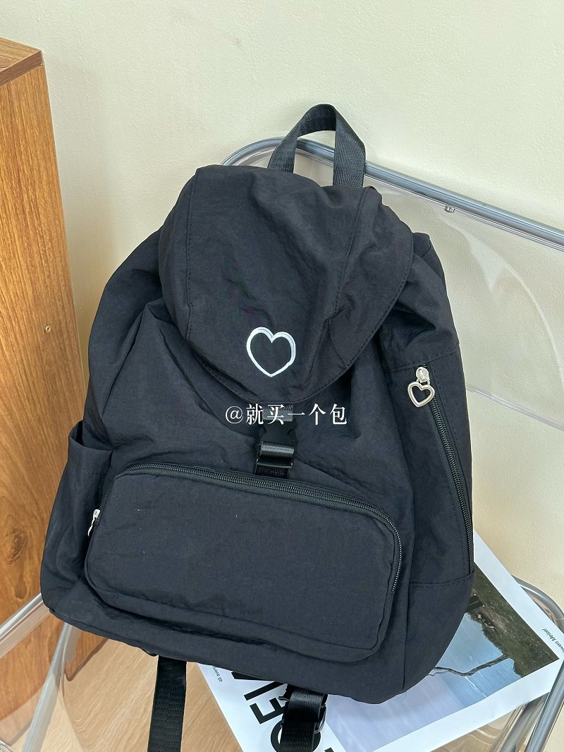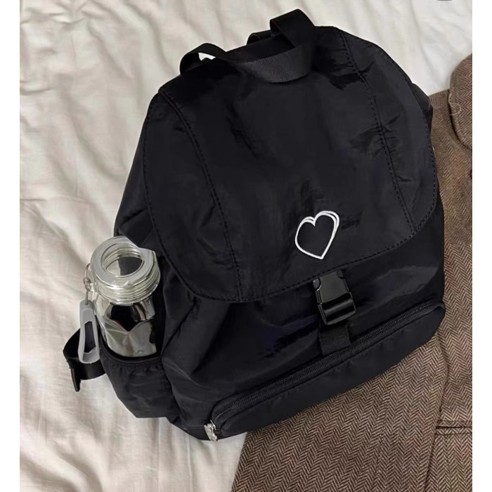 新款韓系愛心雙肩包後後背包小衆休閒輕便日常大容量尼龍雙肩旅行書包