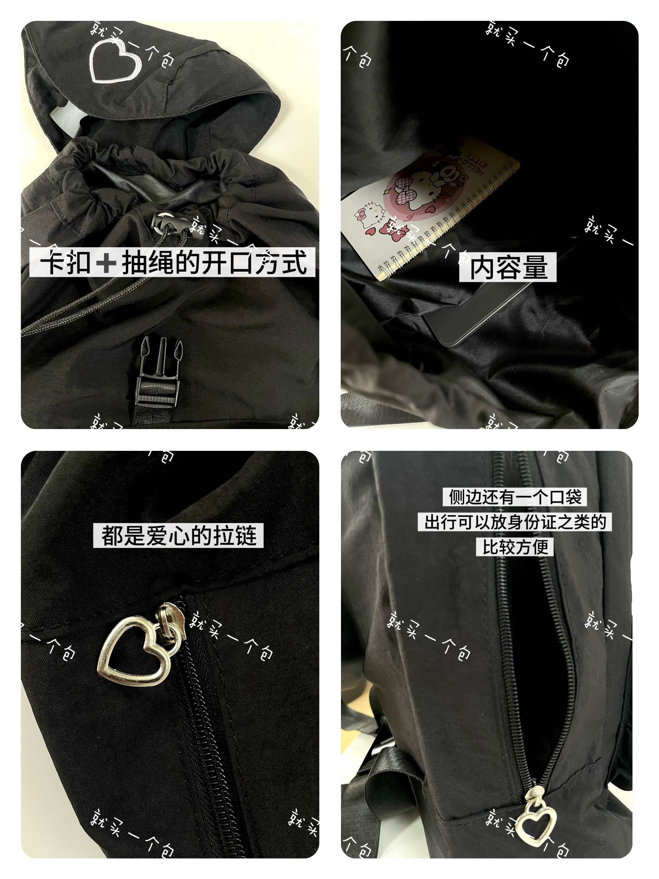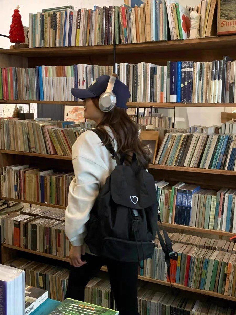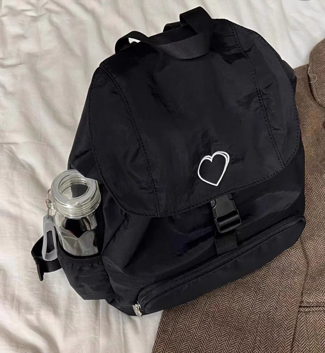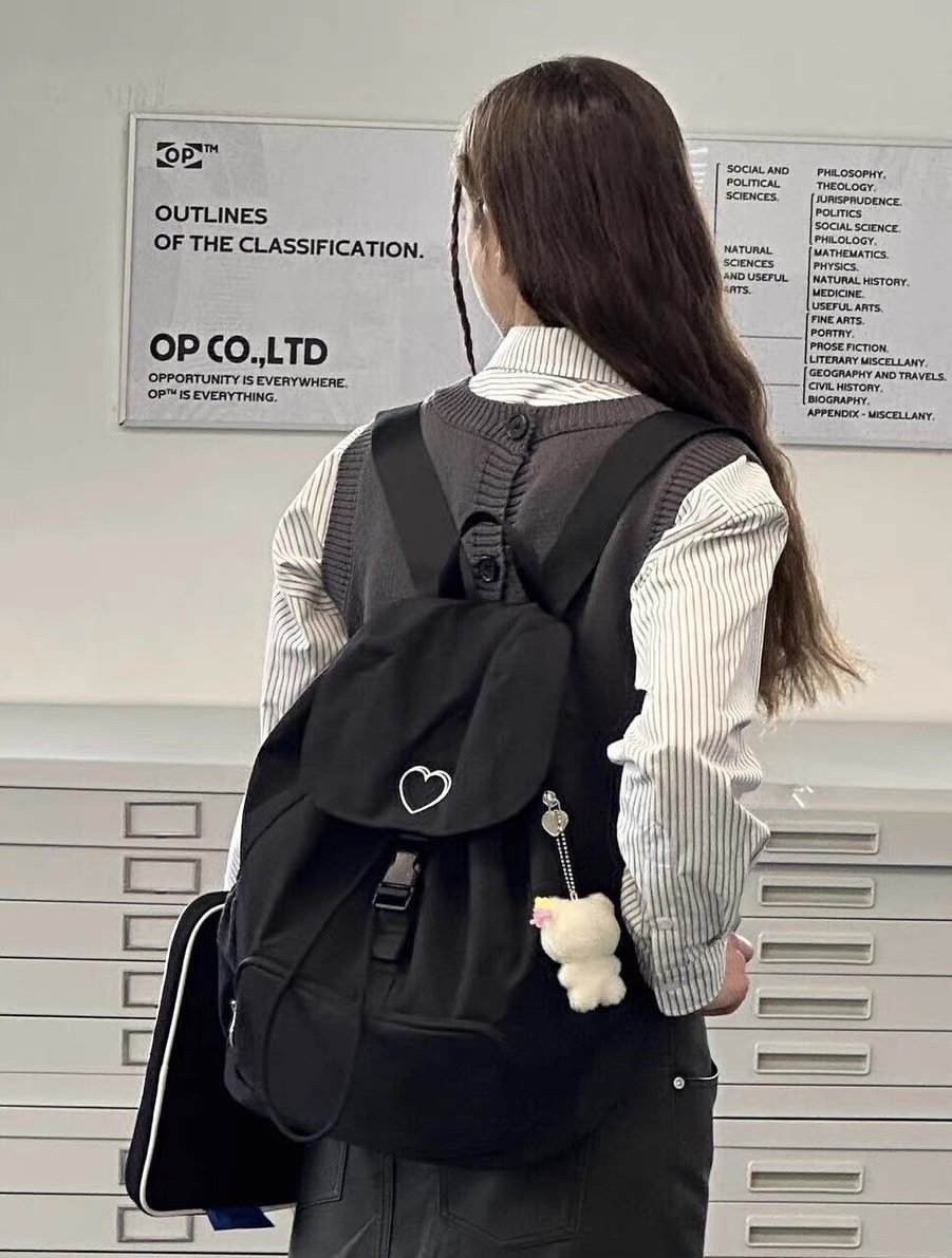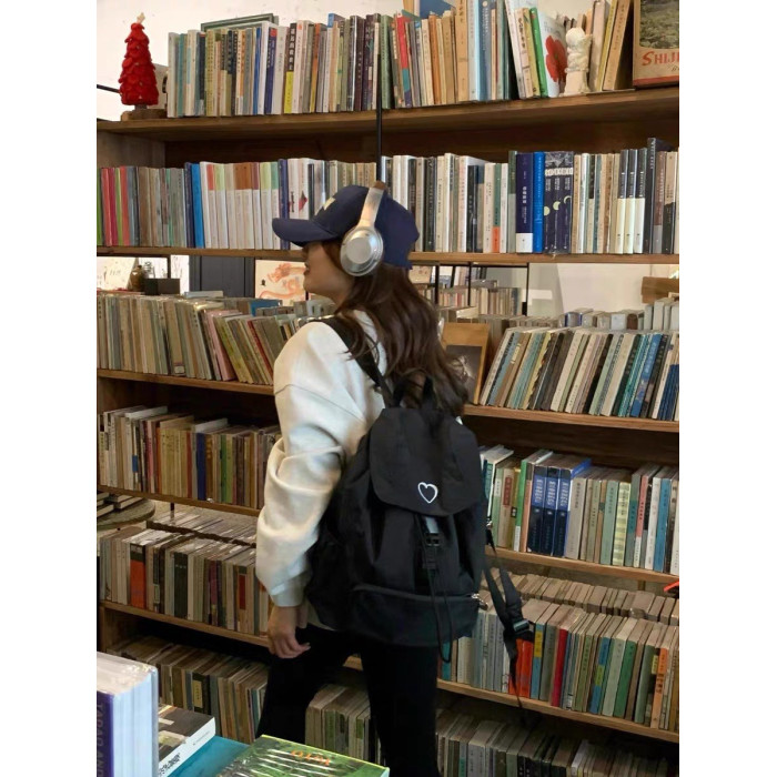新款韓系愛心雙肩包後後背包小衆休閒輕便日常大容量尼龍雙肩旅行書包