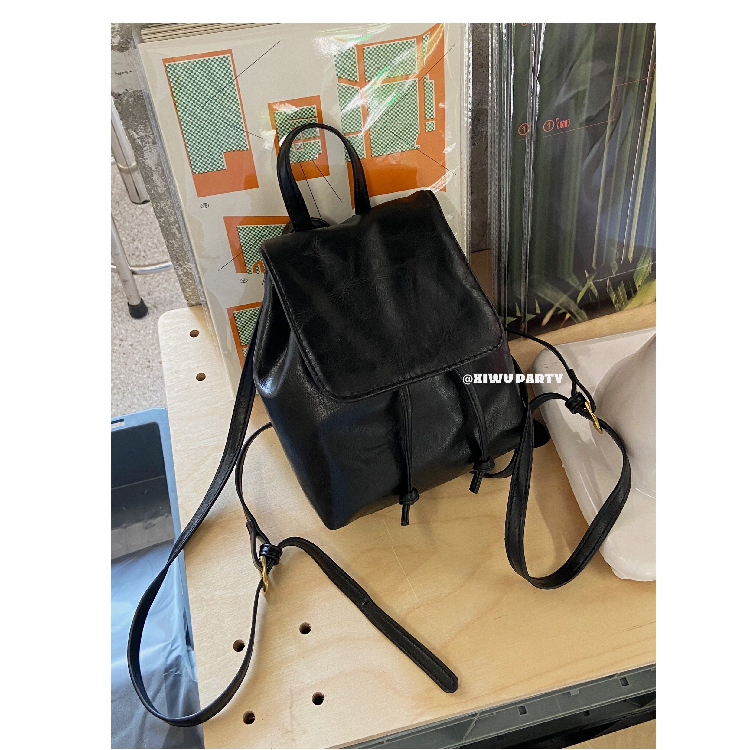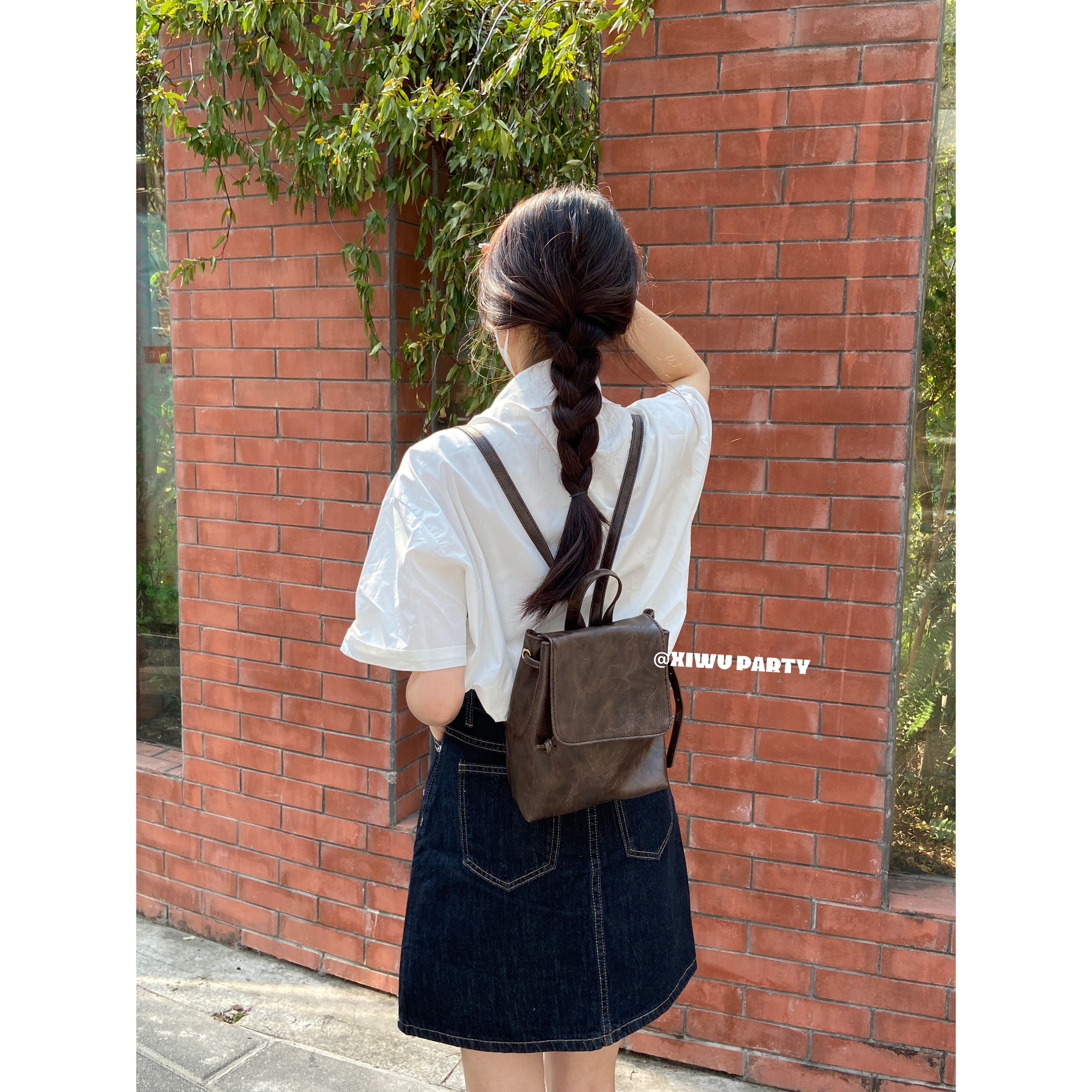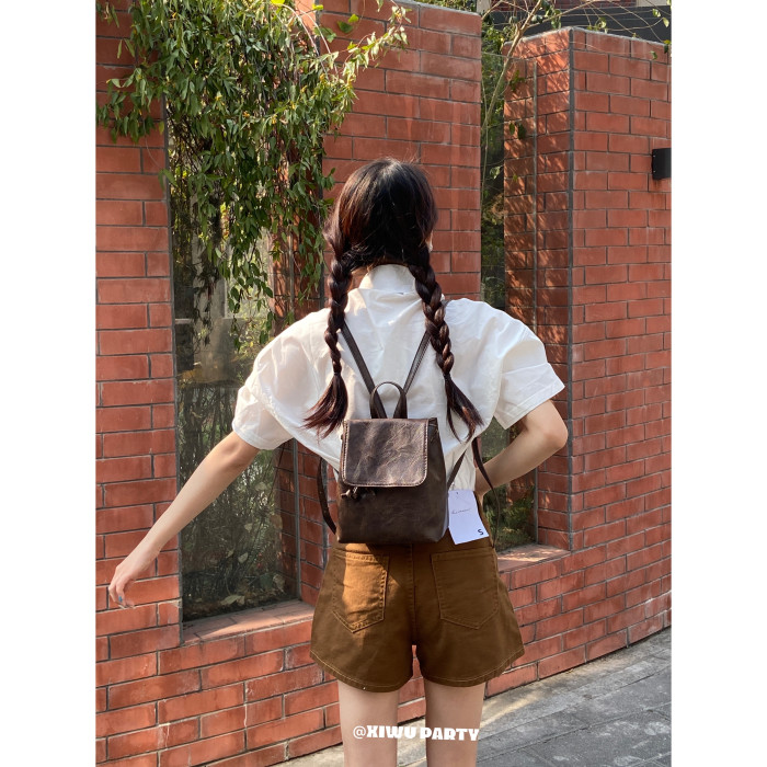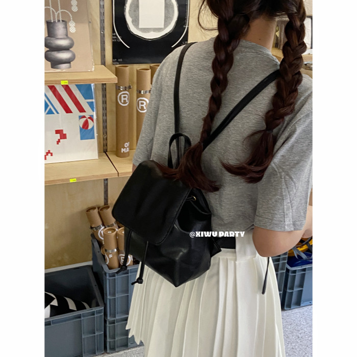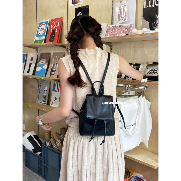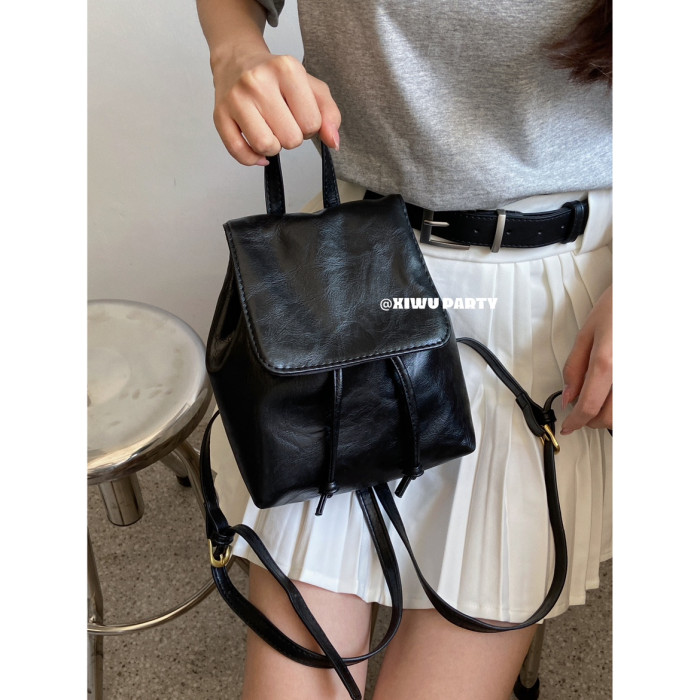 美式復古小皮包精緻百搭mini雙肩包 簡約高級感黑色pu包包