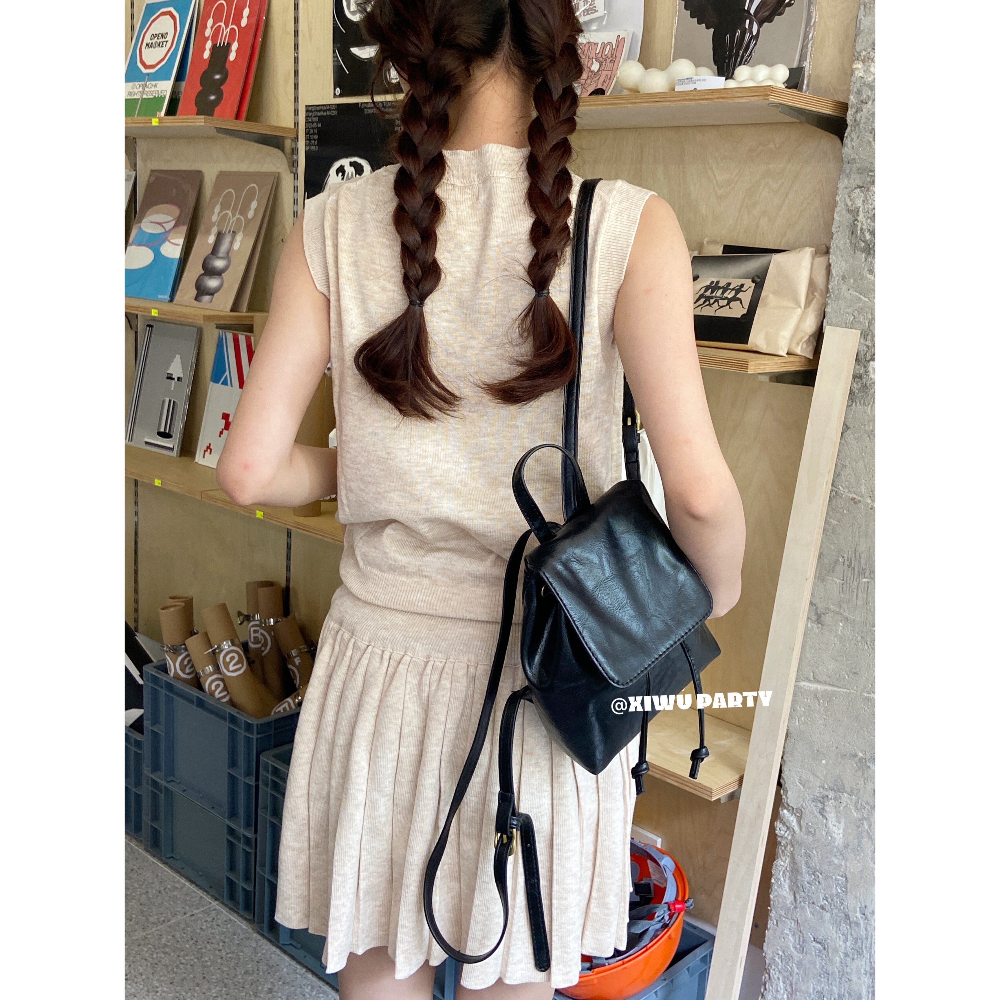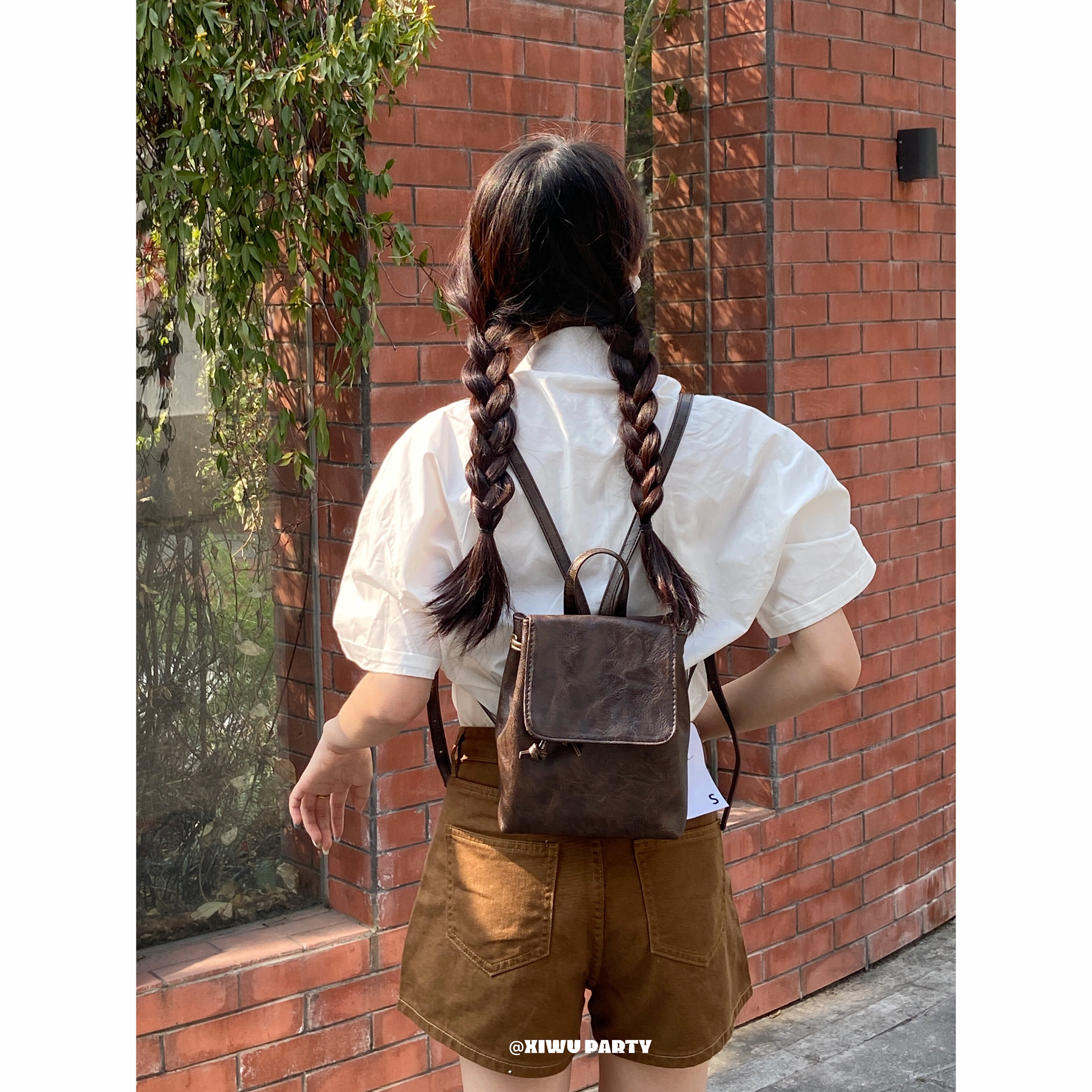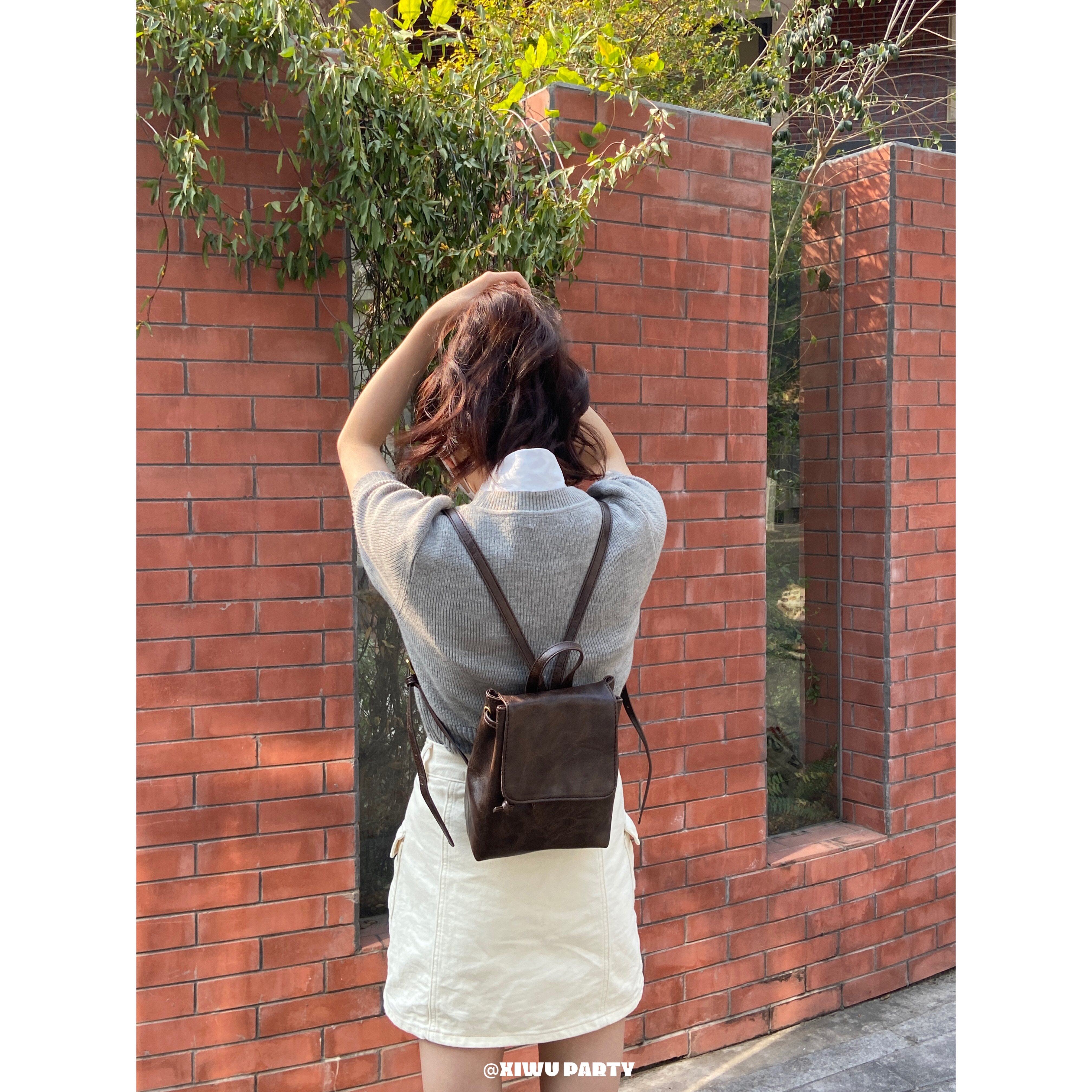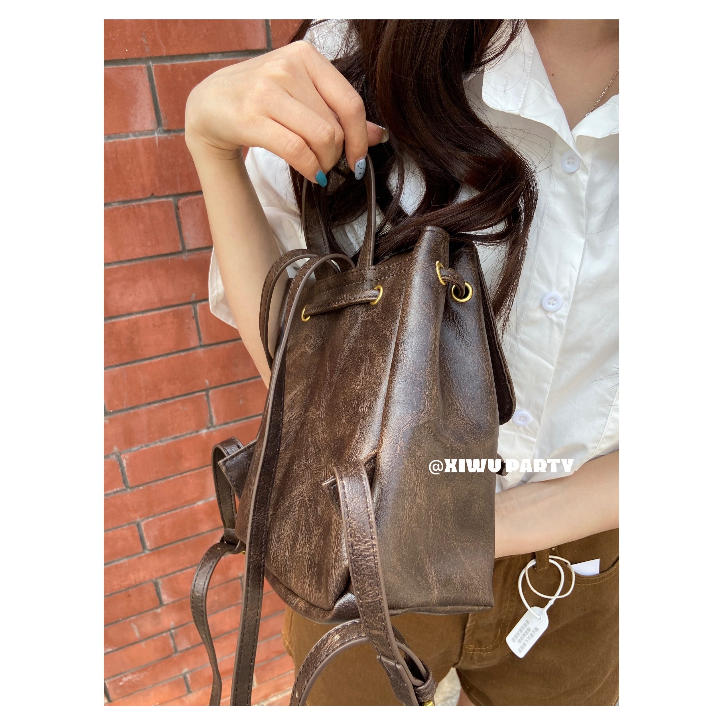 美式復古小皮包精緻百搭mini雙肩包 簡約高級感黑色pu包包