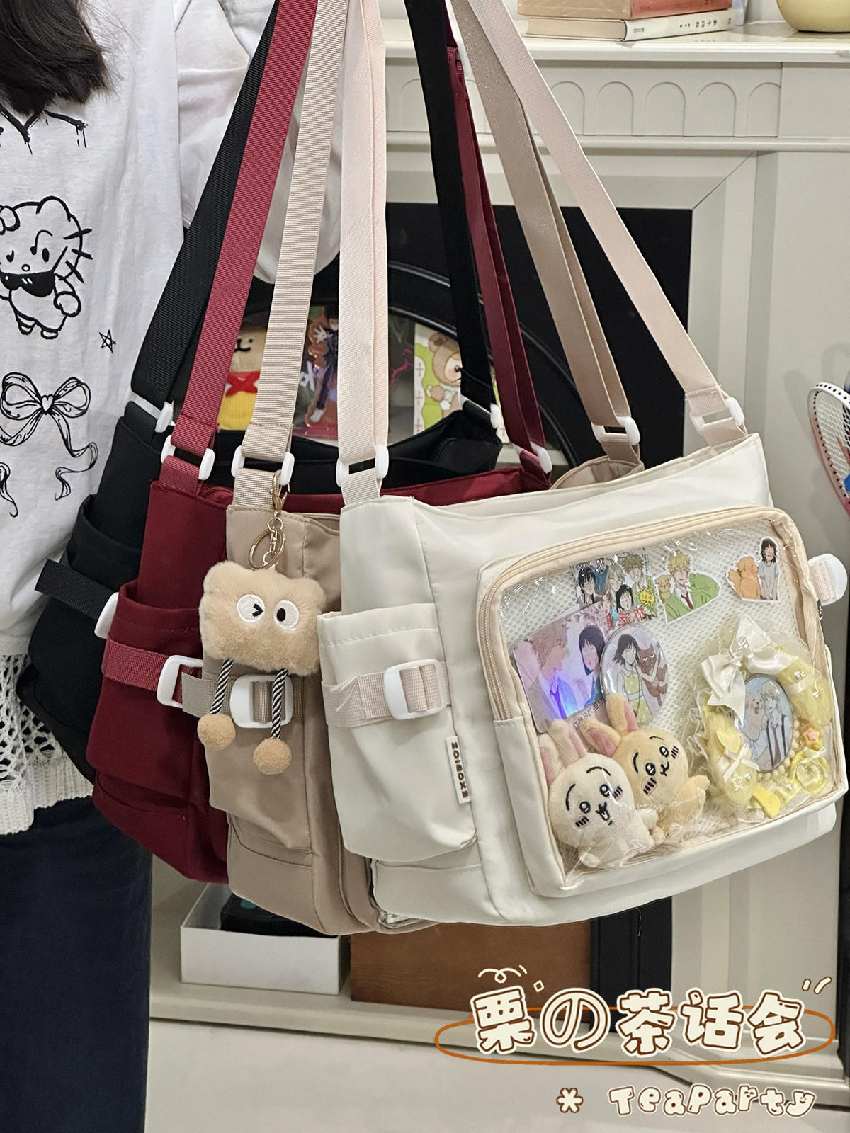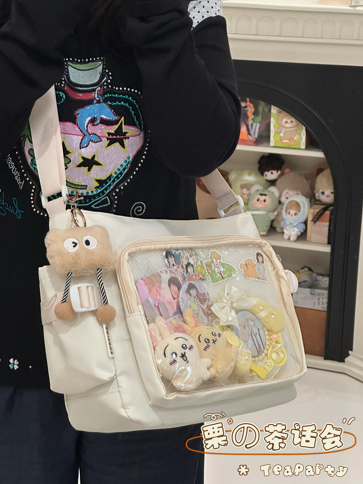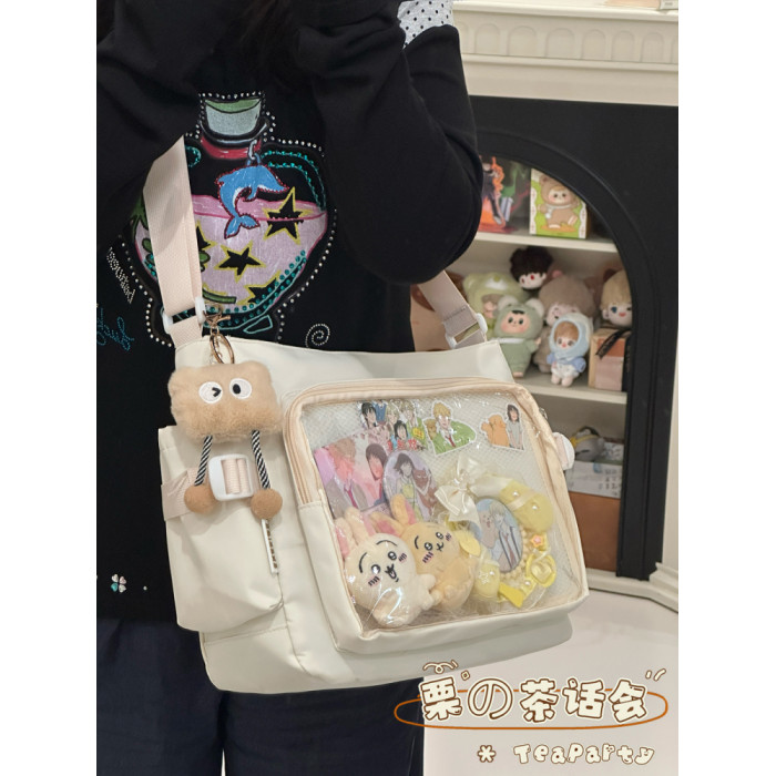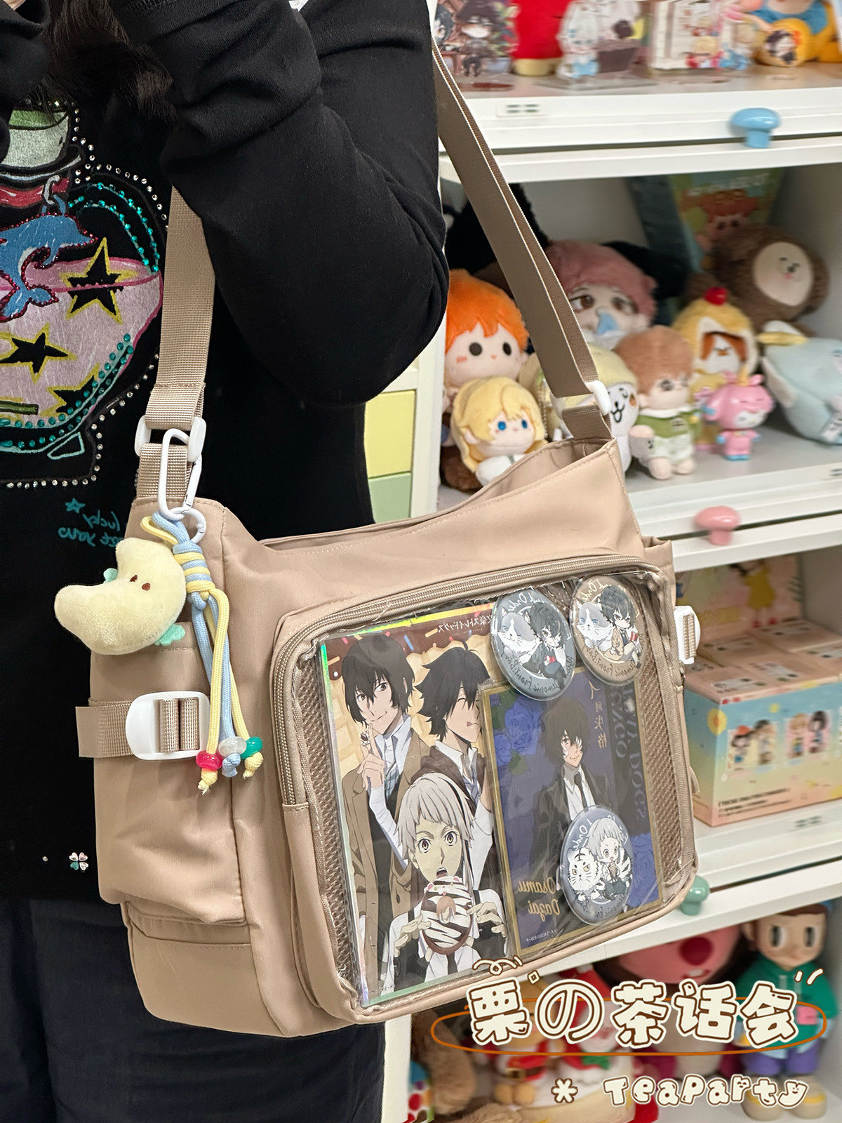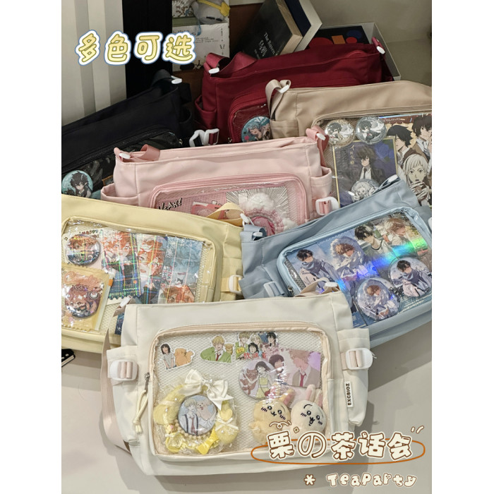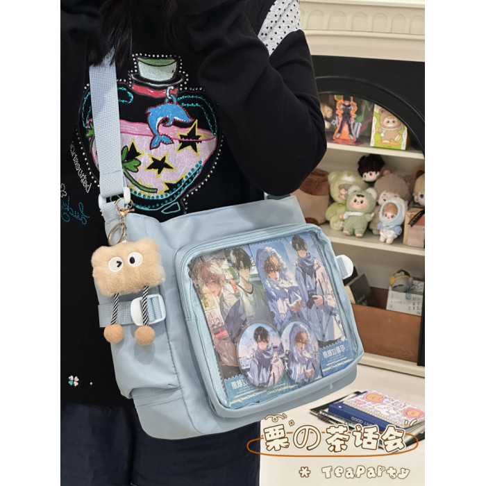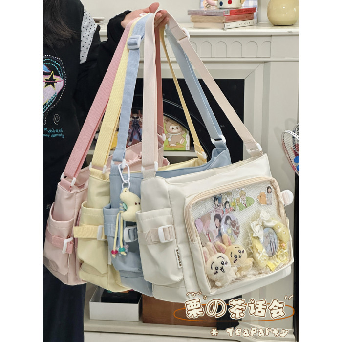 日系ins學院風簡約大容量郵差包女 吧唧穀子痛包單肩包學生斜後後背包