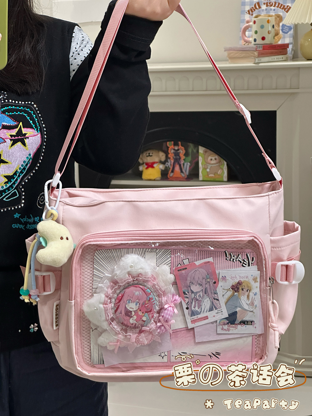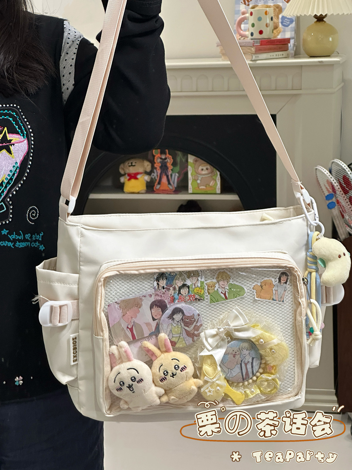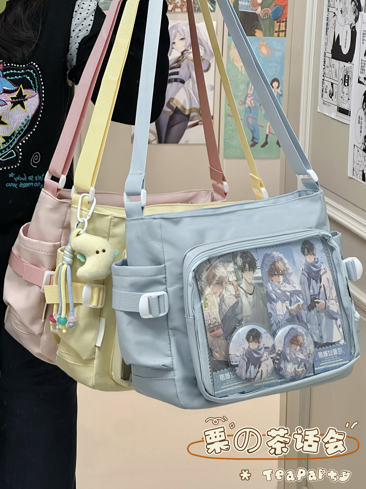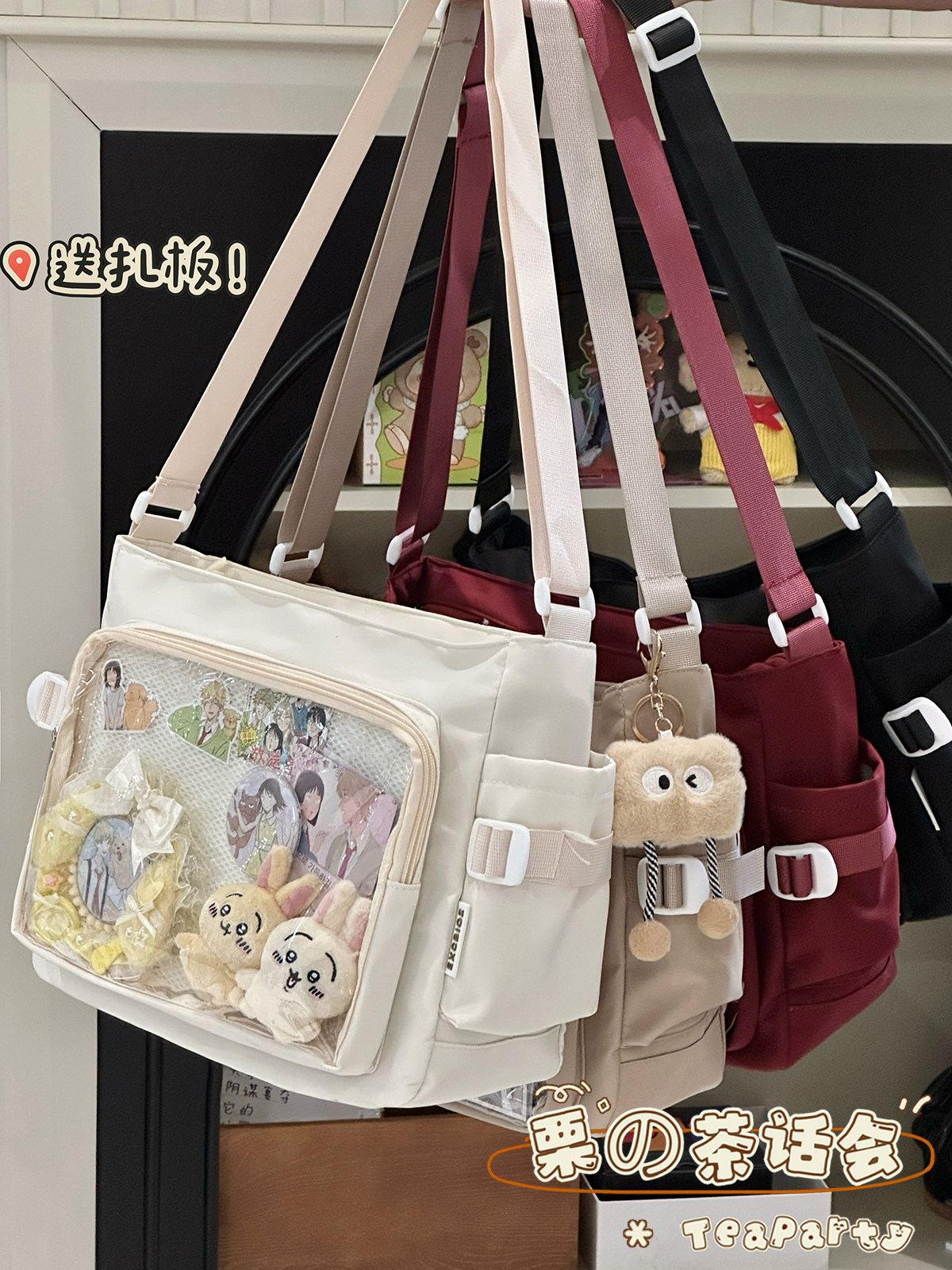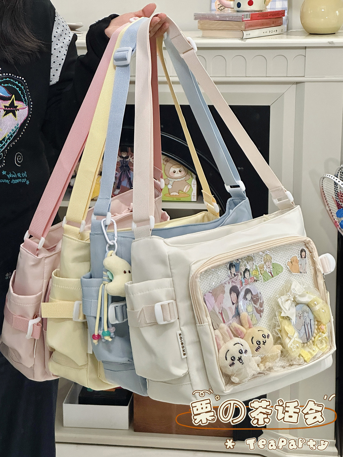 日系ins學院風簡約大容量郵差包女 吧唧穀子痛包單肩包學生斜後後背包