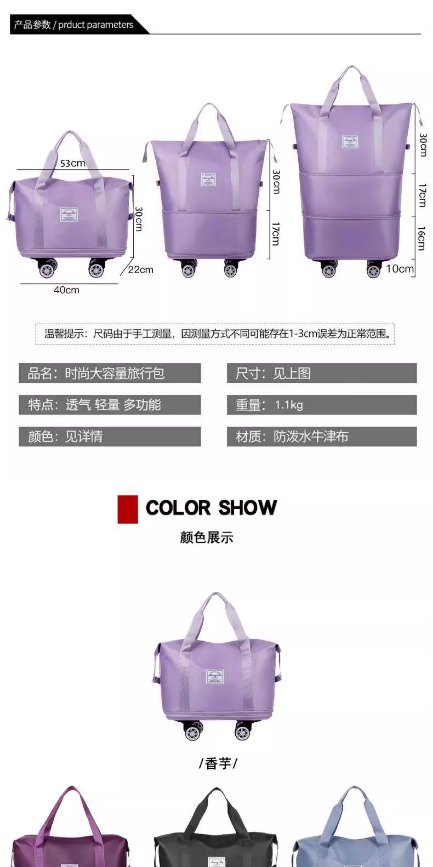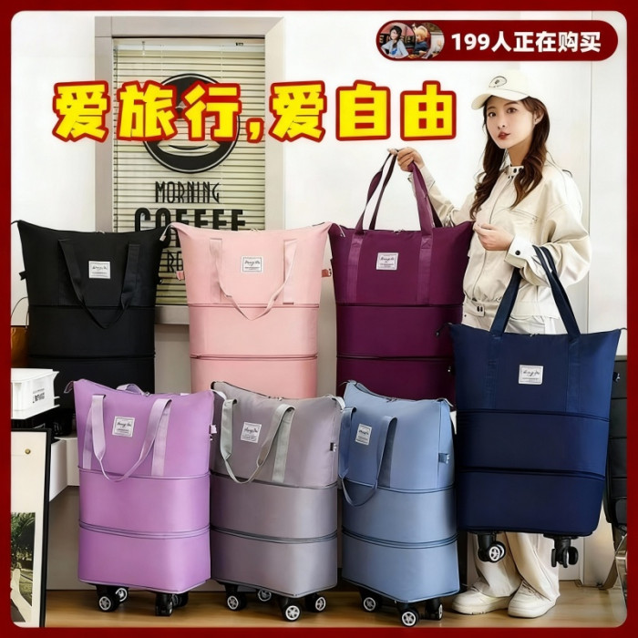 行李袋旅行包帶萬向輪輕便大容量拉桿包新款旅遊收納袋折曡行李箱